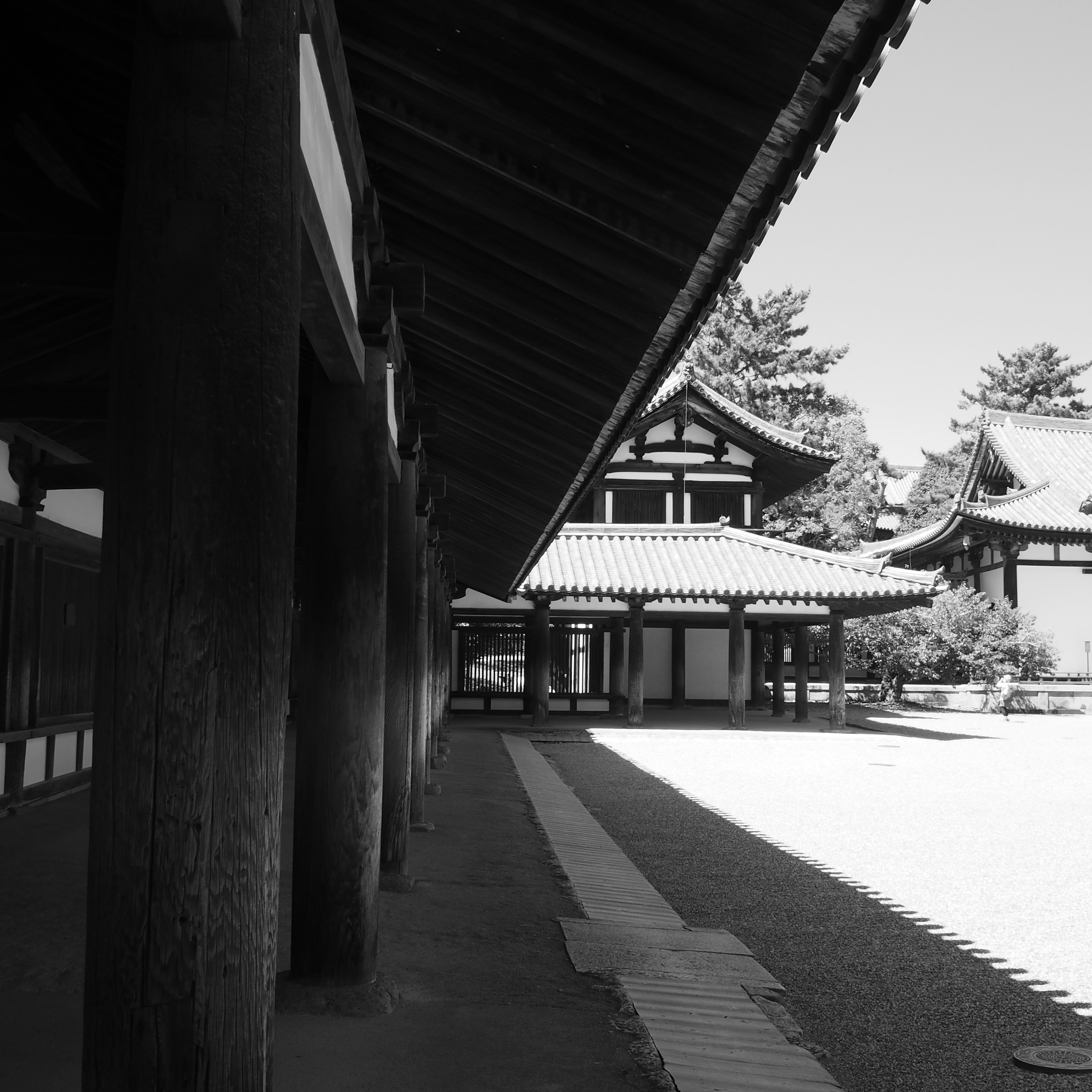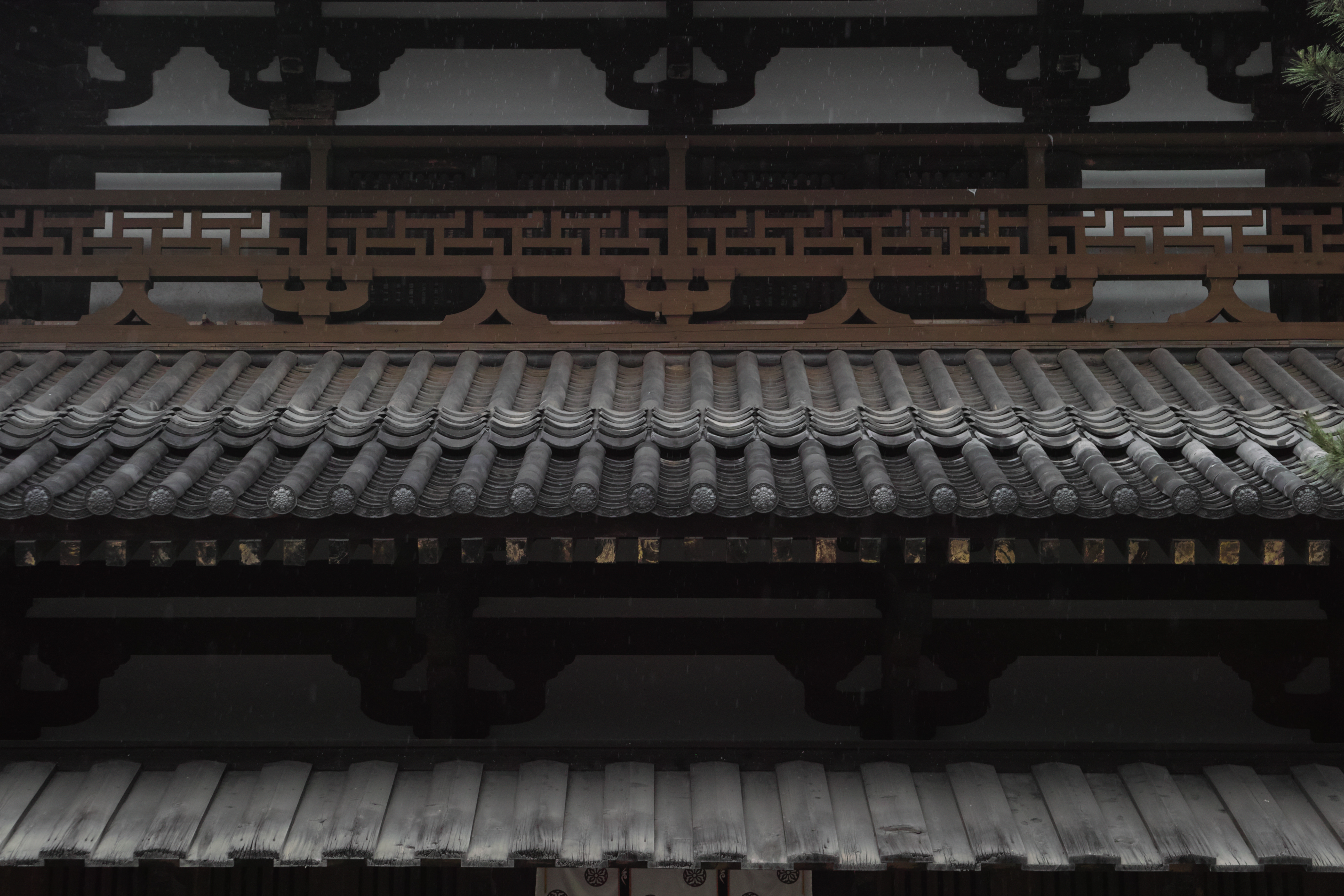 法隆寺金堂欄干と屋根瓦