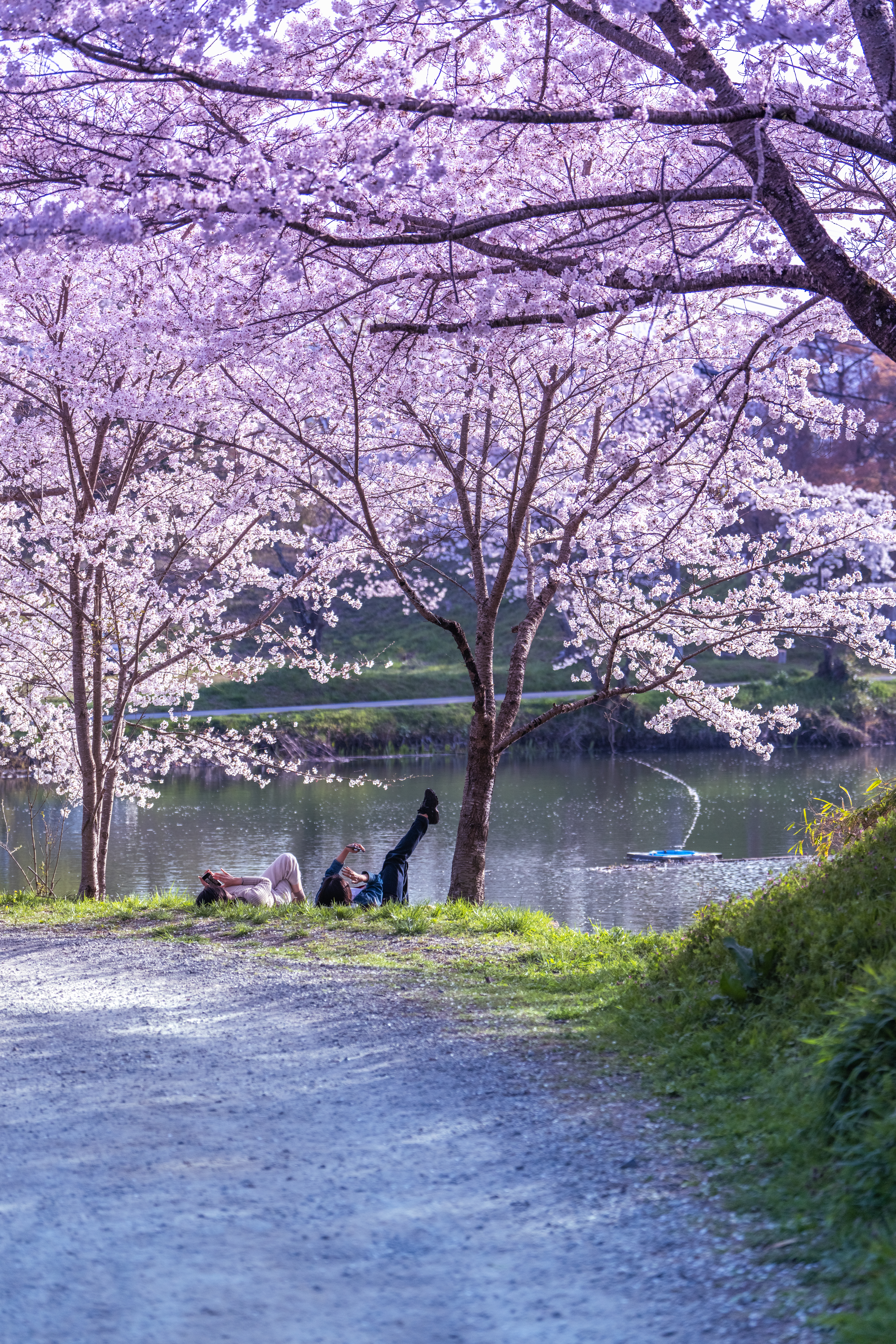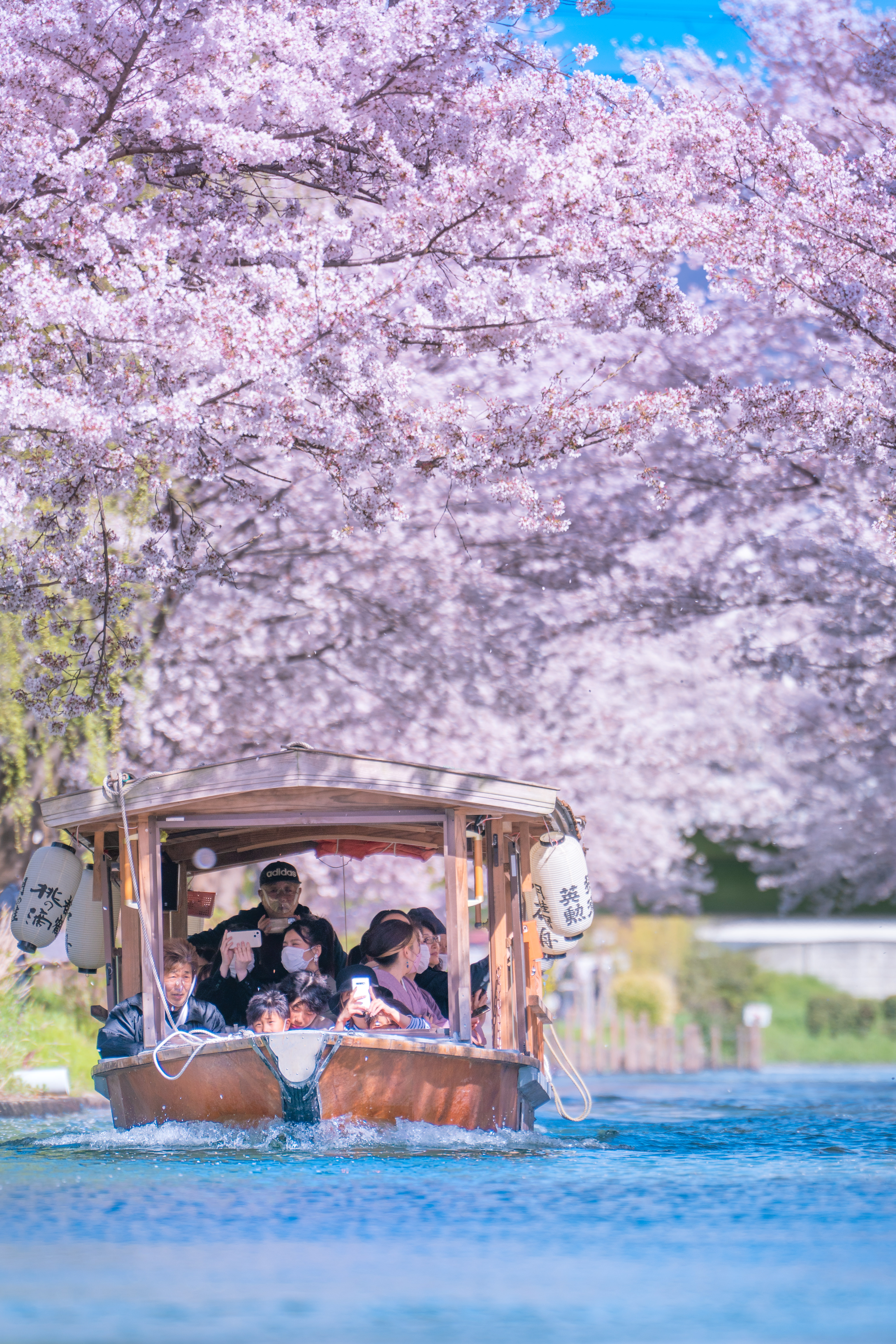 堀の水面に浮かぶ花びらが散って落ちても尚美しい