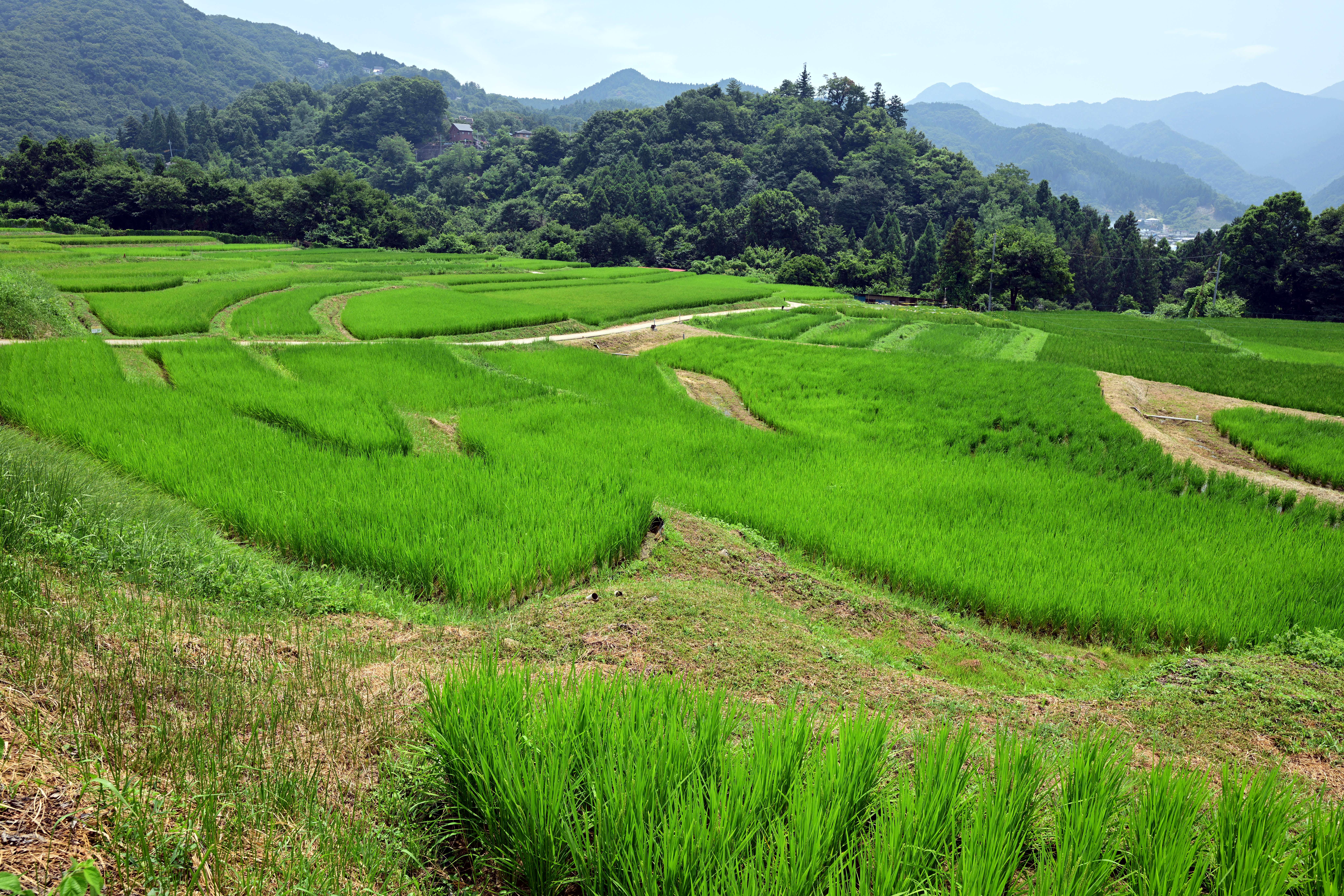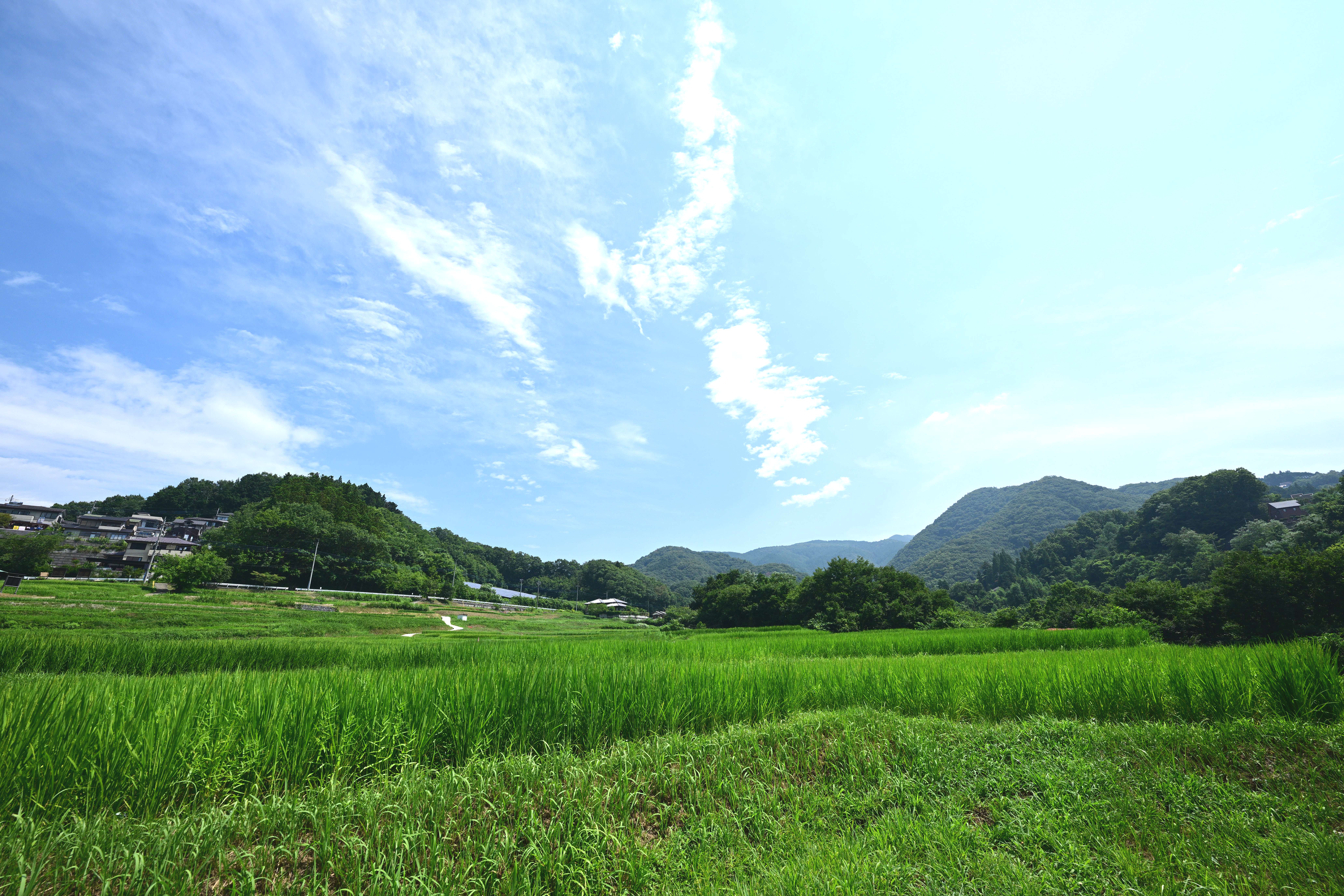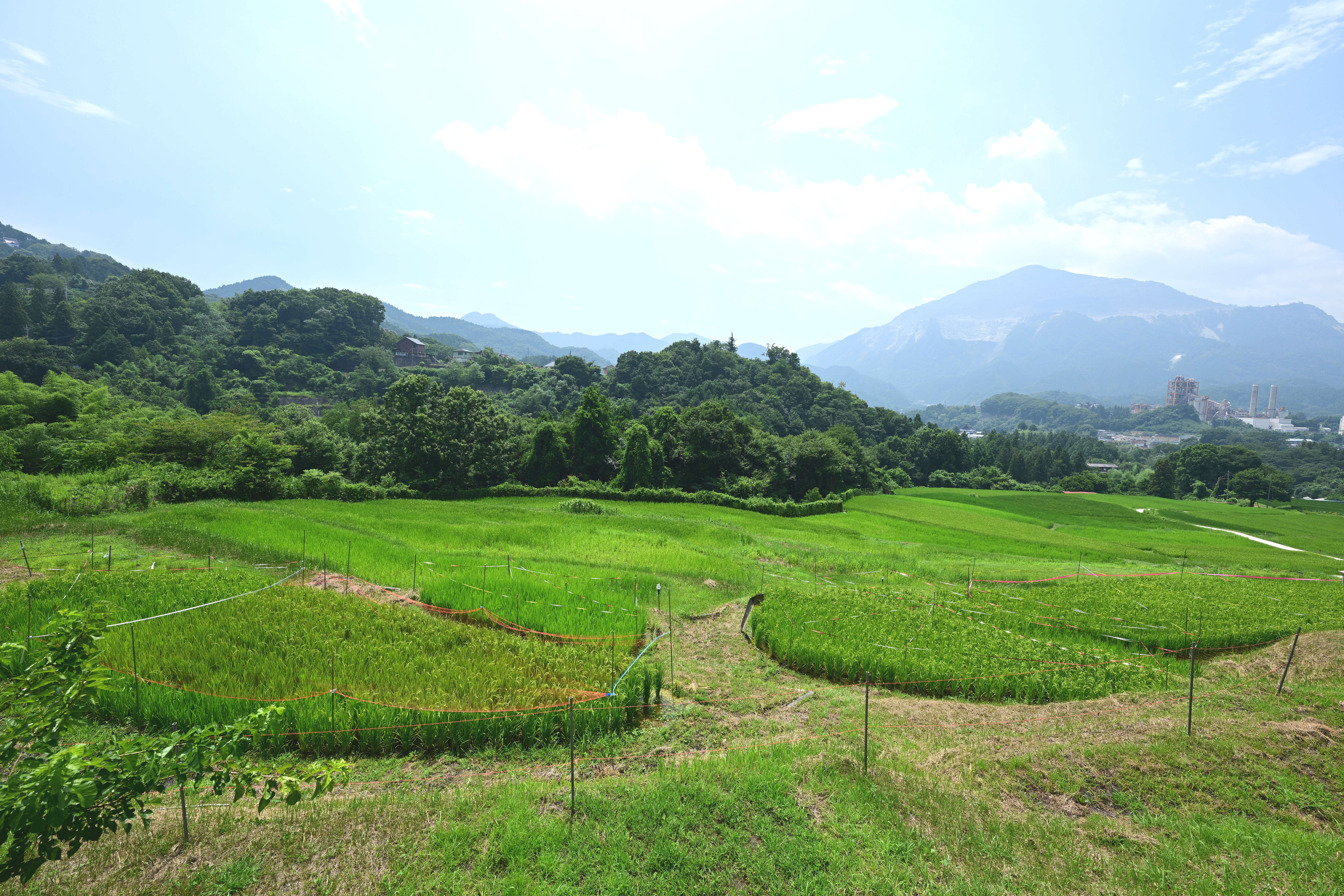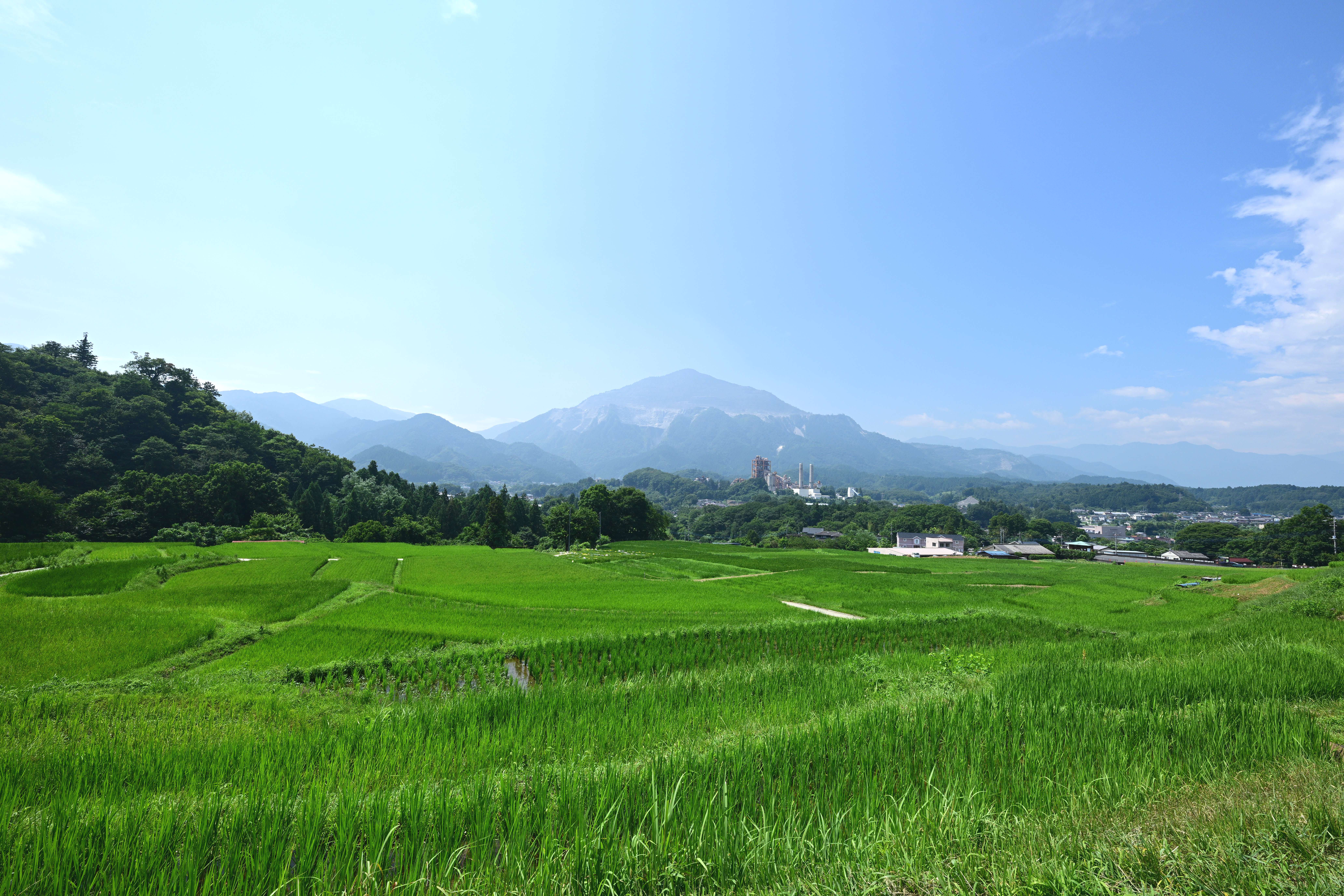 青々とした水田と武甲山、日本の里山の夏風景