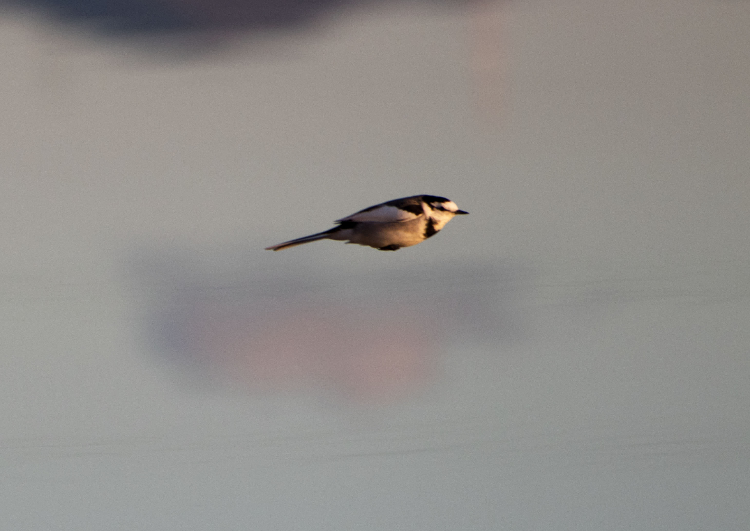 川面を餌を探してセキレイが飛ぶ.羽を閉じてトップスピードのセキレイは弾丸のよう