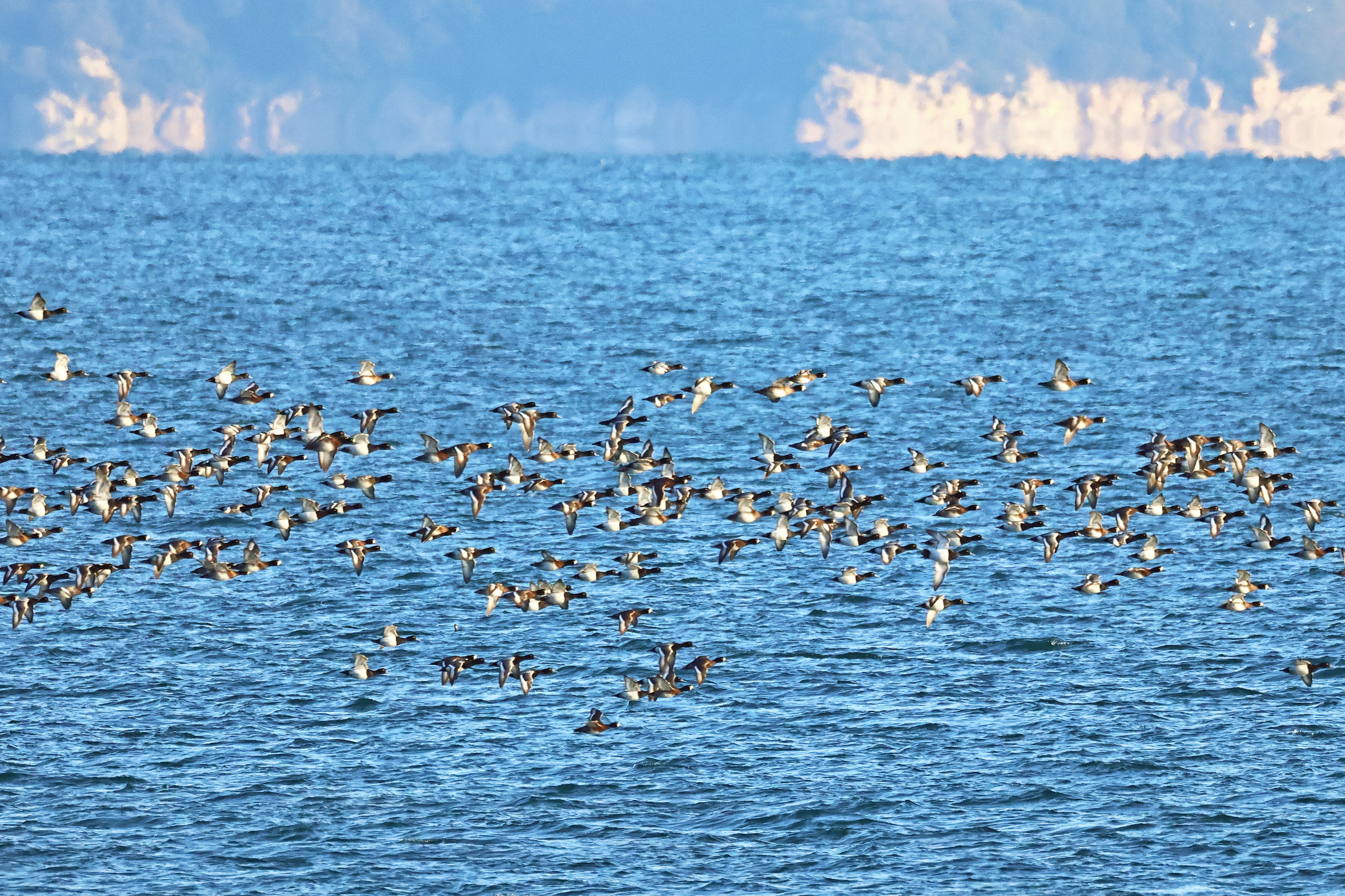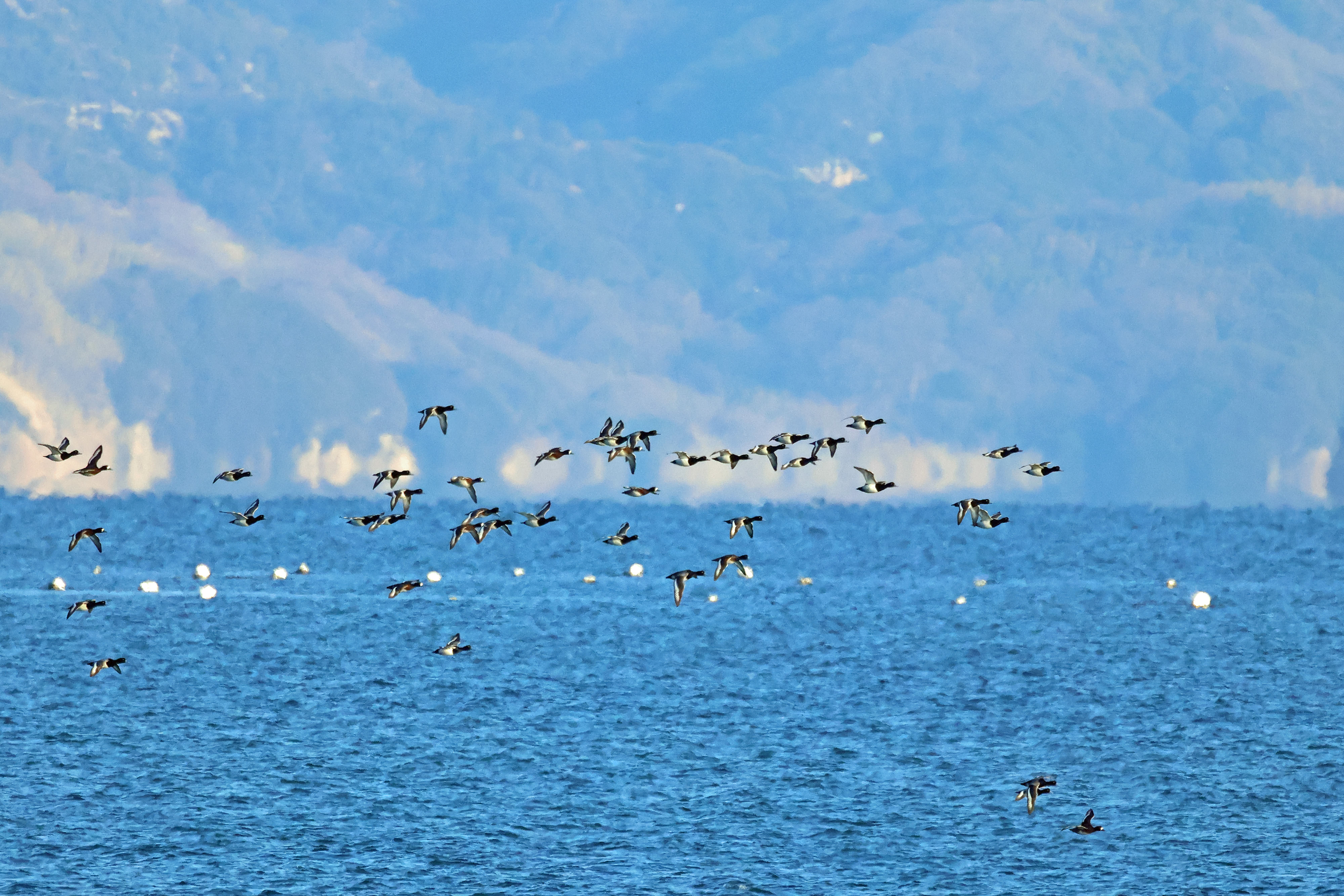 田尻町の海岸近くにスズガモの群れが集まるようになりました。