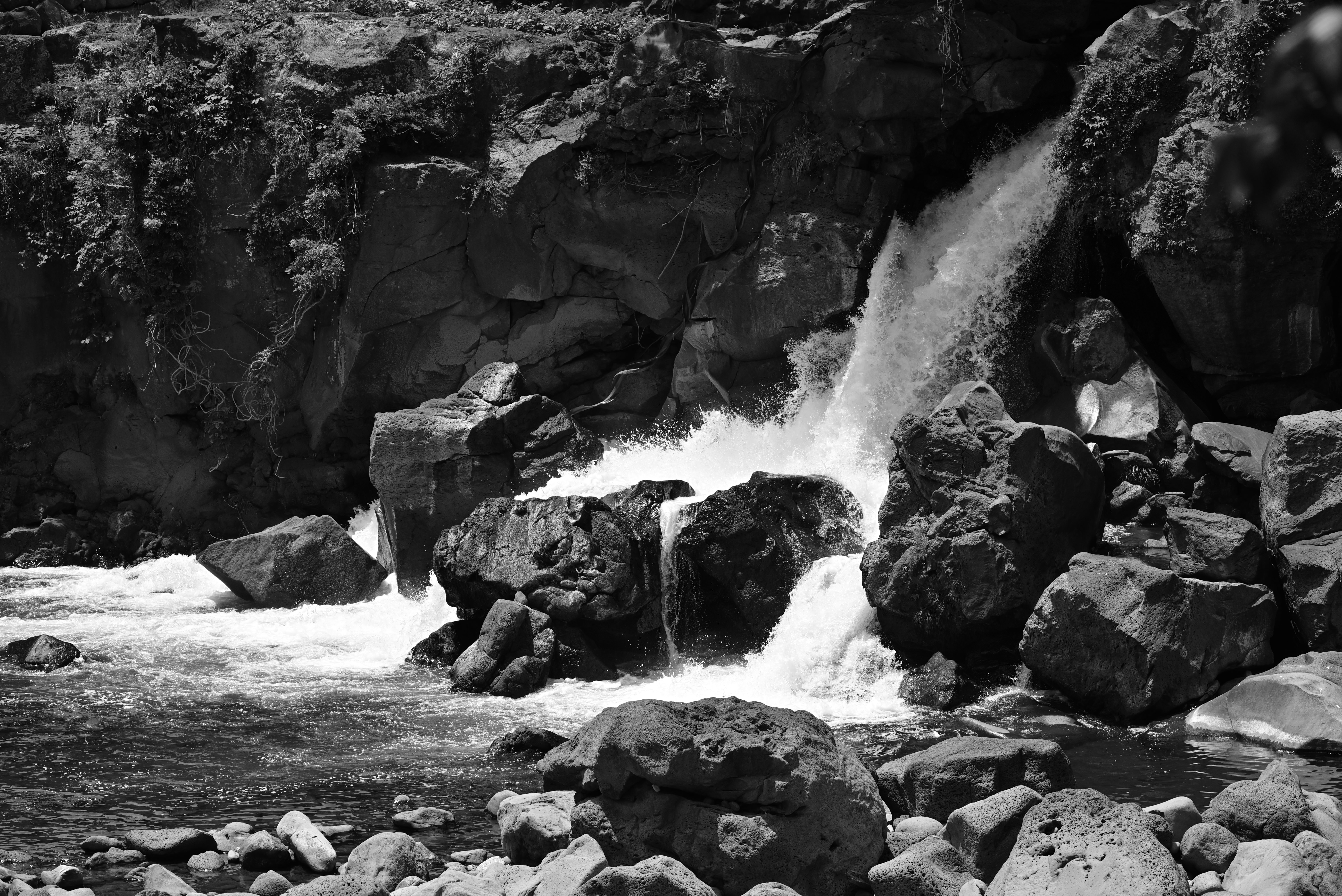 旅行で訪れた伊豆半島ジオパークの一つ鮎壺の滝をモノクロでレンズの性能を試しがてら撮りました