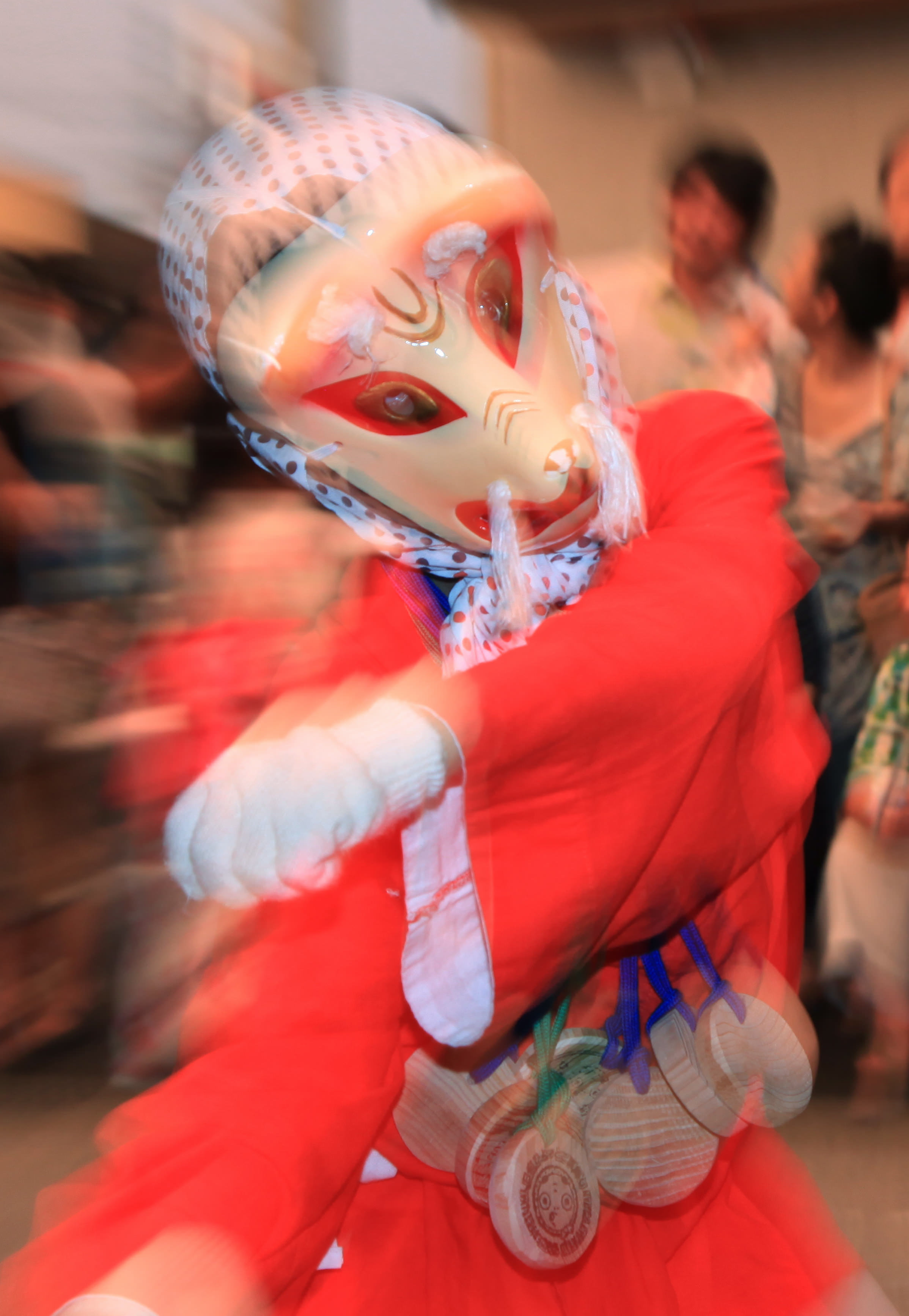 日向ひょっとこ夏祭りで、きつねをダイナミックに踊る少年を撮影しました。躍動感あふれるきつねの様子を、瞬間ズームで動きを加えることで表現してみました。この年の日向ひょっとこ夏祭りフォトコンテストでグランプリをいただきました。