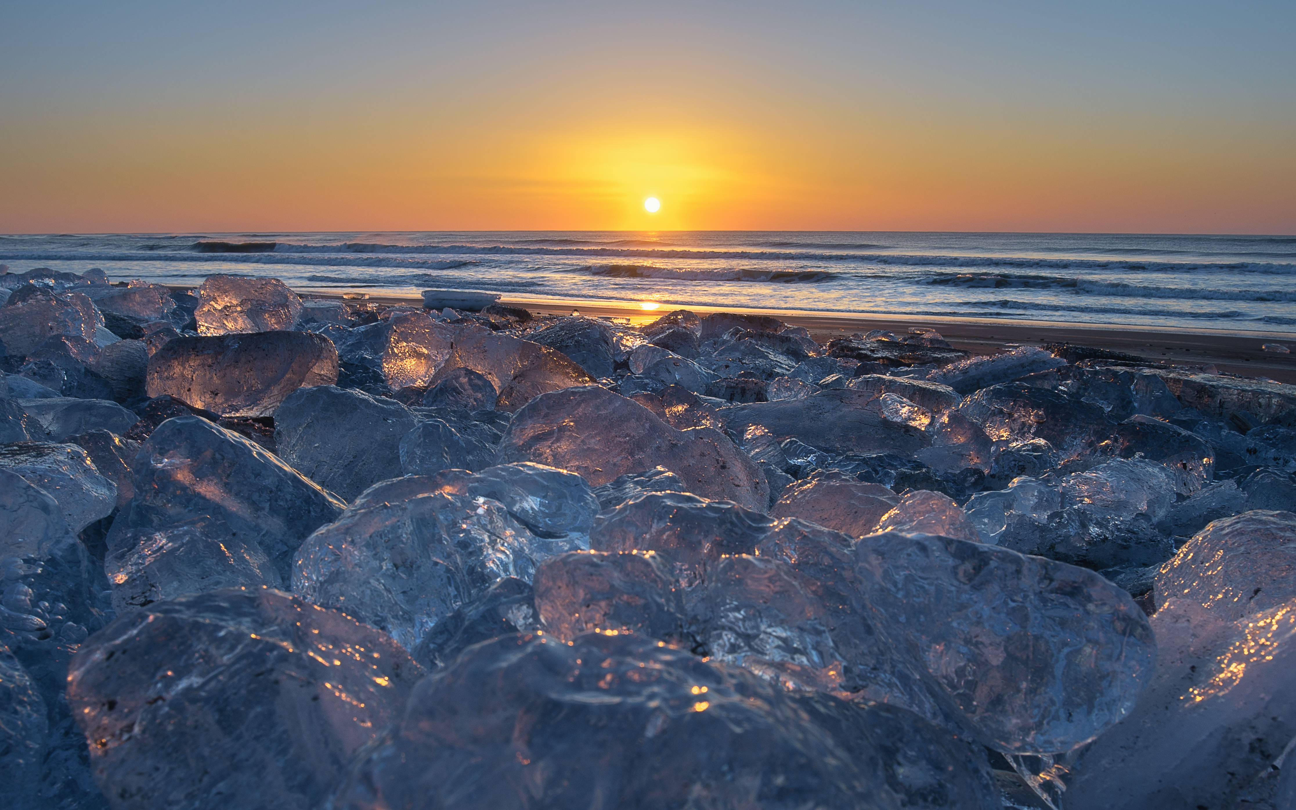 この冬の時期にはこの岩の間に夕日が沈みます。