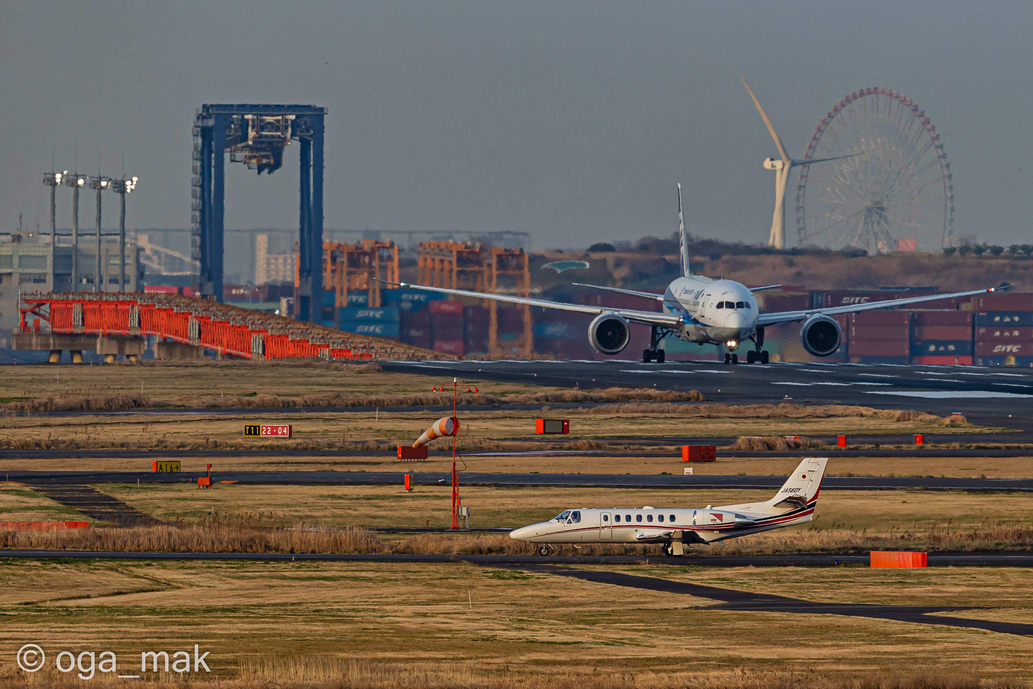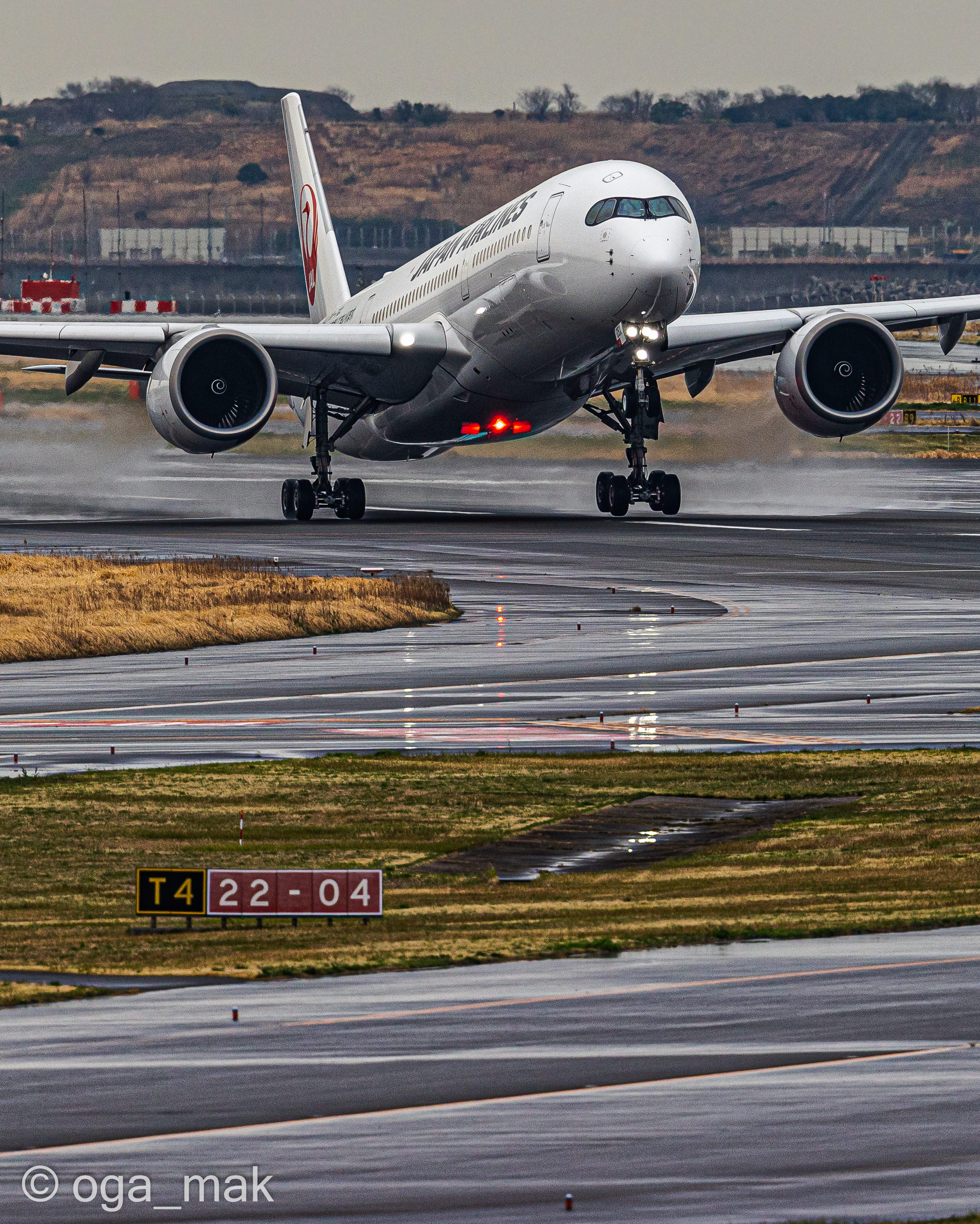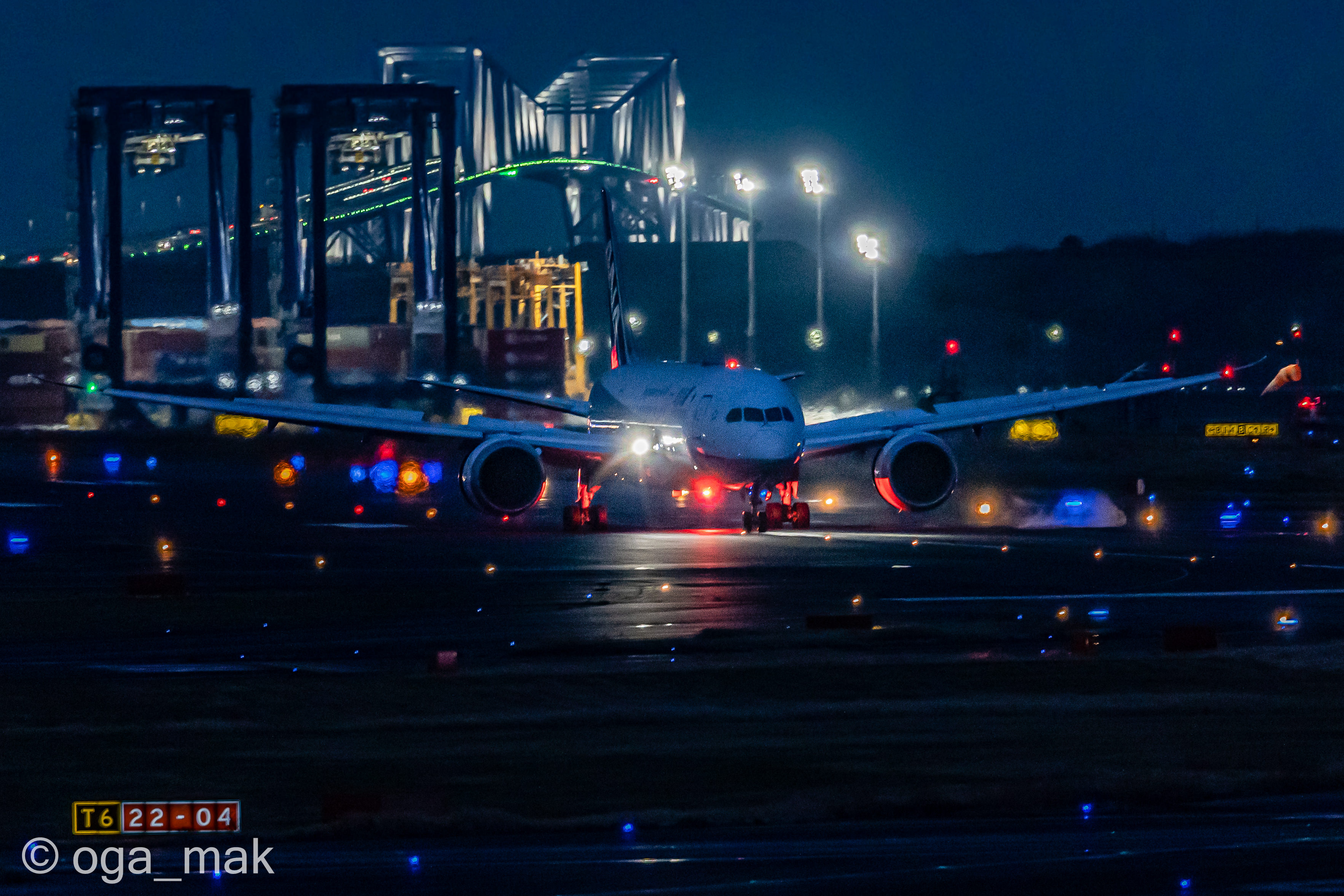 Landing on RWY22 ~ 日没後、B滑走路に降り立った北京からの到着便。暗いんだけど雰囲気だけでも(^_^;)