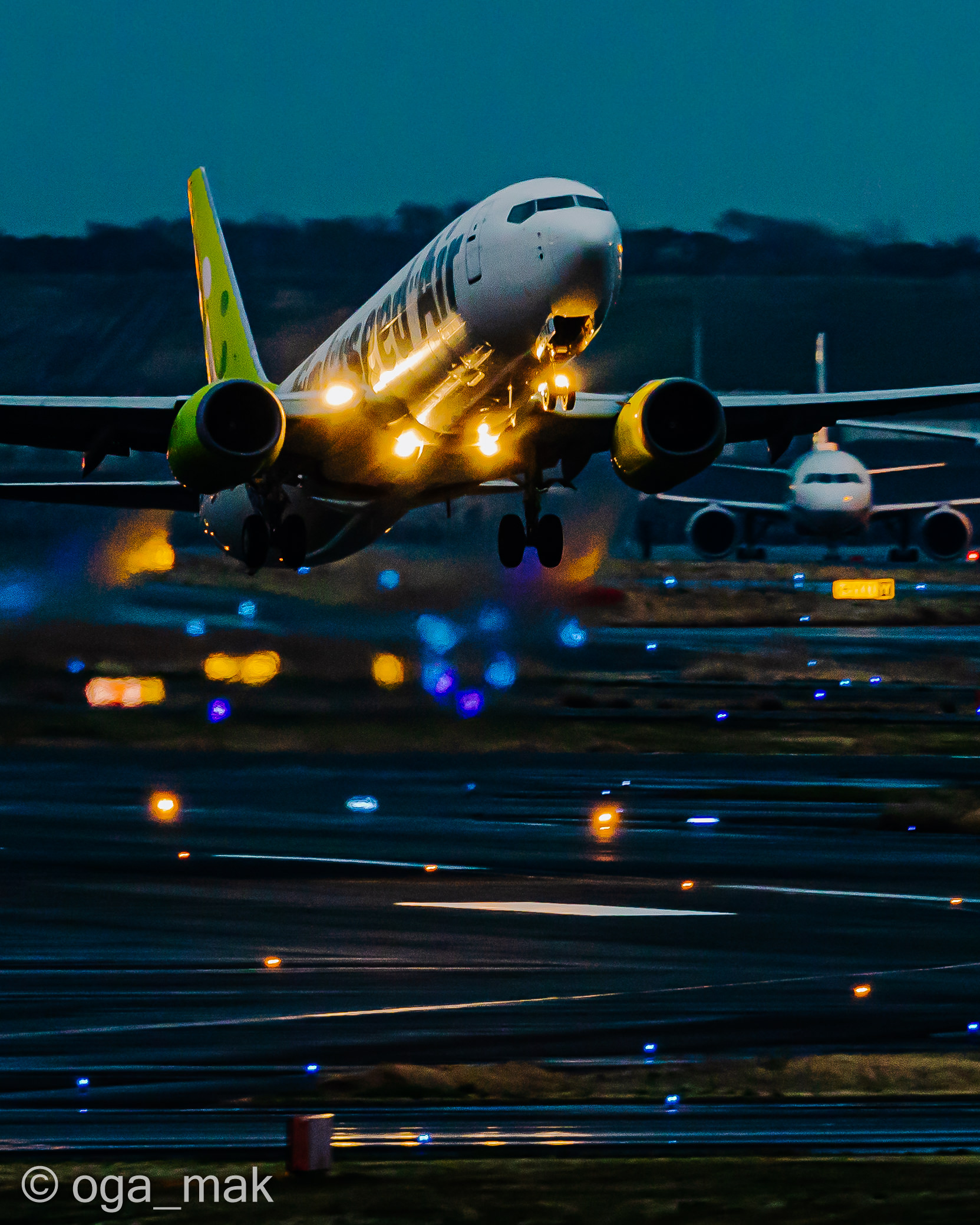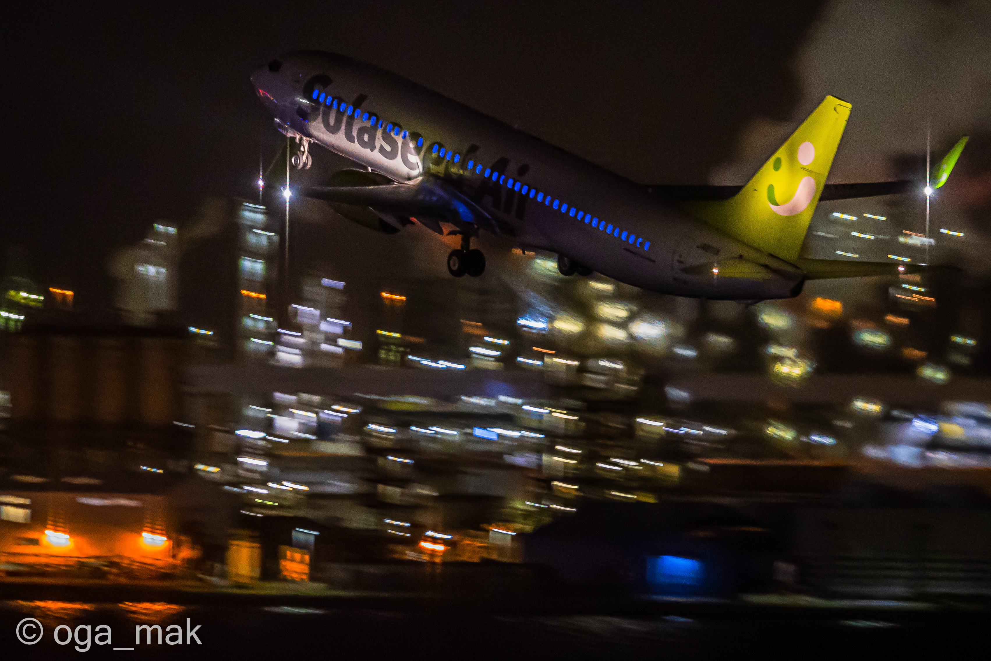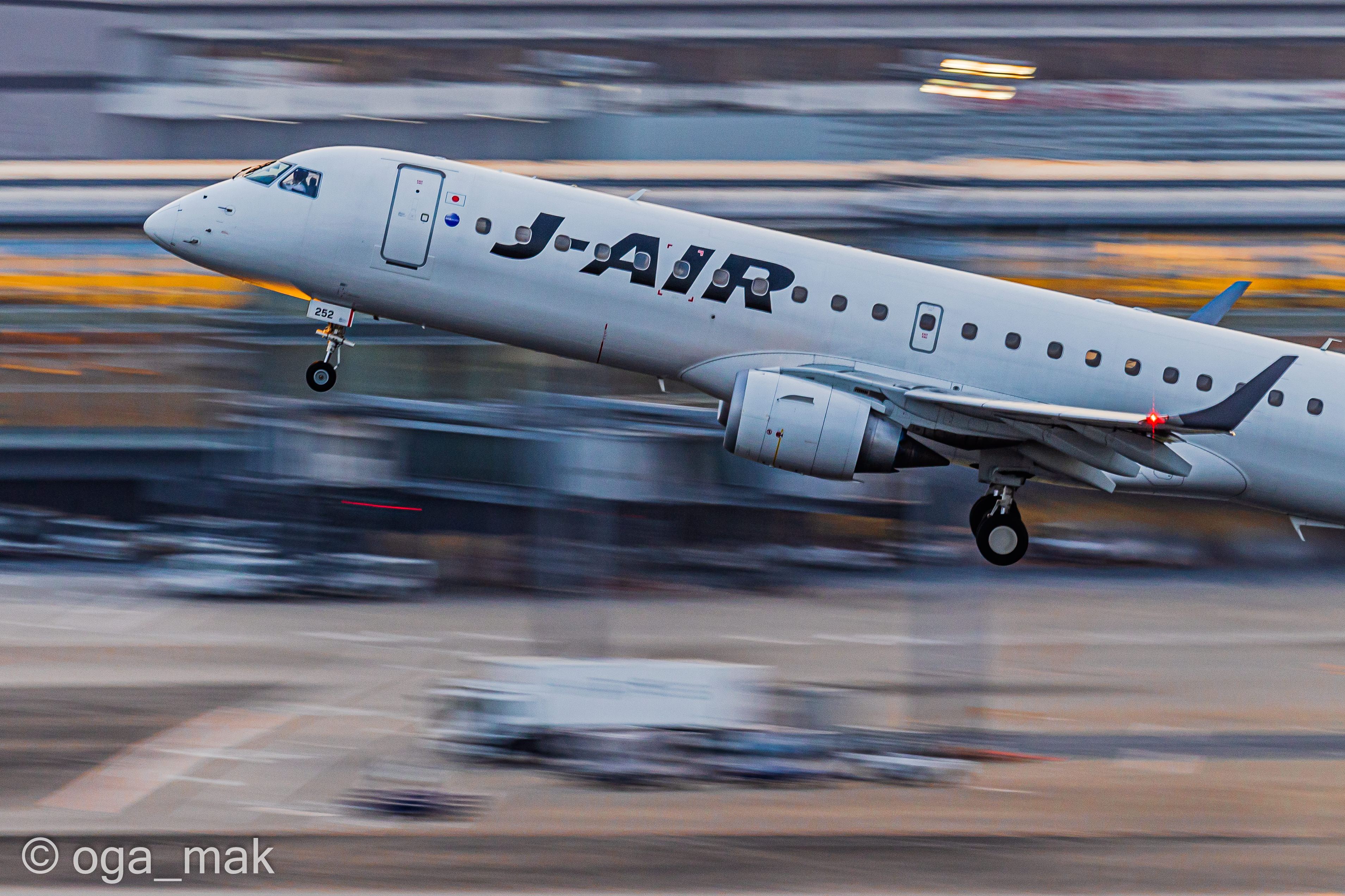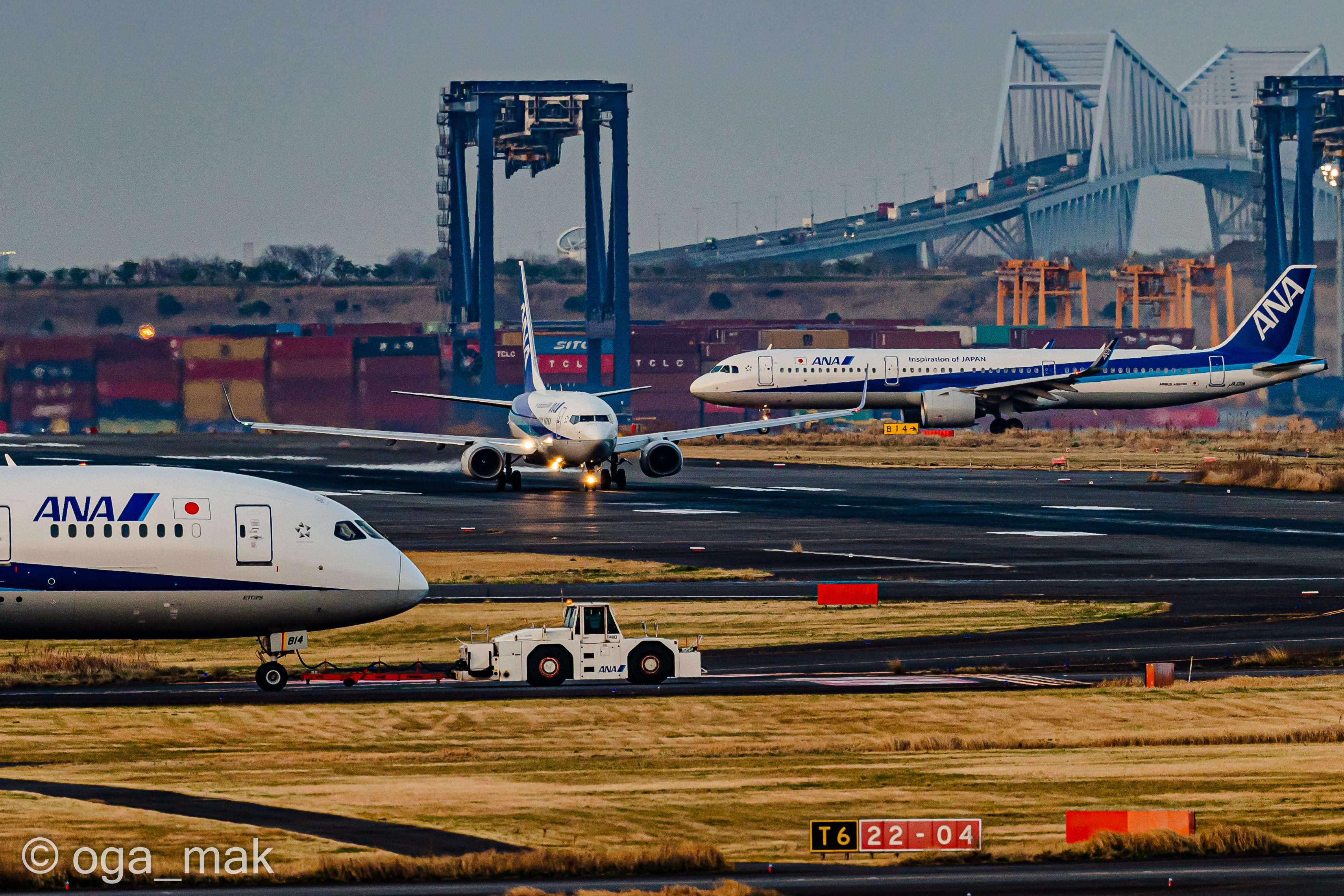Landing on RWY22 ~ 日没後、B滑走路に降り立った北京からの到着便。暗いんだけど雰囲気だけでも(^_^;)