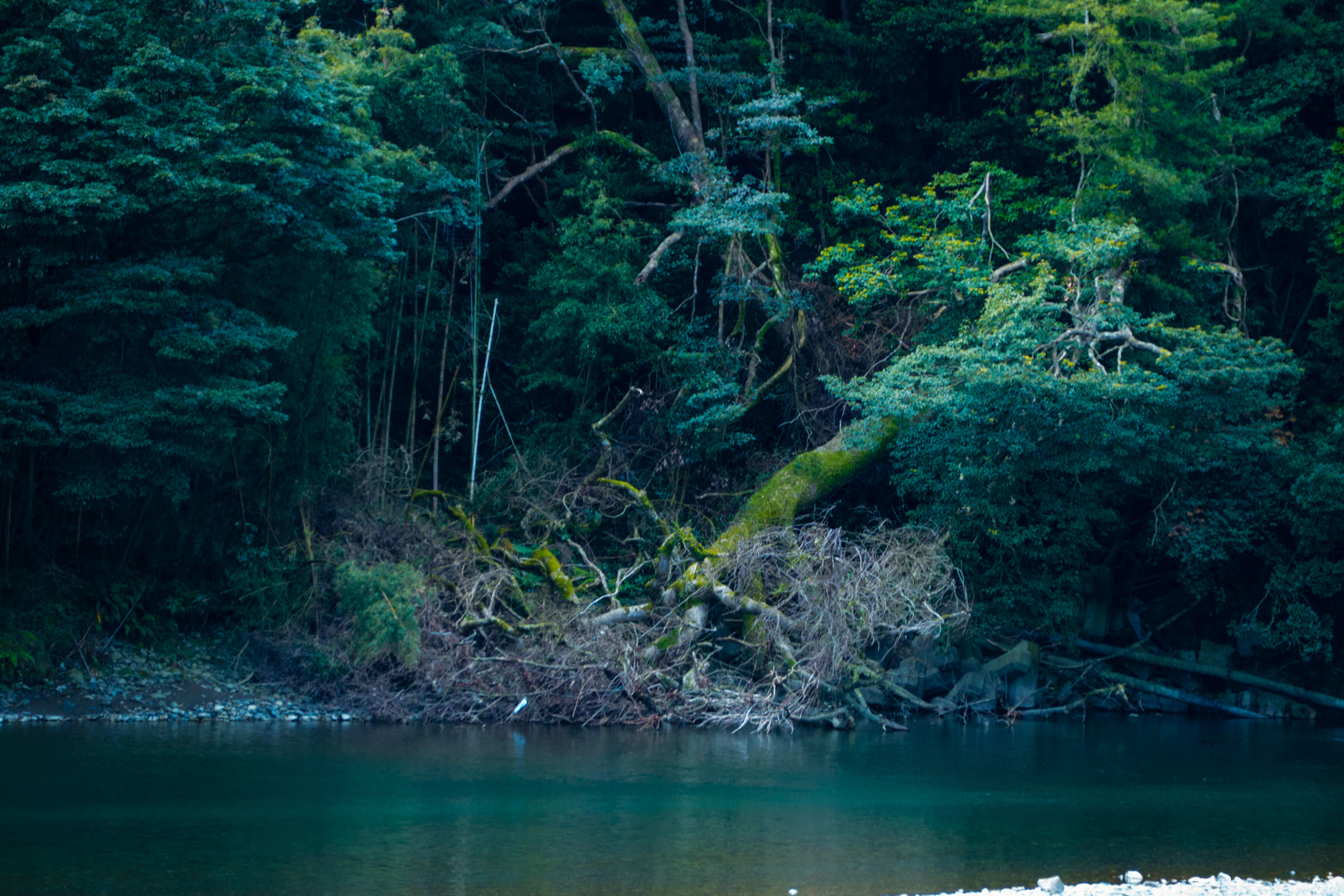 和歌山県の清流・古座川はかつて祓い川と呼ばれ、人々の悲しみや罪、穢れを流し続けてきました。写真は祓の宮の森を撮影したものです。