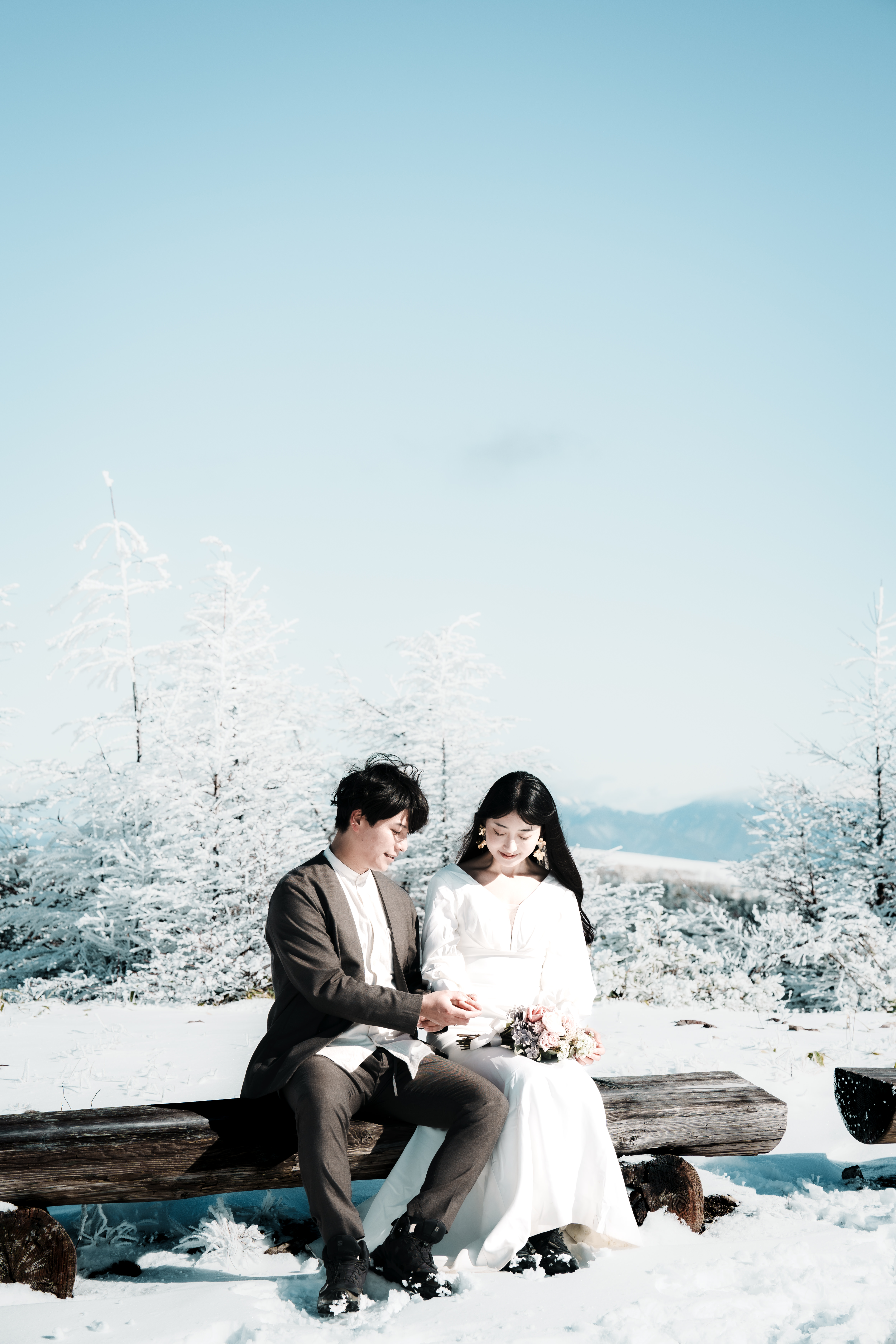 雪山にてウェディングフォトを撮影した時に納めた1枚です。