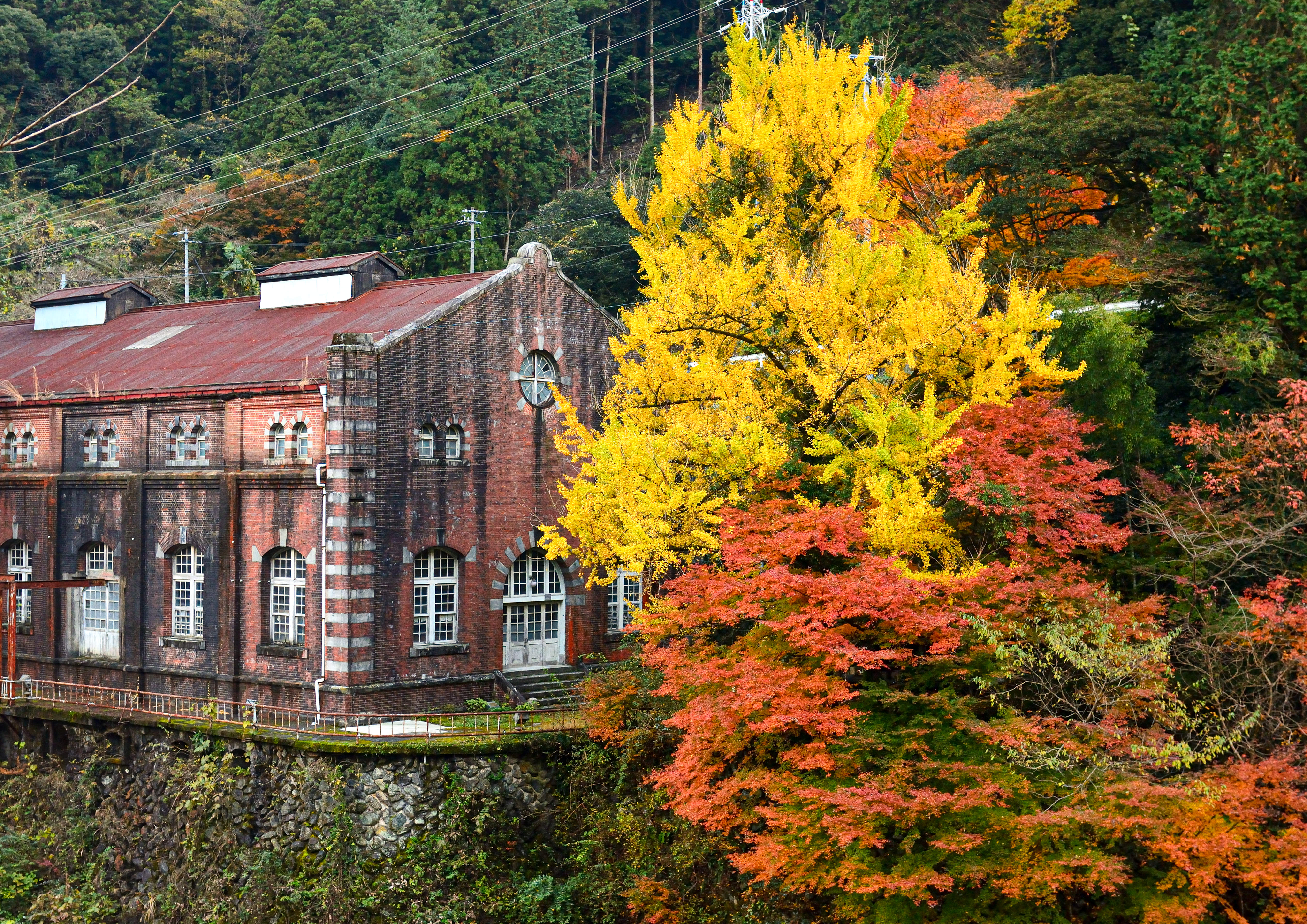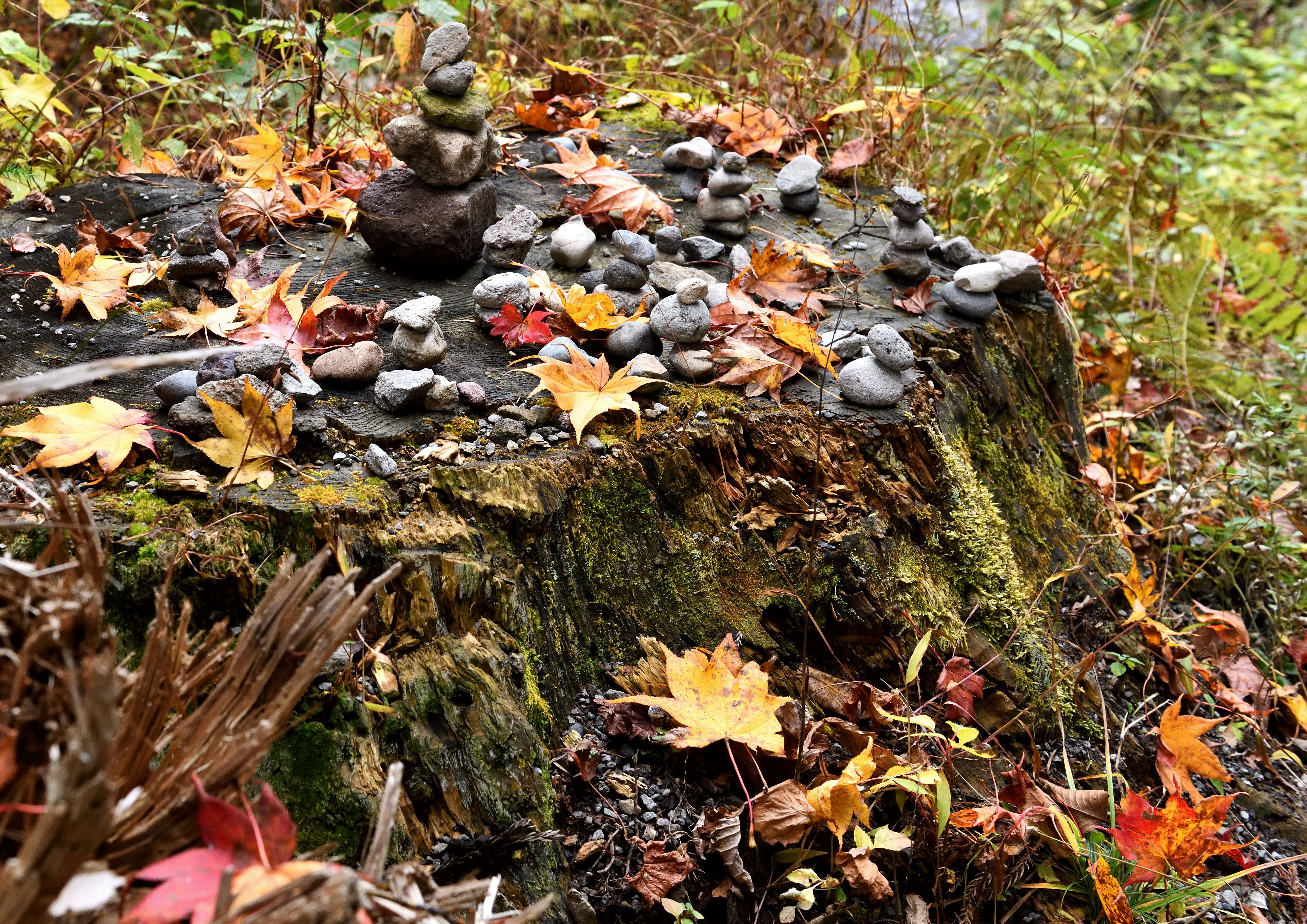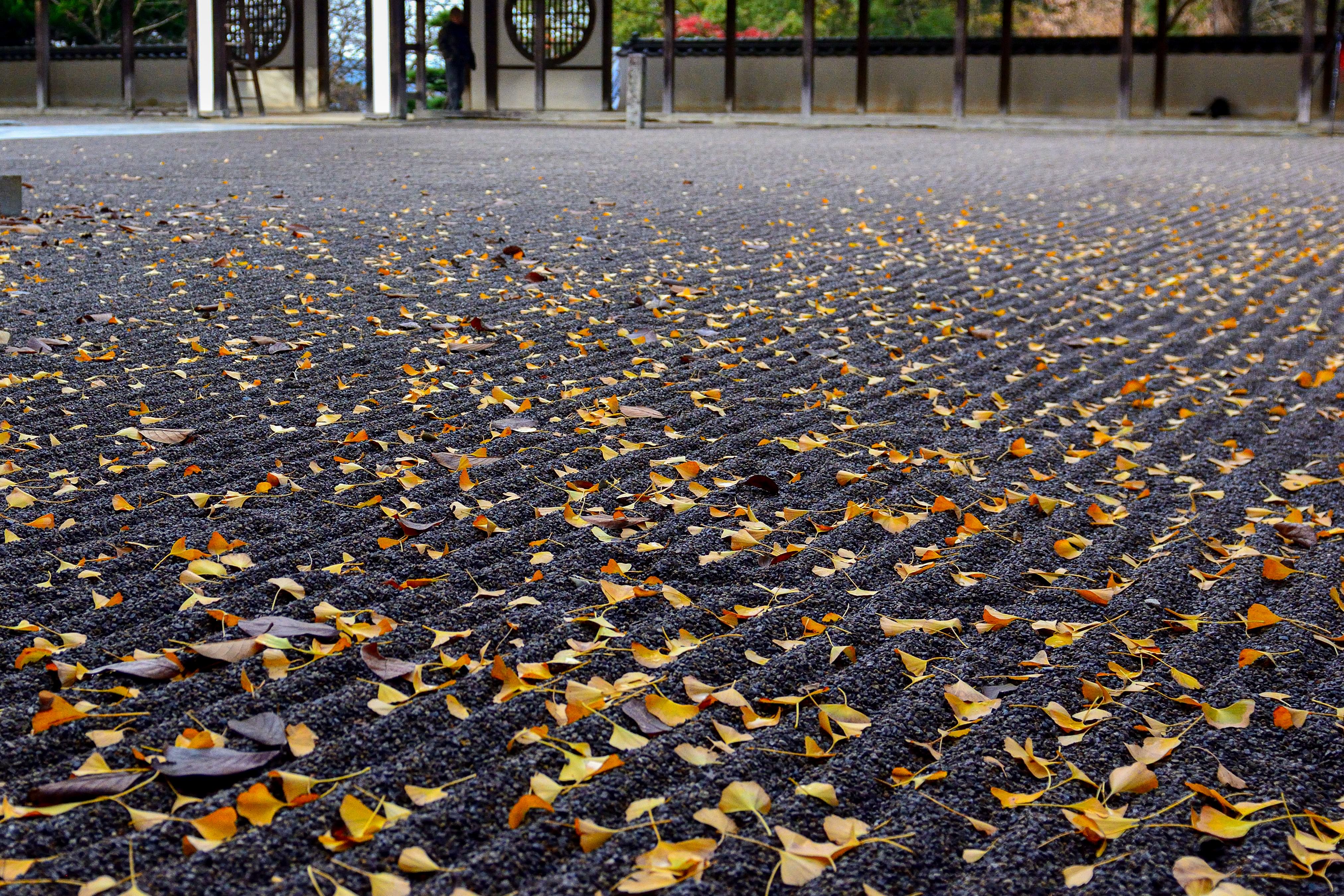 斜めの線と縦の線と銀杏の落ち葉です。