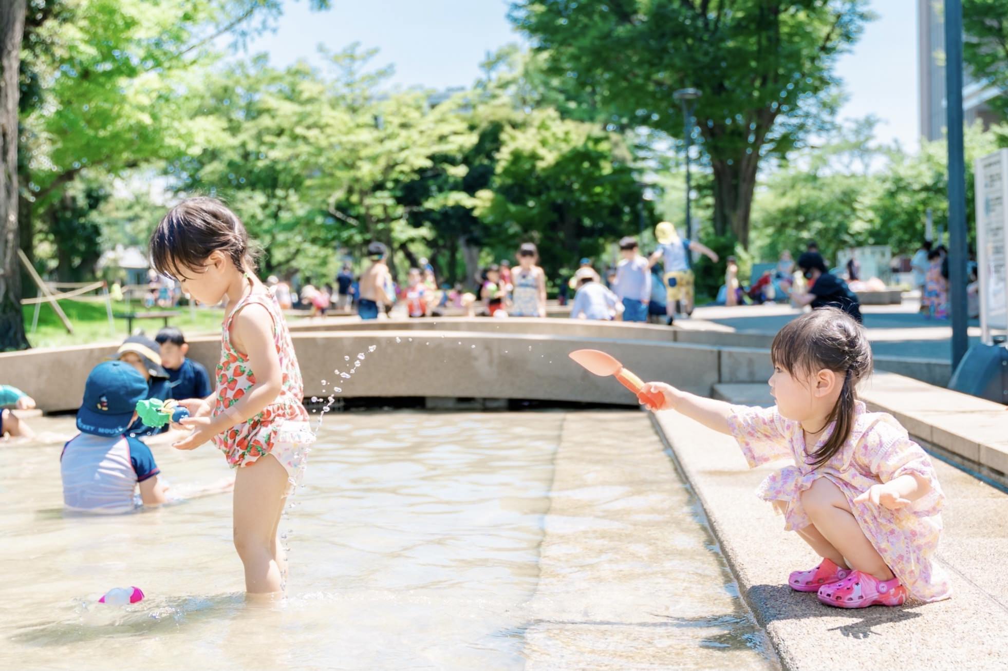 後ろからこっそり水をかけて気を引こうとしている姿がほんわか笑えました。