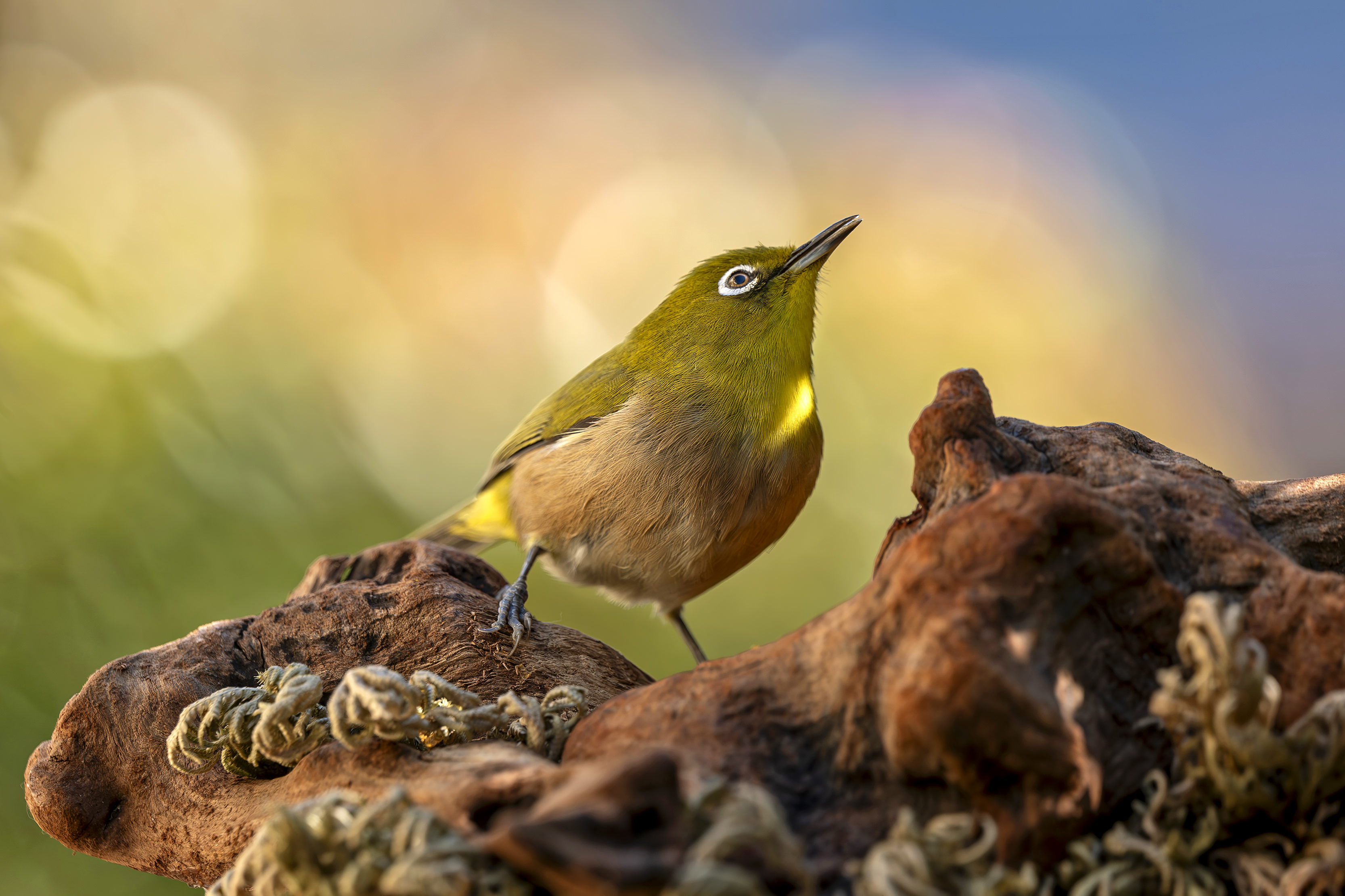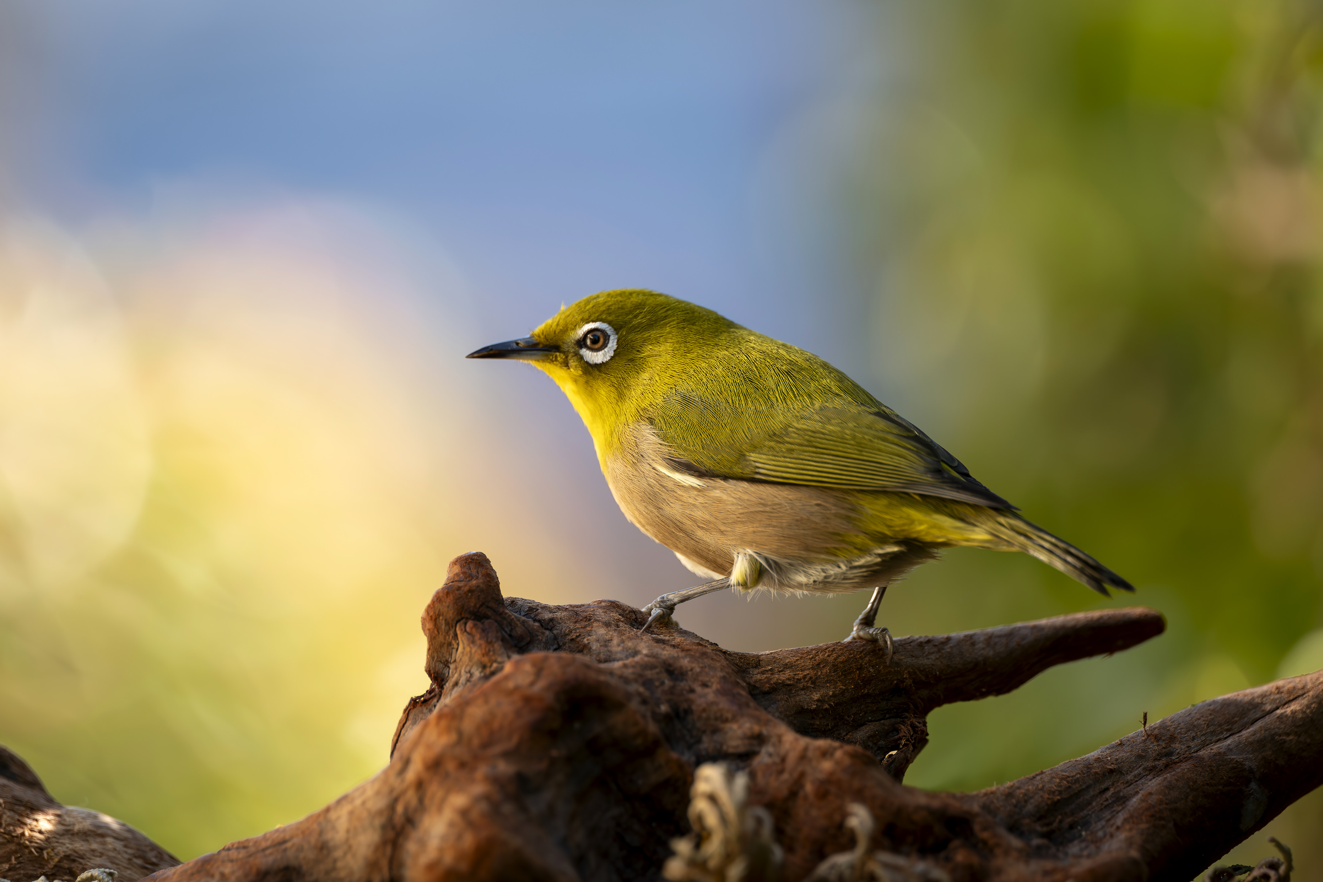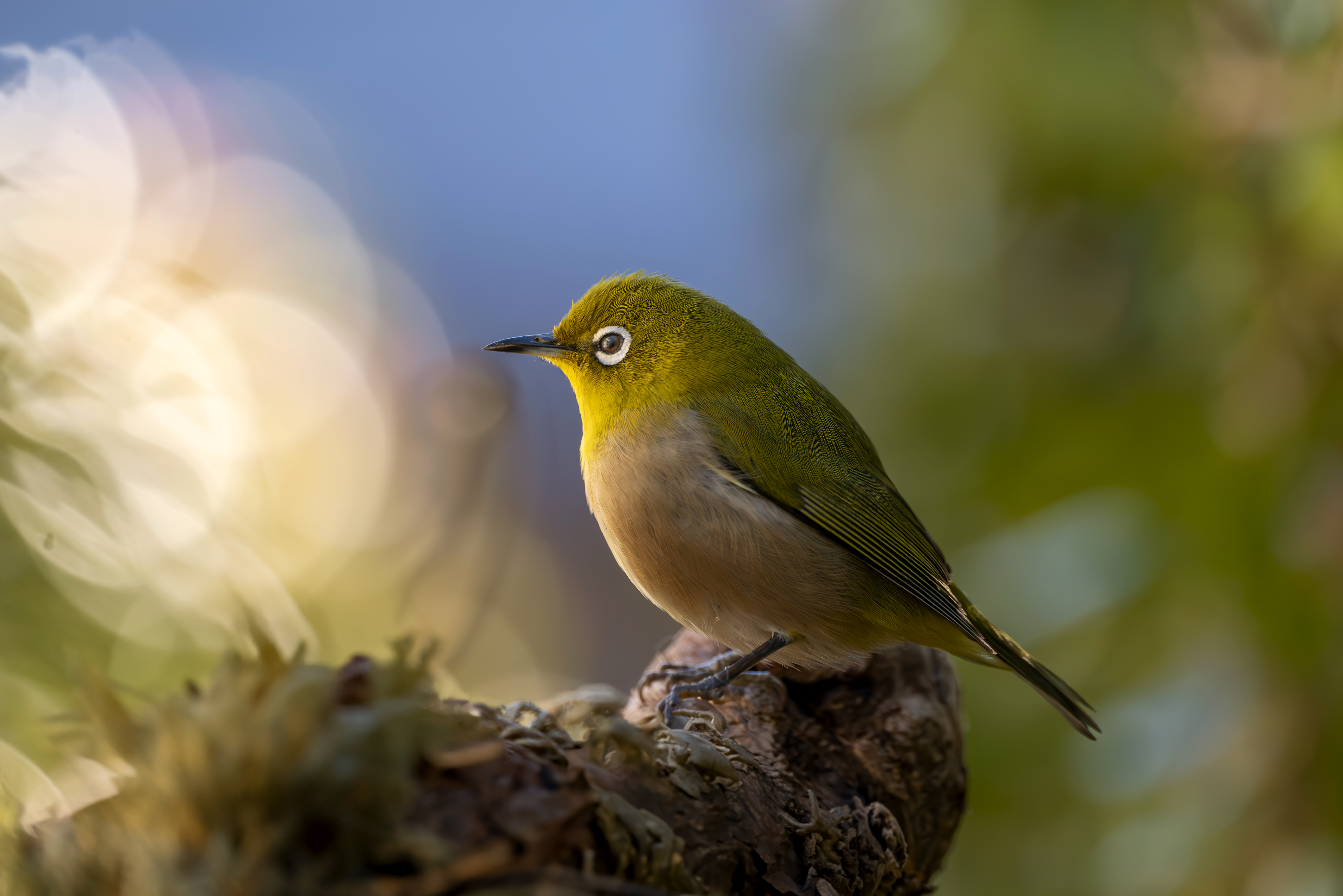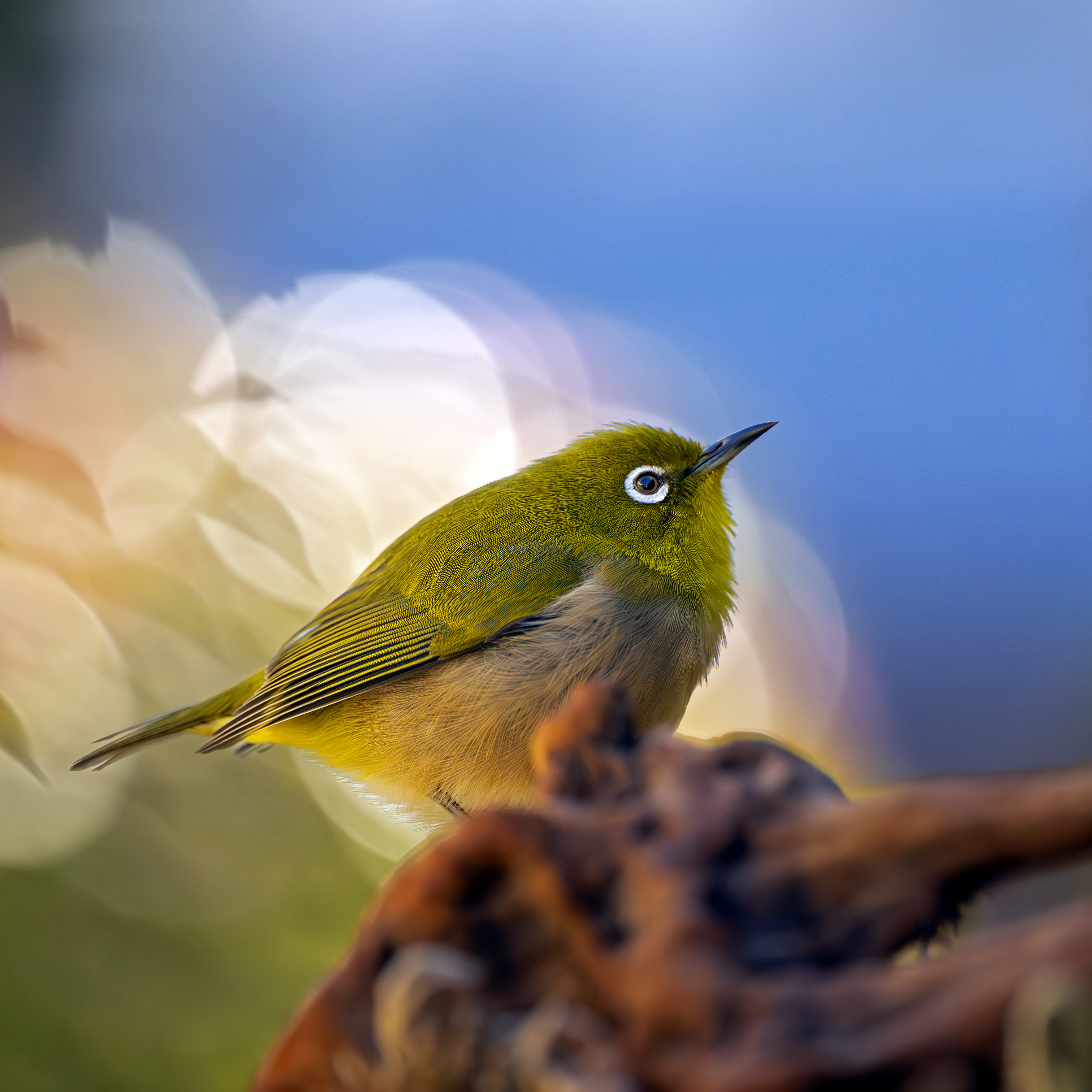 通常の野鳥撮影ではなく、新しい視点で最近撮り続けている作品です。超高速シャッターで、メジロが動いた瞬間を切り取っています。ダンスをしている様な面白い瞬間が撮れますが、羽を広げている瞬間が毎回撮れるわけではなくてチャンスを狙って何百枚も撮ったショットの中から選んだ一枚です。