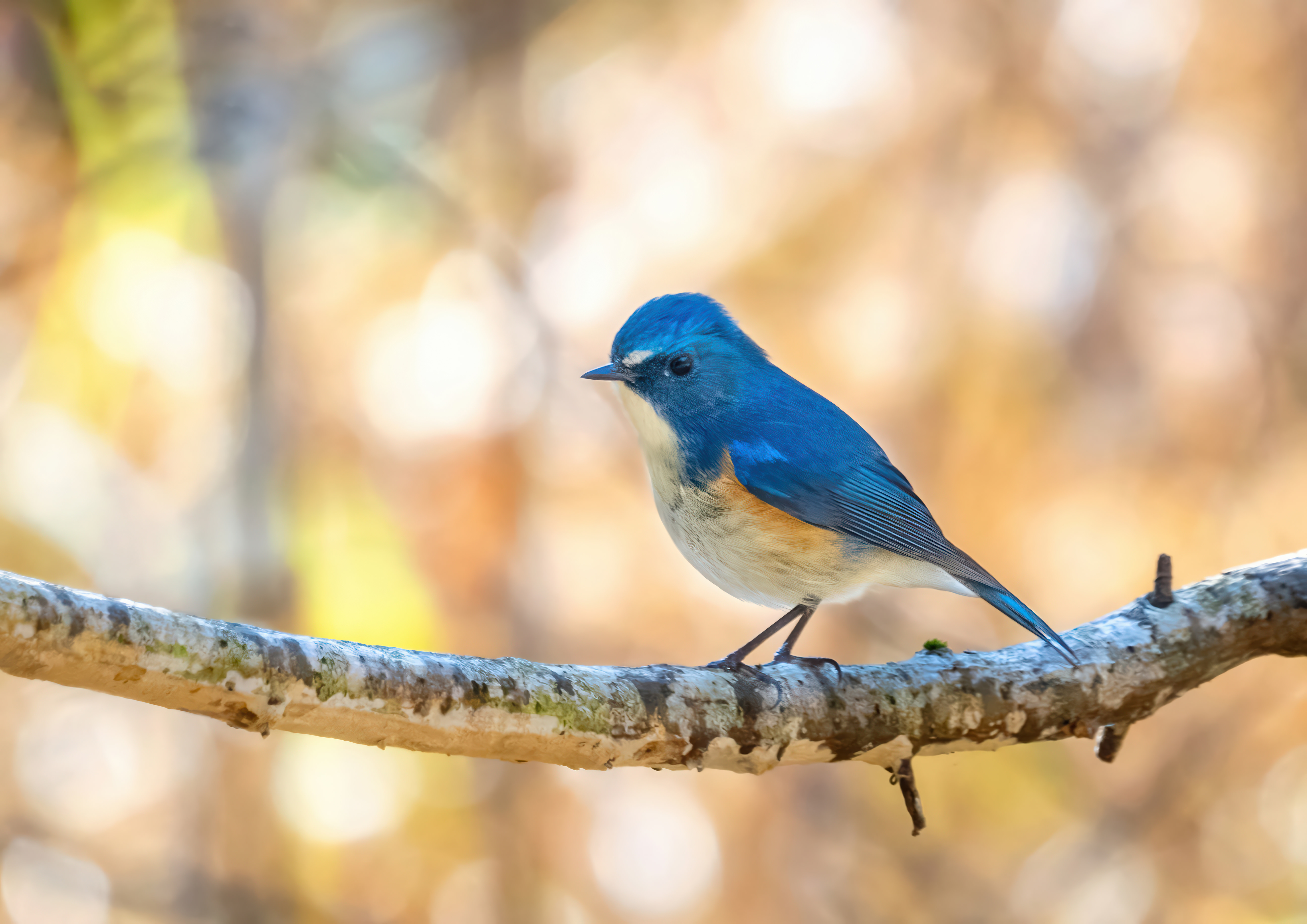 枝から飛び出すモズ。