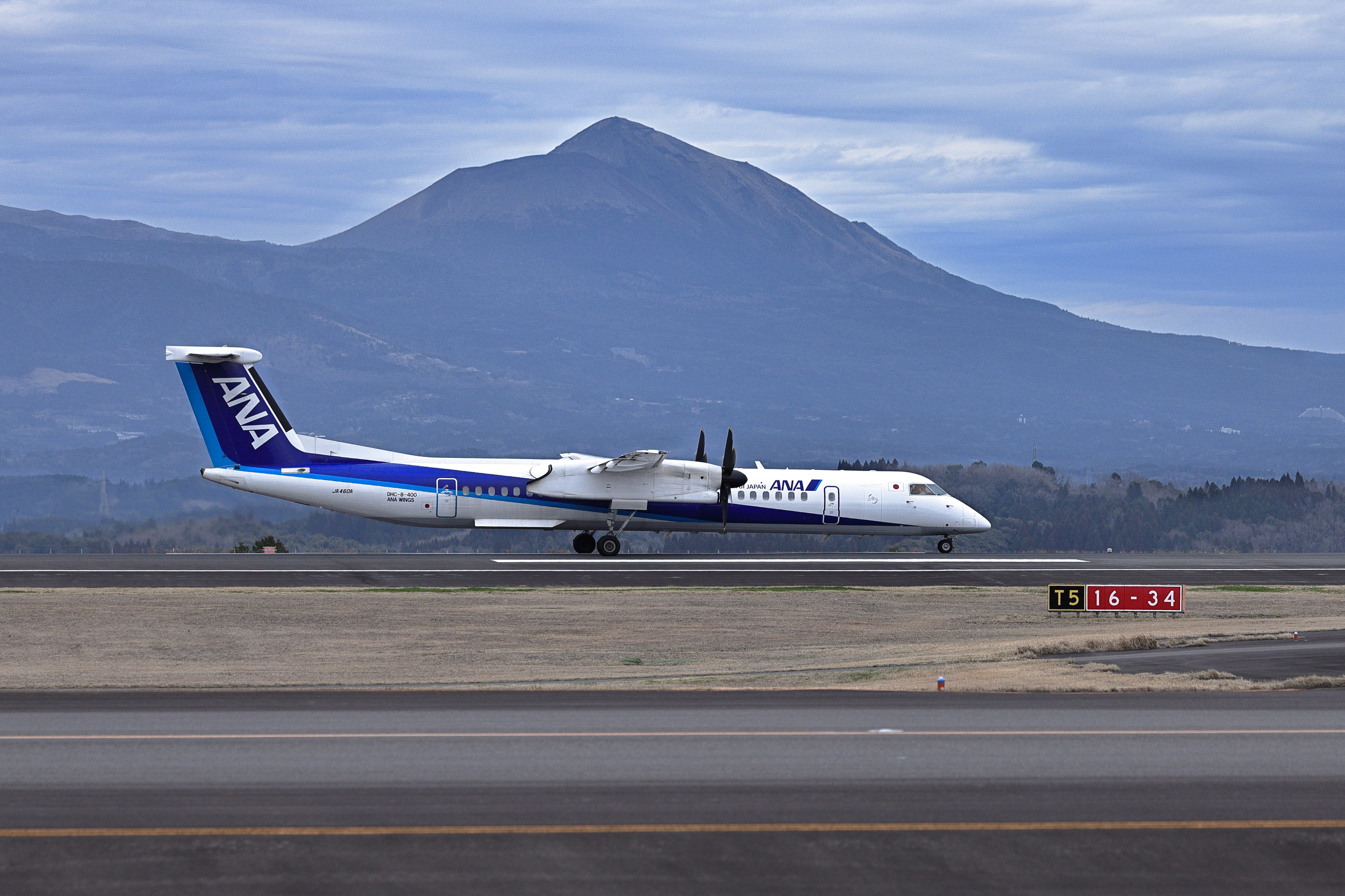 霧島連山、天孫降臨神話の高千穂峰とDHC-8-400型機