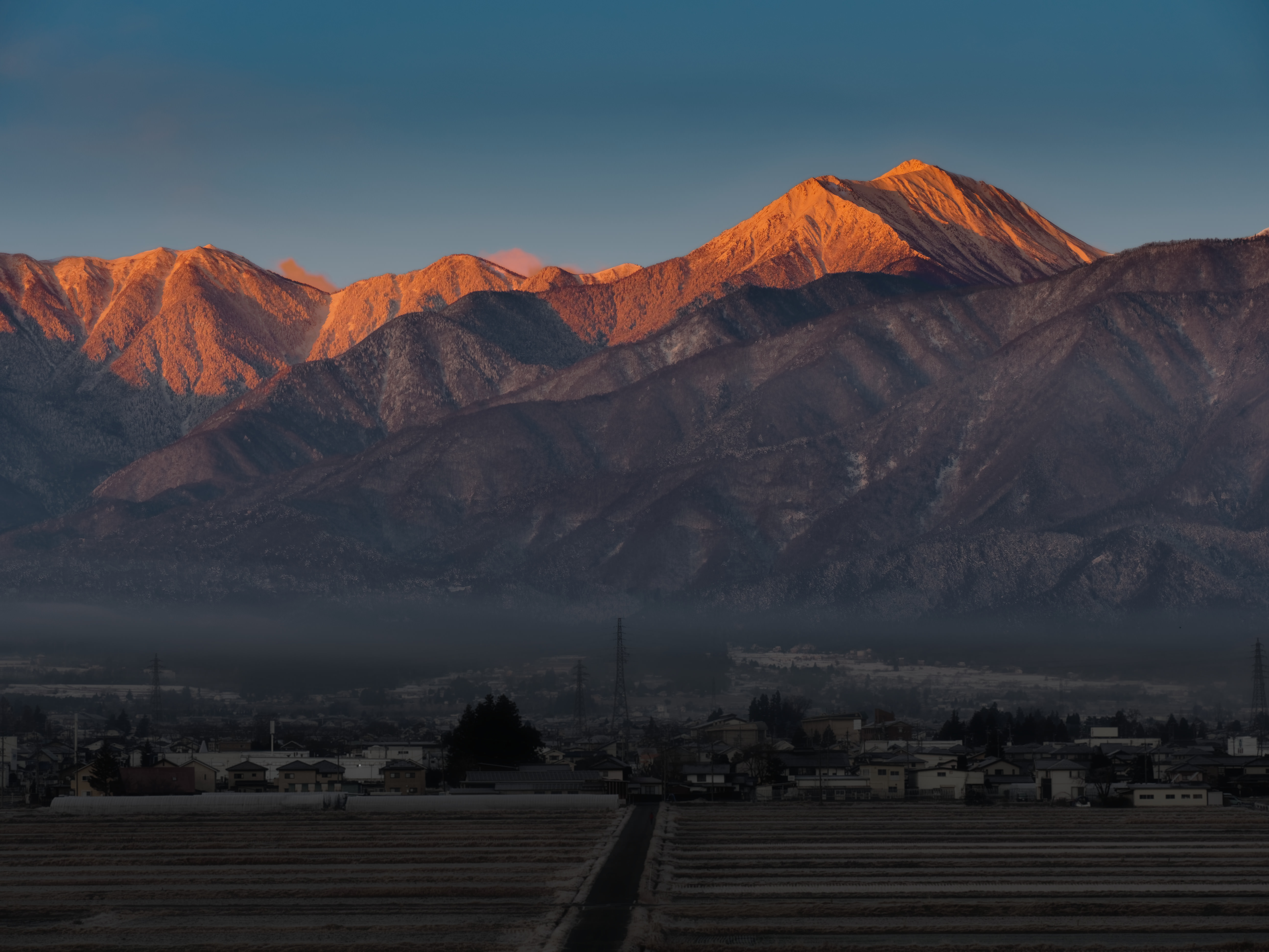 北アルプス山頂に雲が掛かったのが残念と言えば残念ですが、これも味という事で。