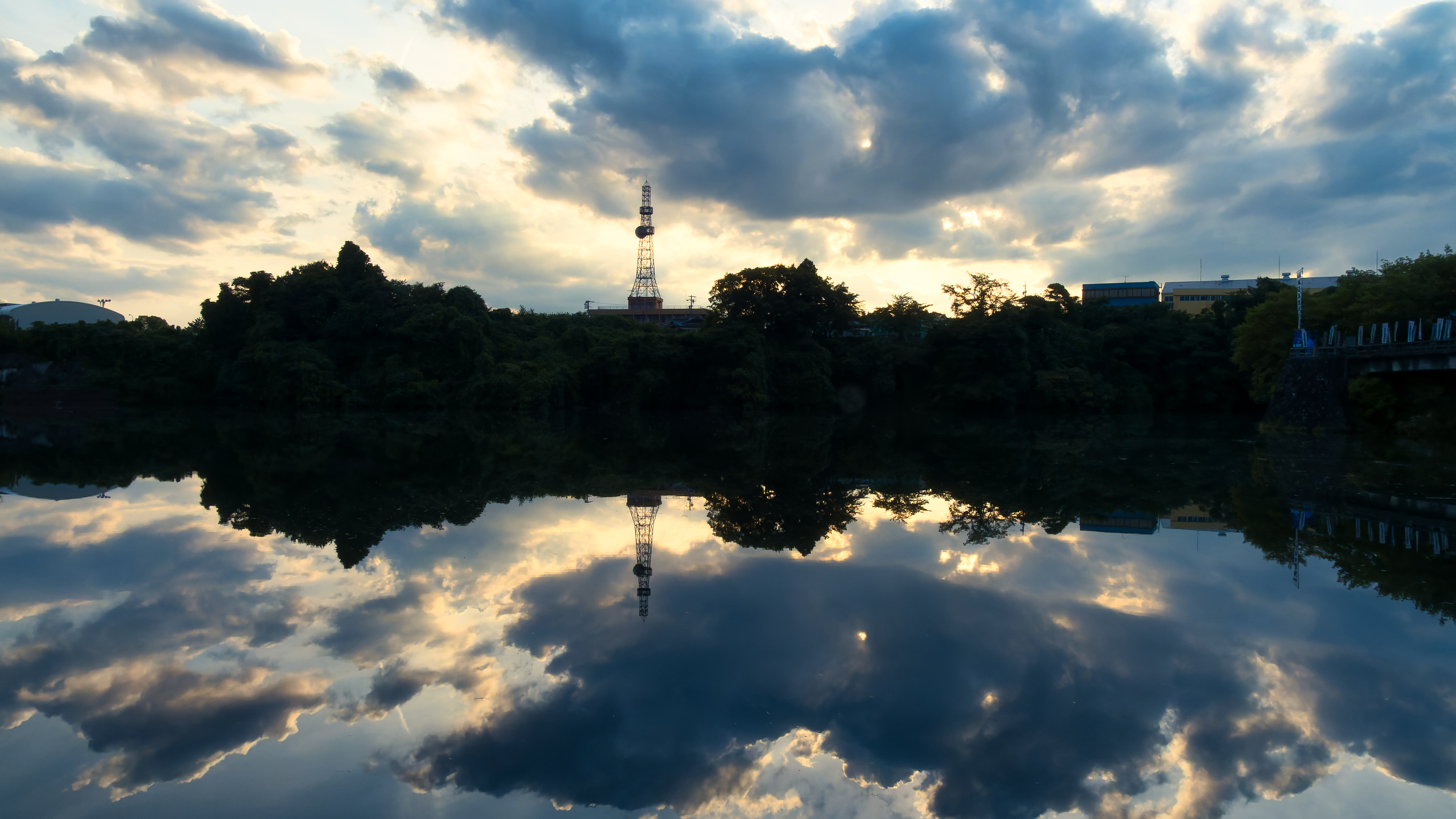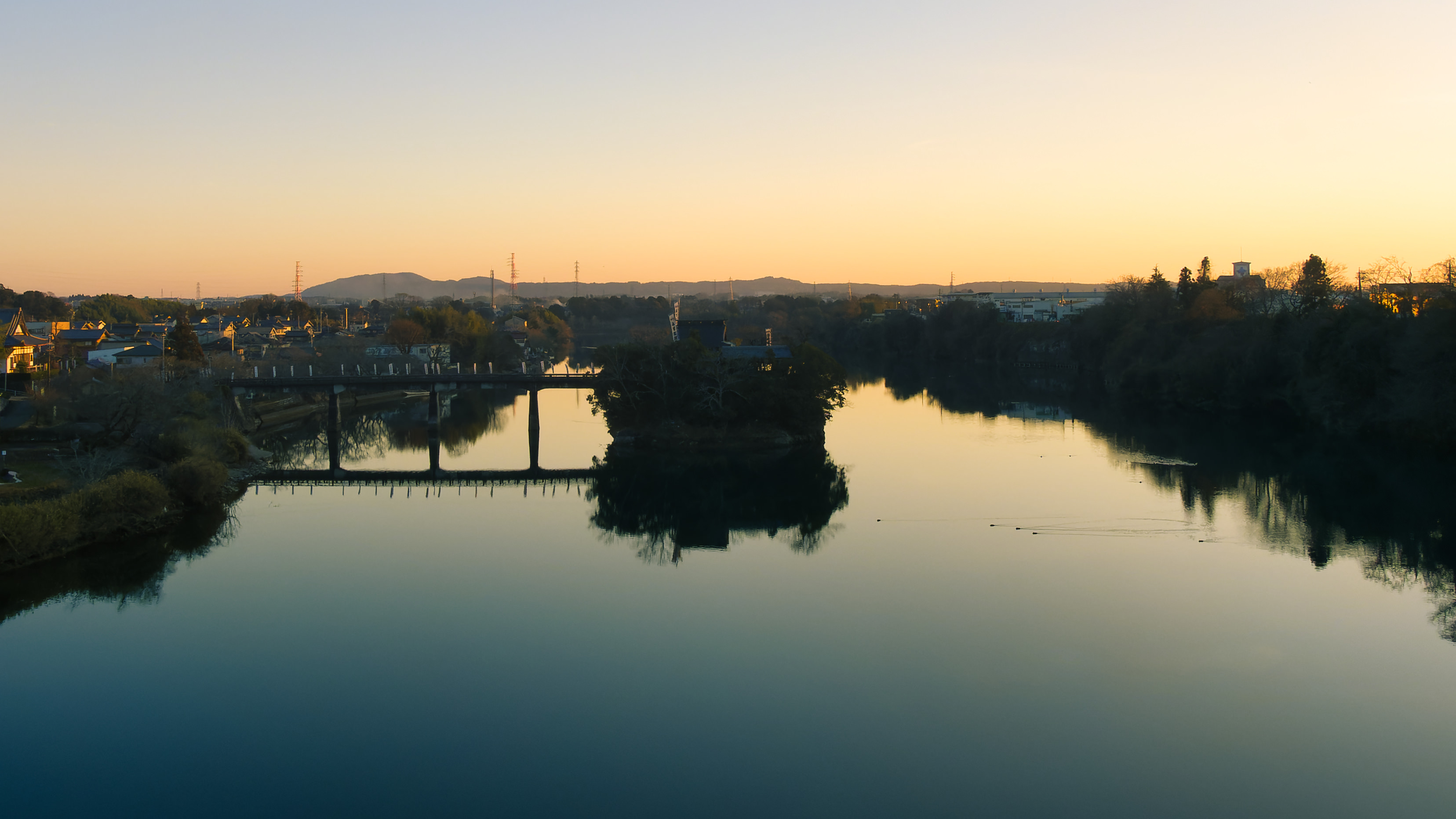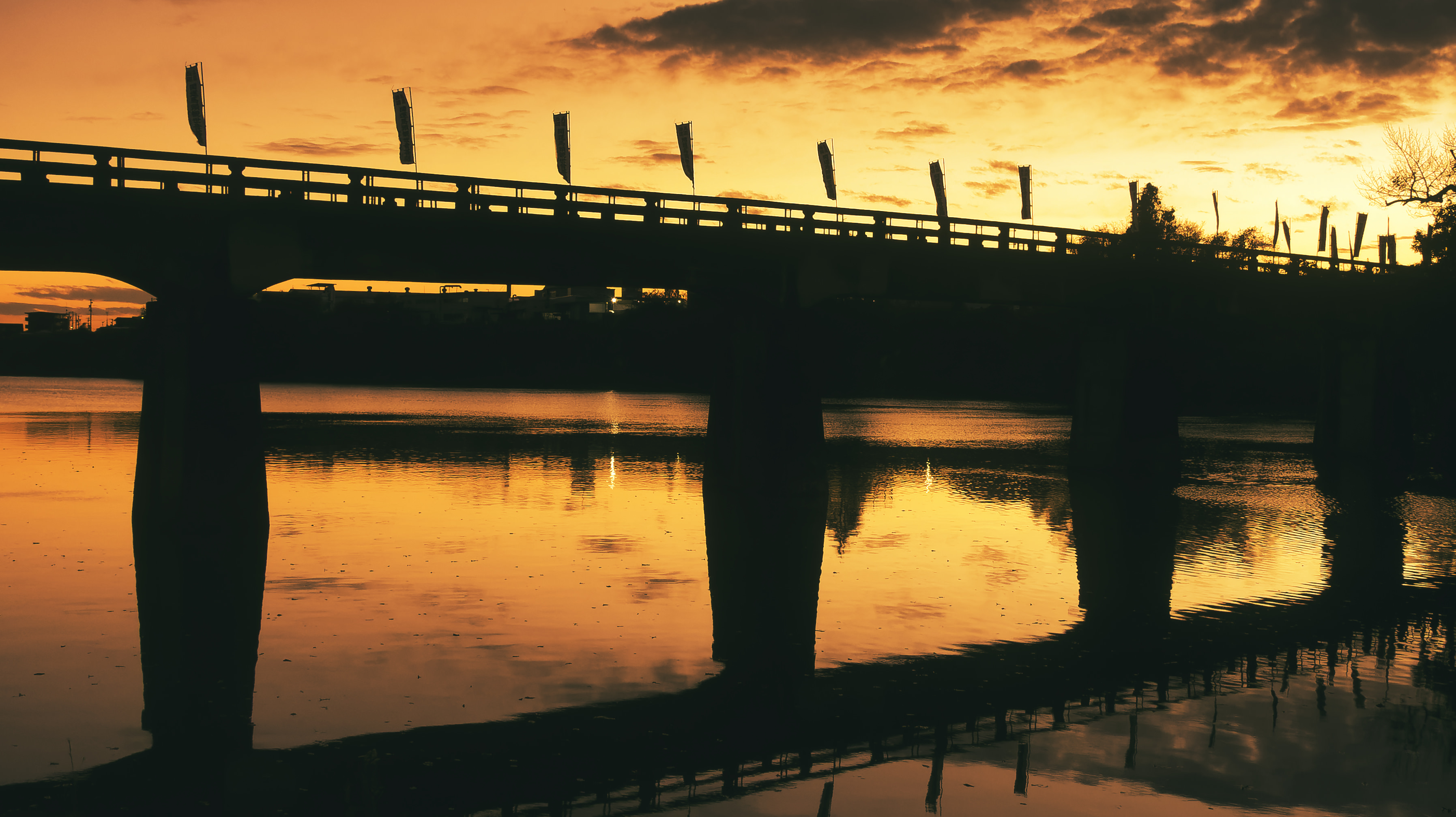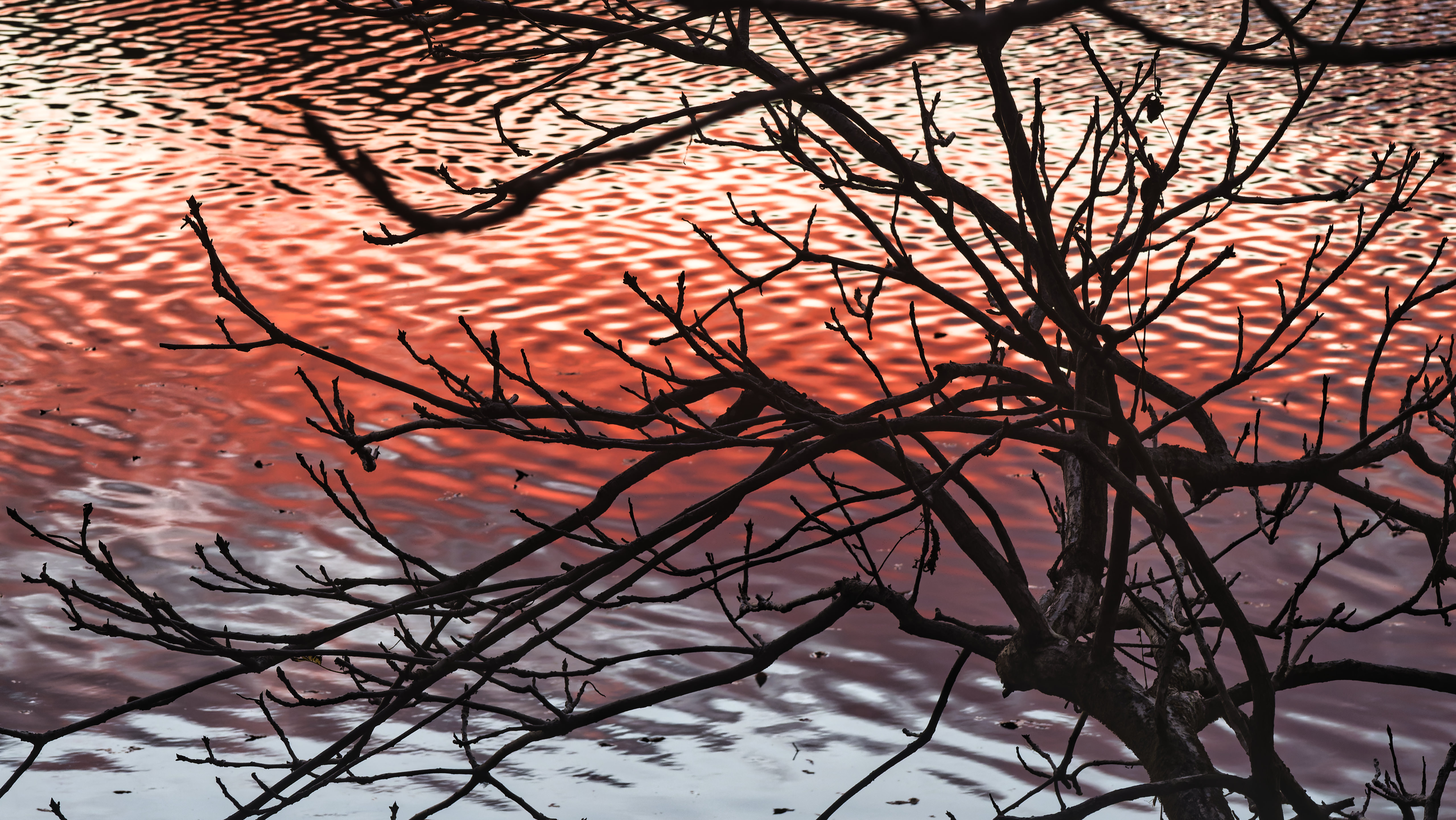 夕焼け水面が朱く染まりました。