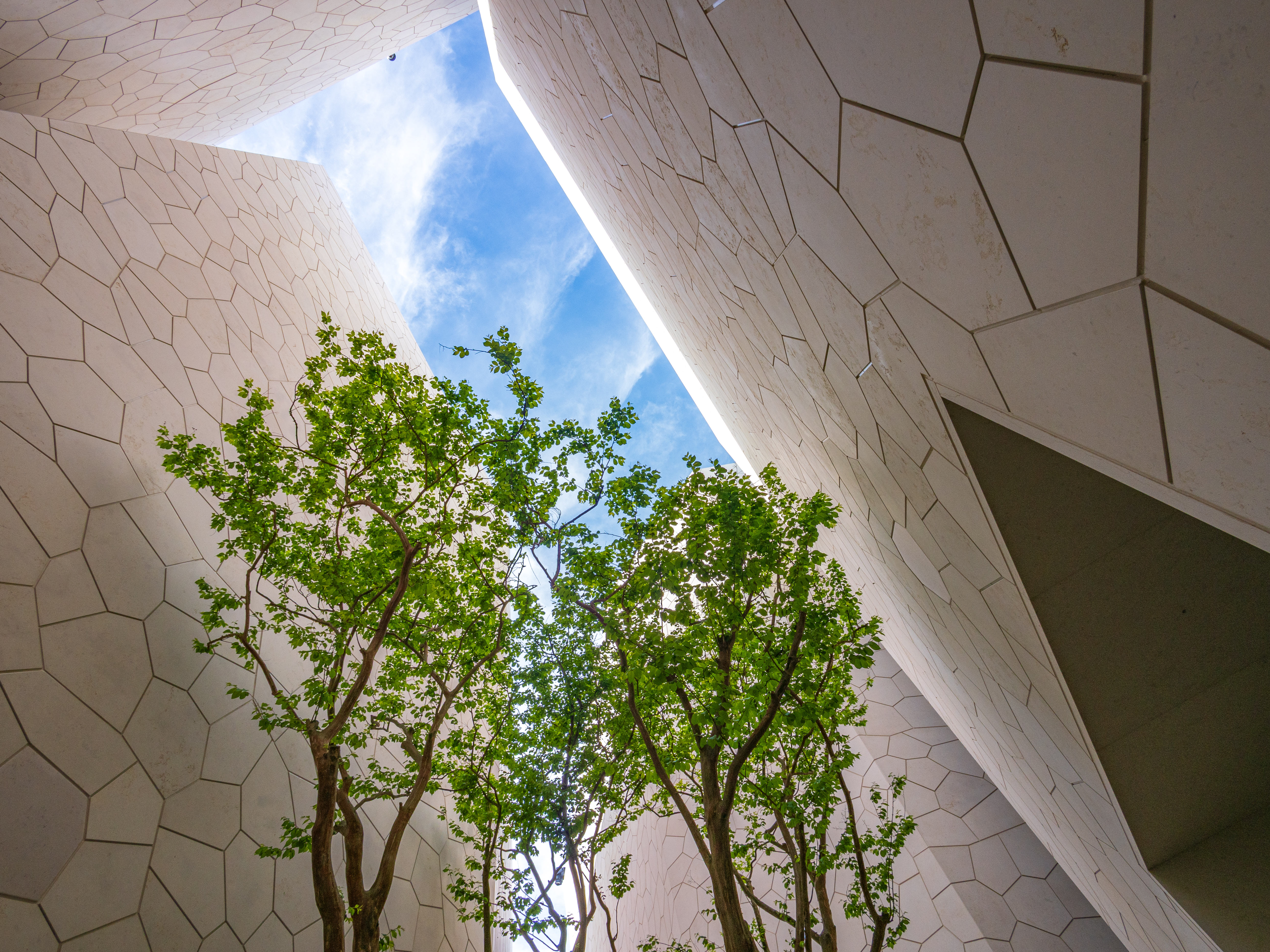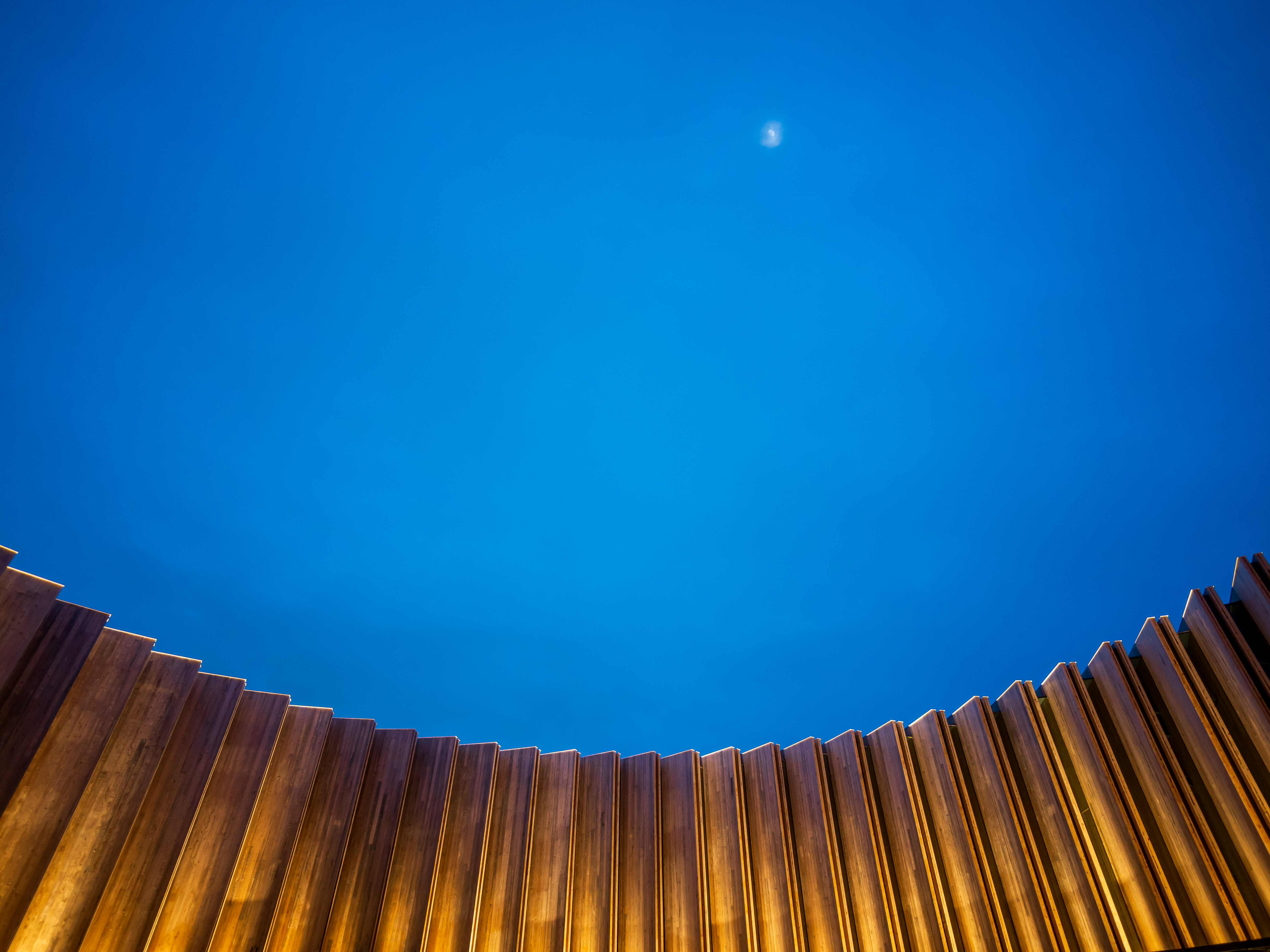 大阪・関西万博の大屋根リングを真下から仰ぎ見た一枚。伝統的な木組みの構造と広がる空が呼応し、空間と時間をつなぐ架け橋のような風景が現れる。空を見上げる来場者の姿に、未来へのまなざしが重なる。