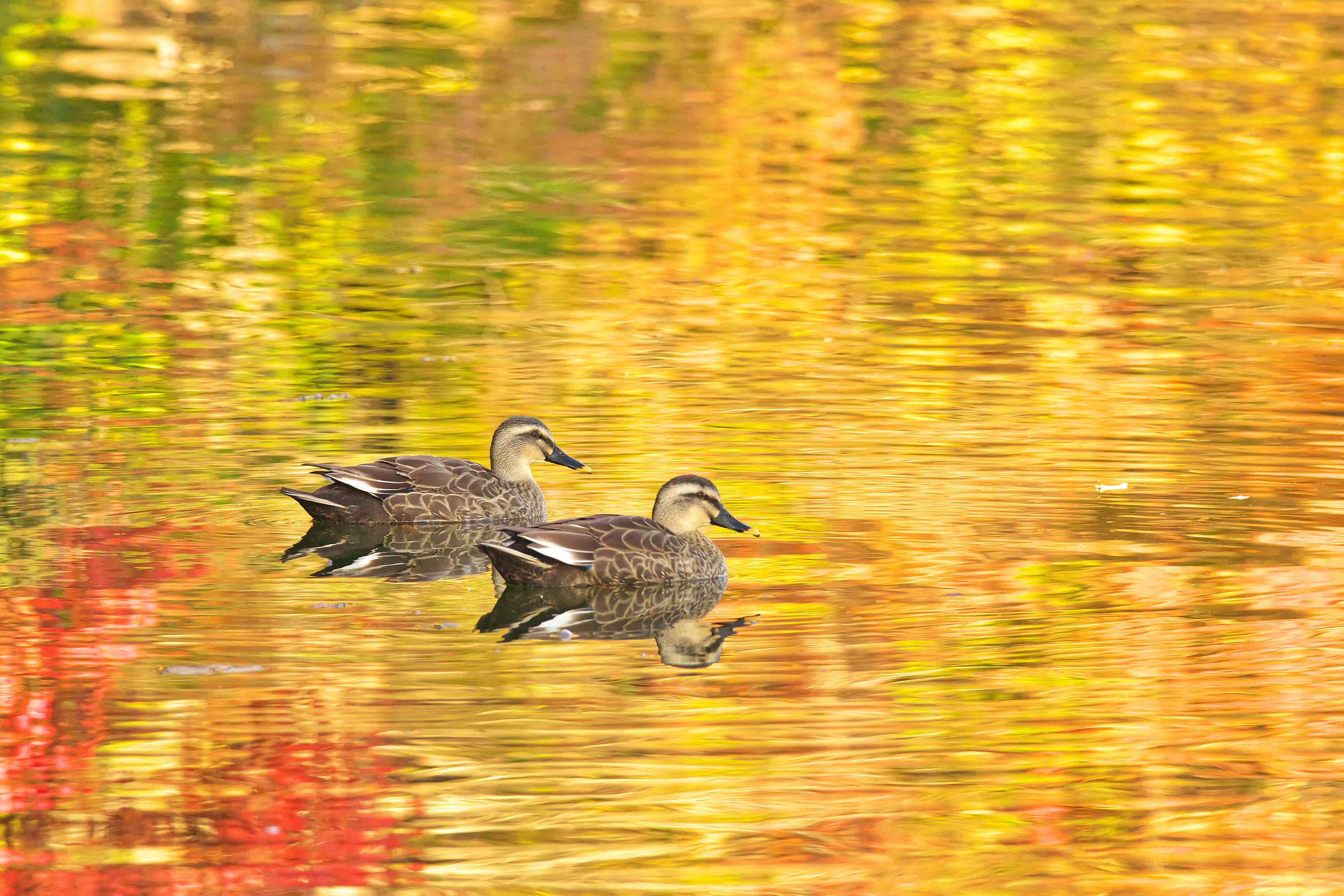 鴨たちも、紅葉狩りでしょうか?