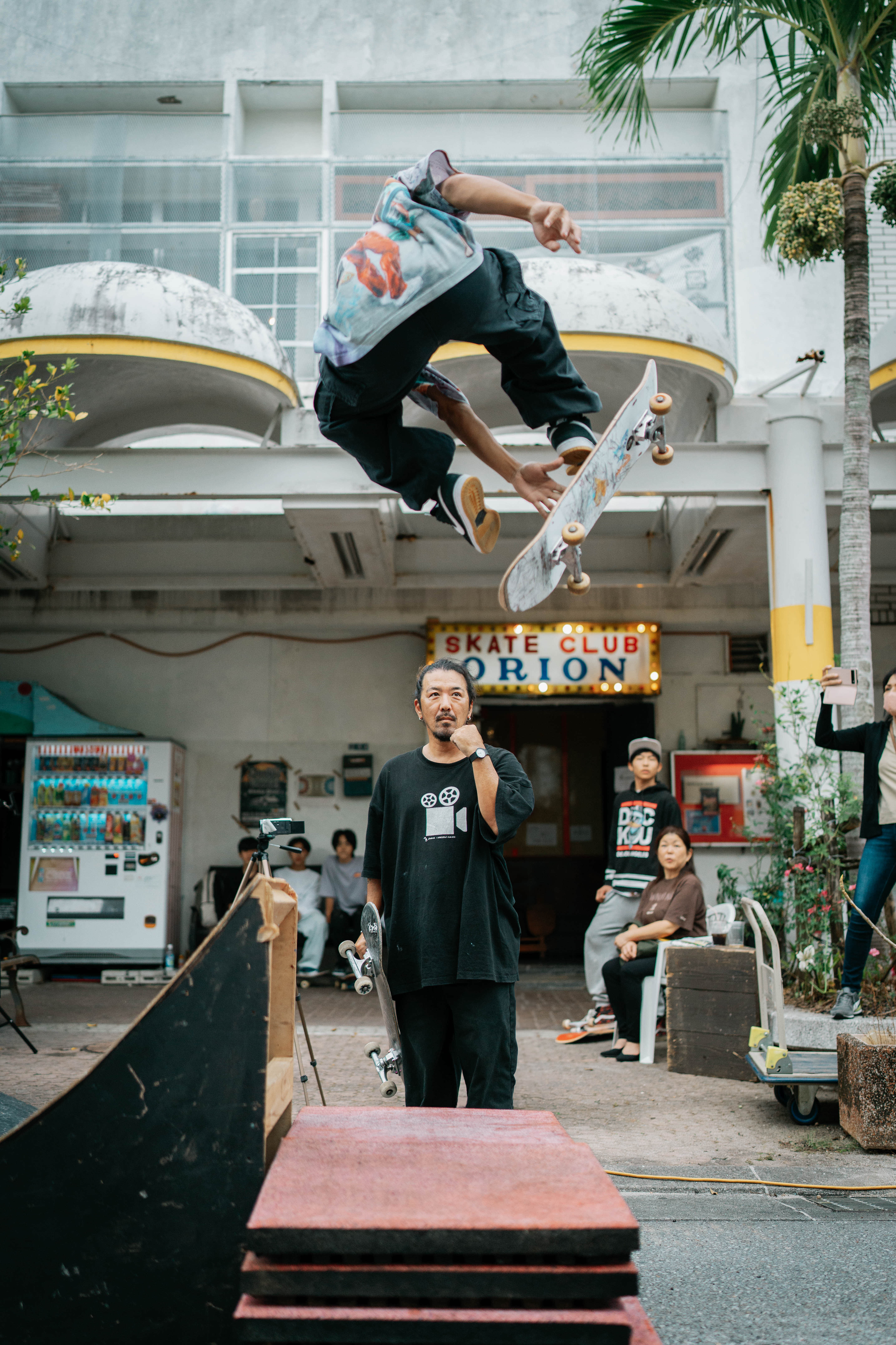 オリンピックスケートコーチの才さんが沖縄に作った手作り感あふれるスケートスクールオリオン。そのスクールの前で、地元のお祭りで歩行者天国になったタイミングに日頃の練習の成果を披露するキッズたち。彼らを見守る才さんの眼差し、ローカルお母さんの驚いた顔がとてもいい瞬間だった。