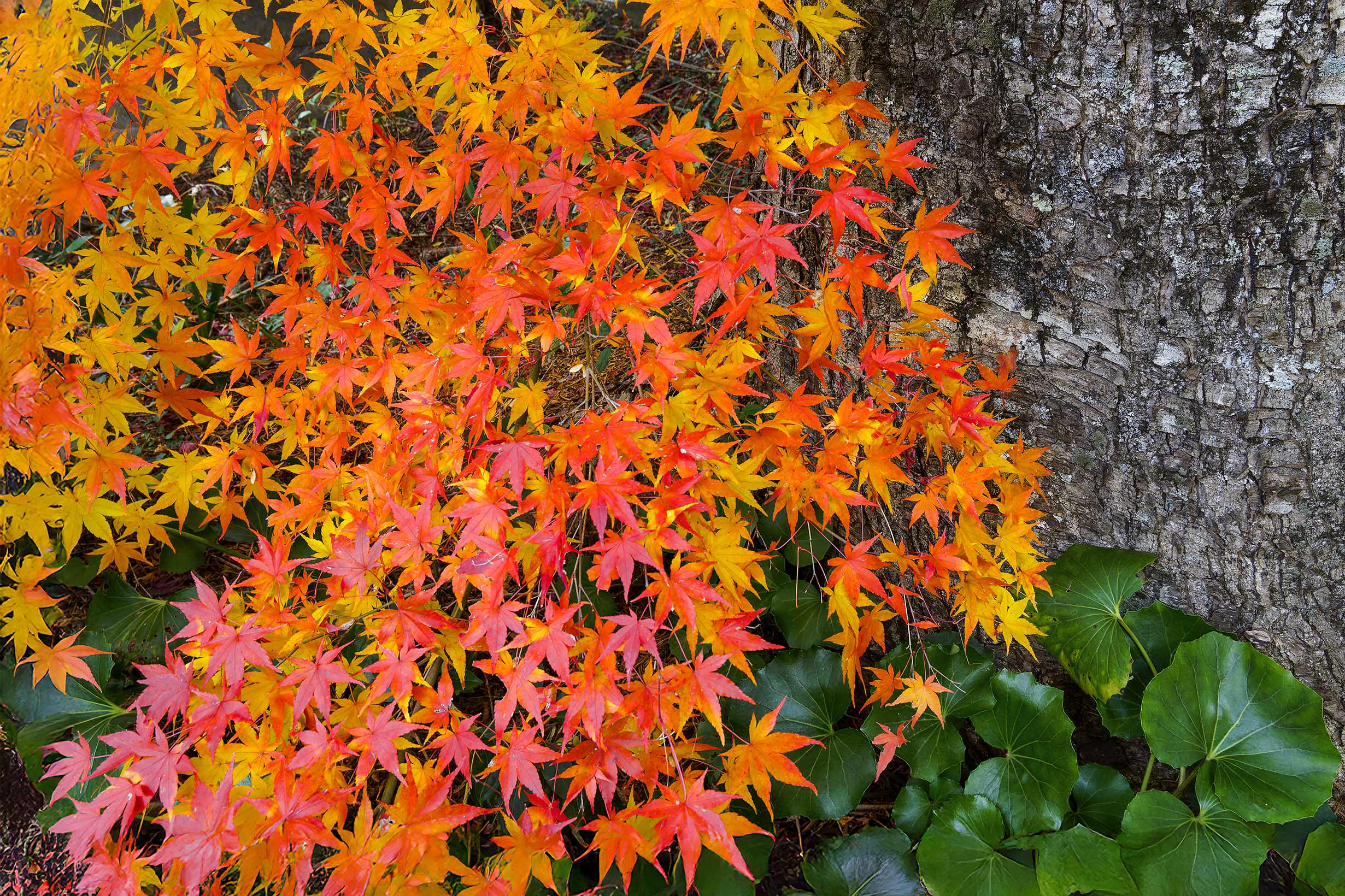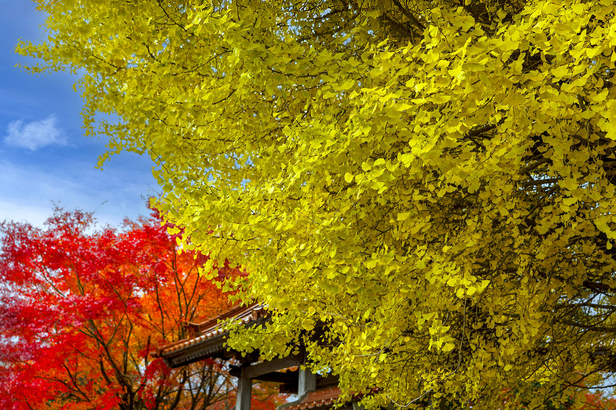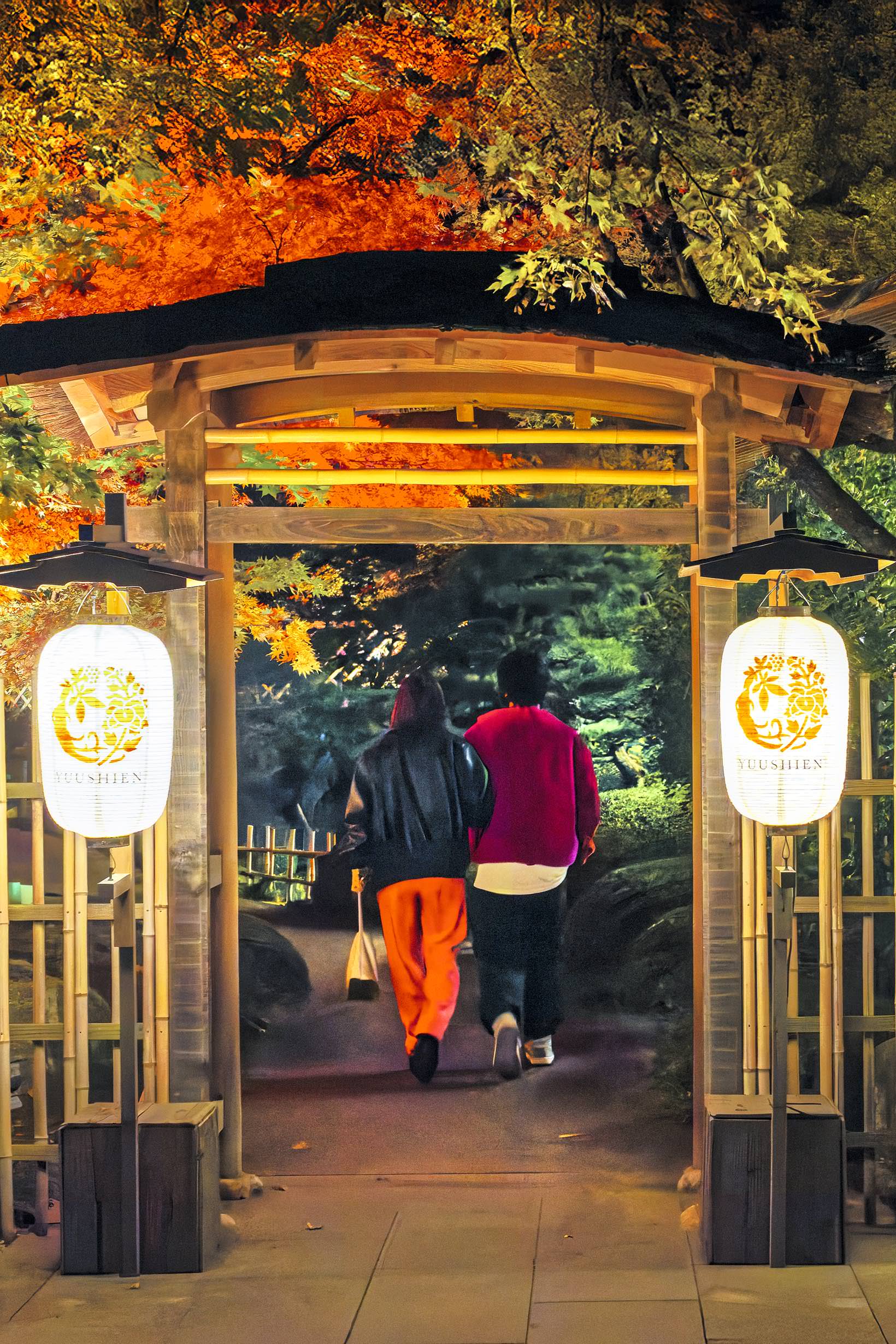 半透明ビニールカバーに映り込んだ紅葉です。