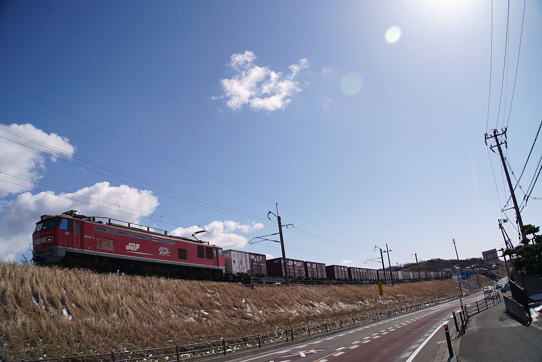 紅葉と貨物列車