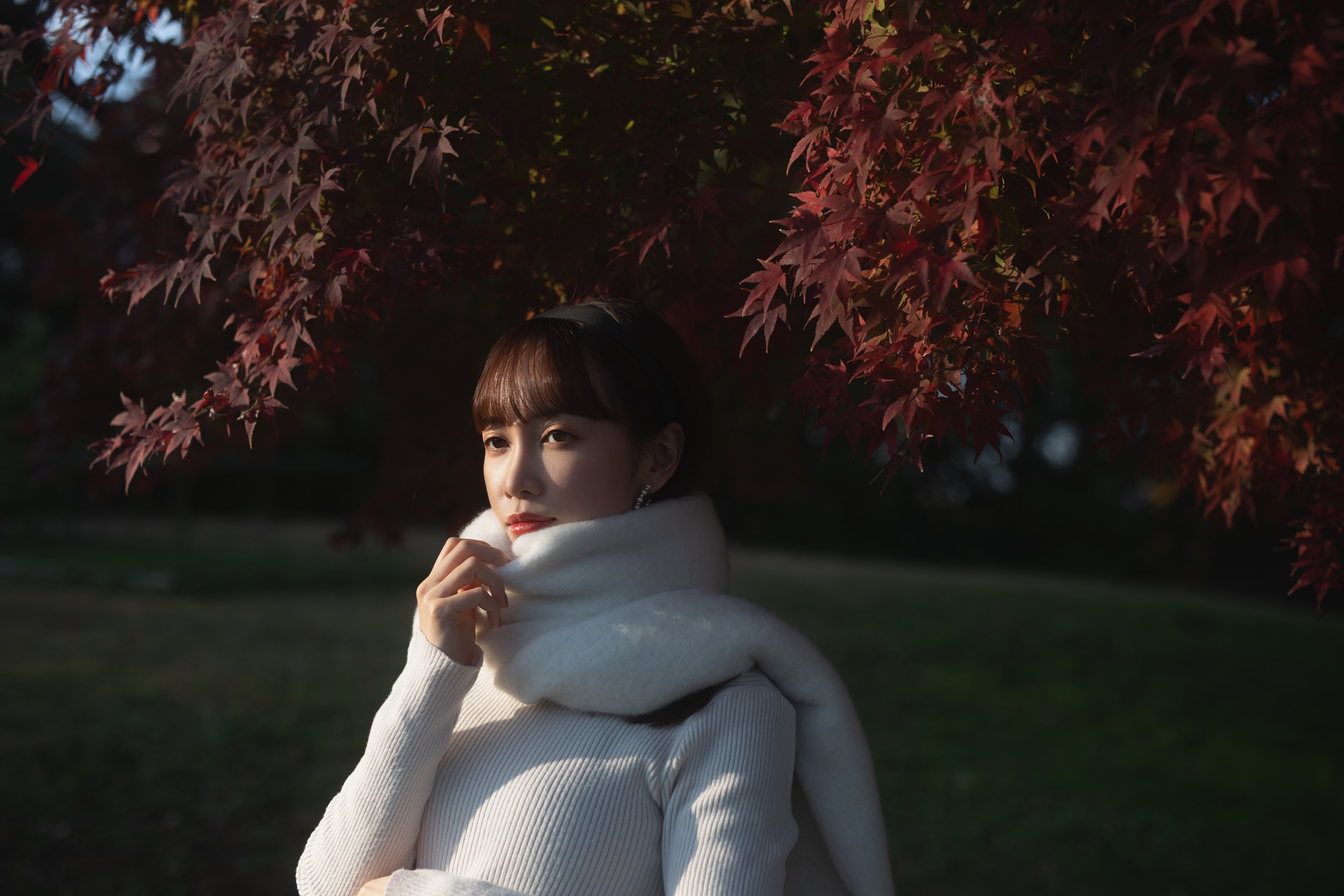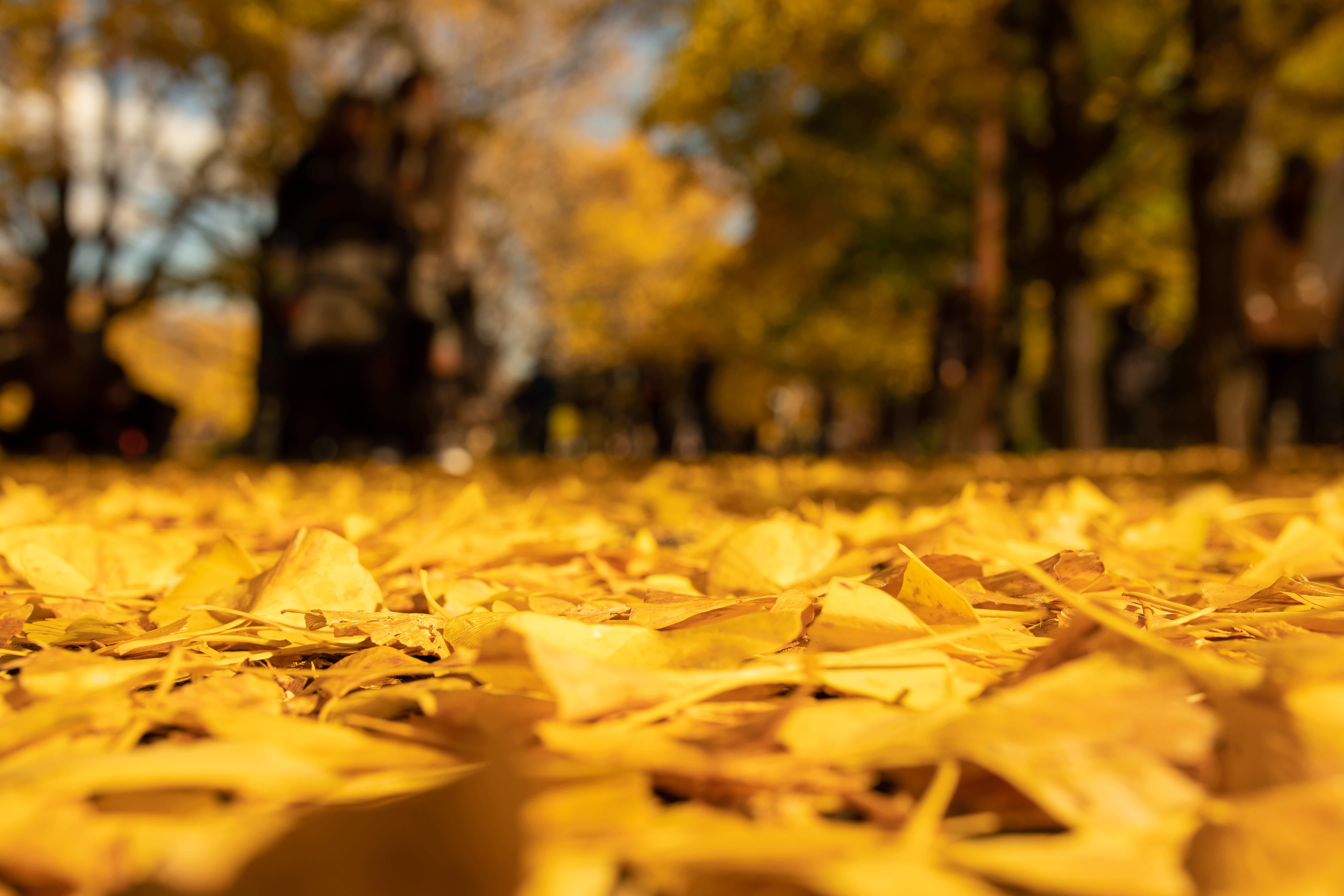 落ち葉になっている黄色く染まった紅葉を綺麗に舞うように投げてもらいました。
