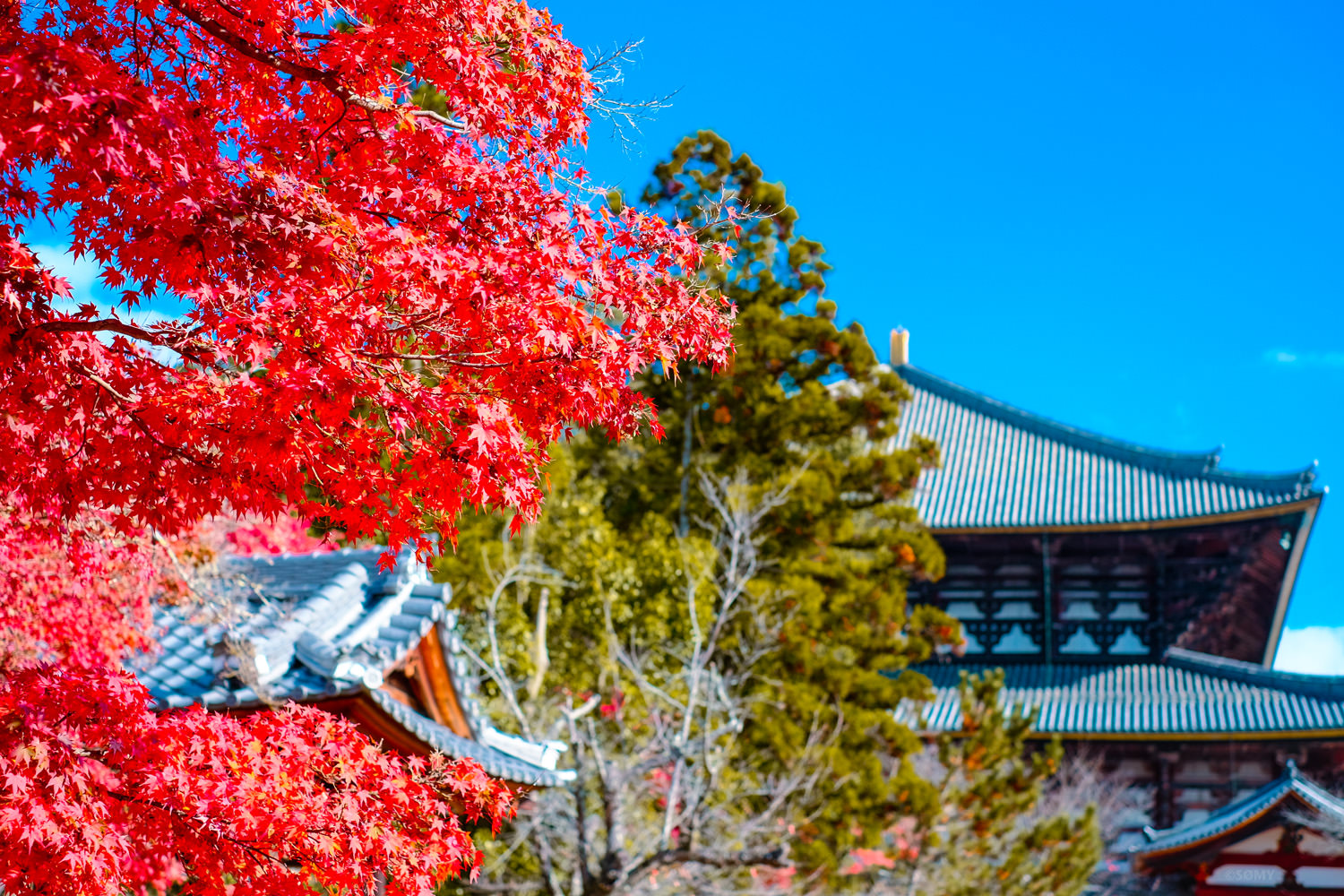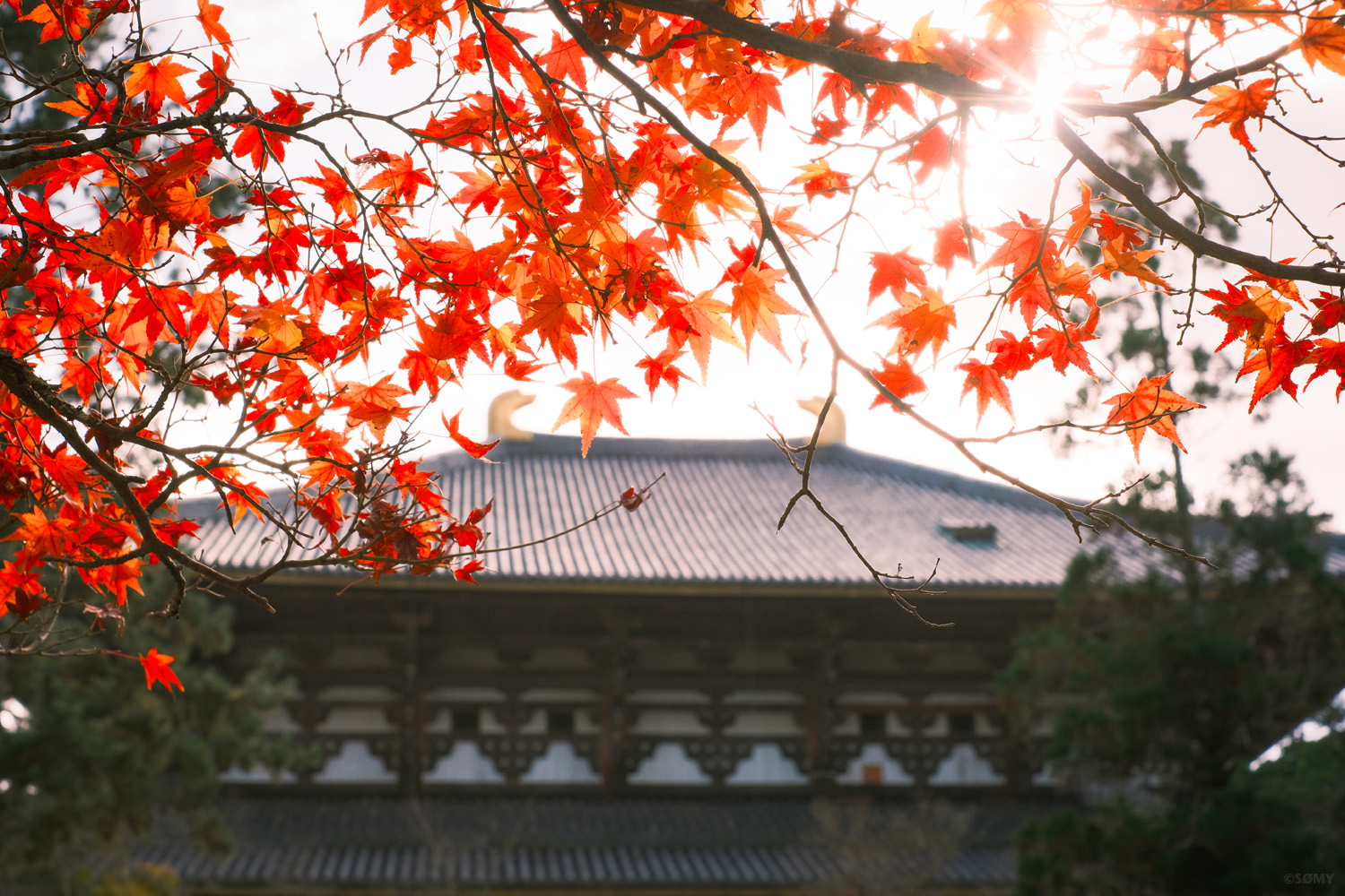 少し絞ってF2.8。大仏殿の瓦も十分シャープな描写に。