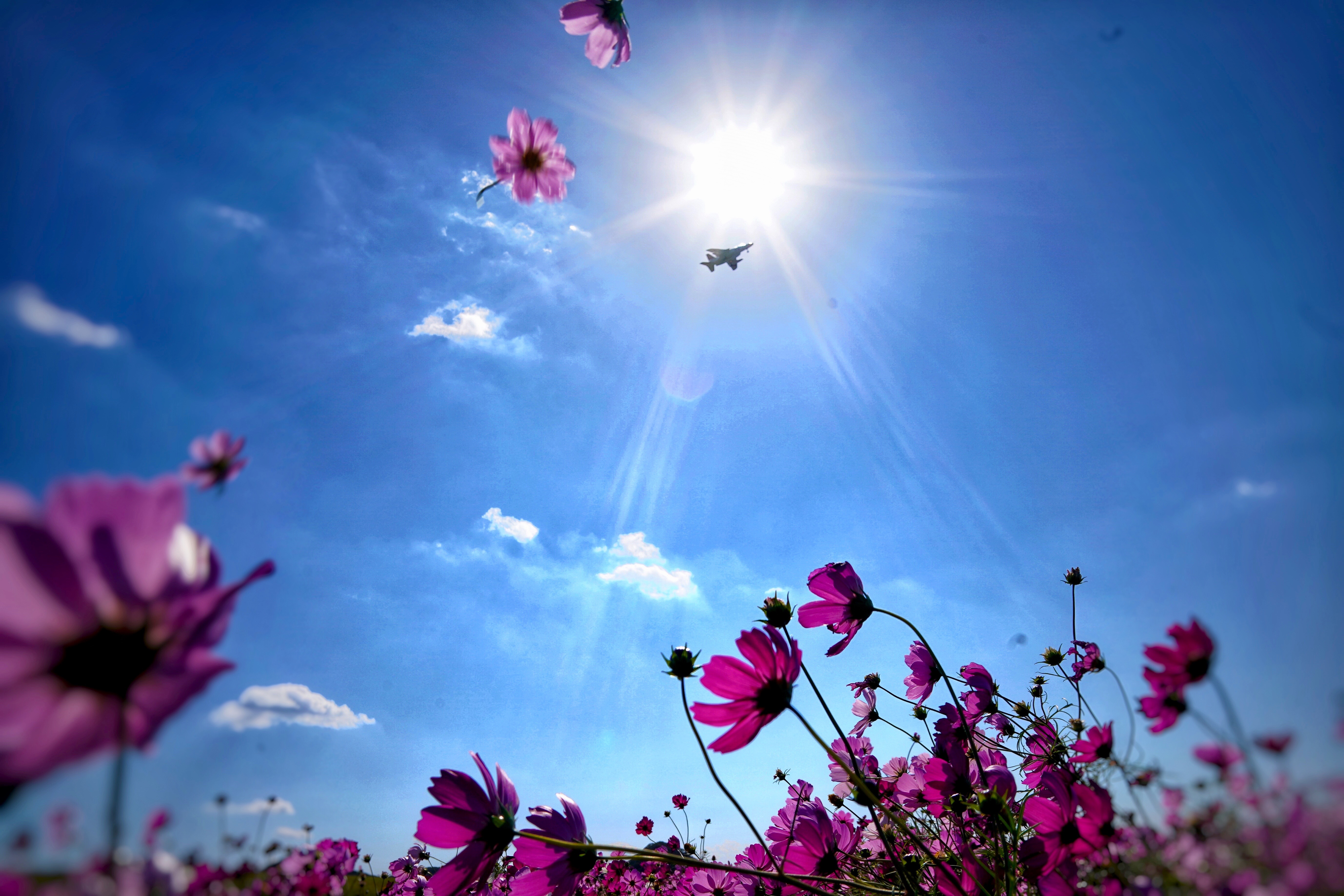 戦闘機とコスモス