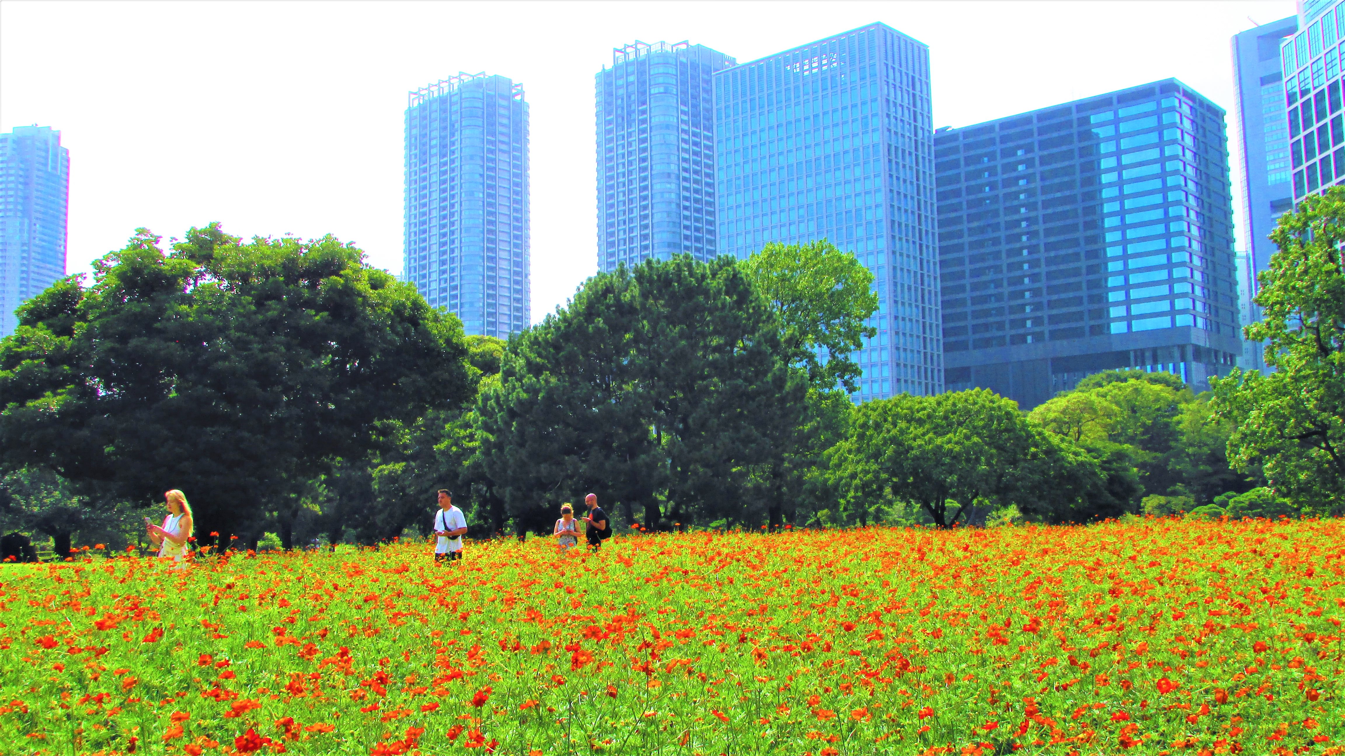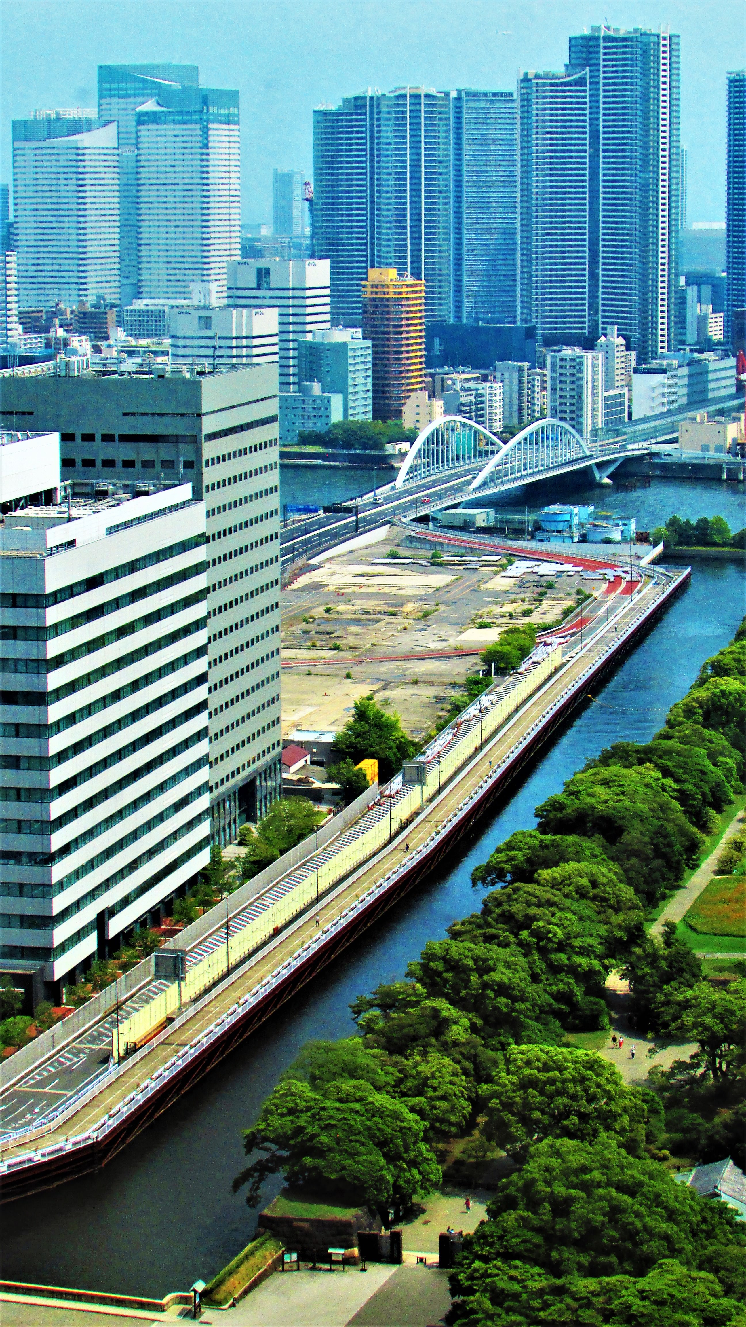 浜離宮からの都心の眺めは自然と人工的な物との