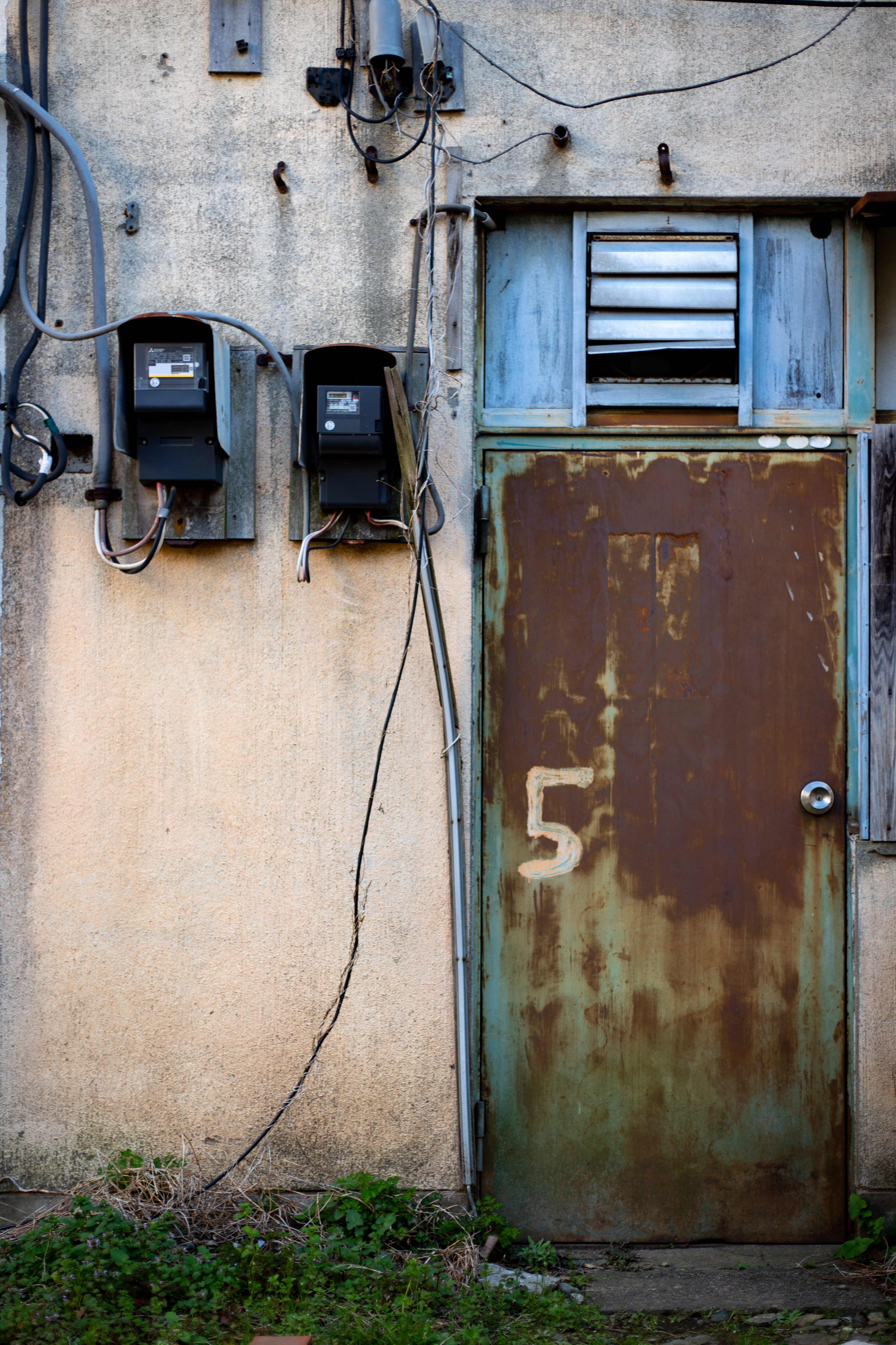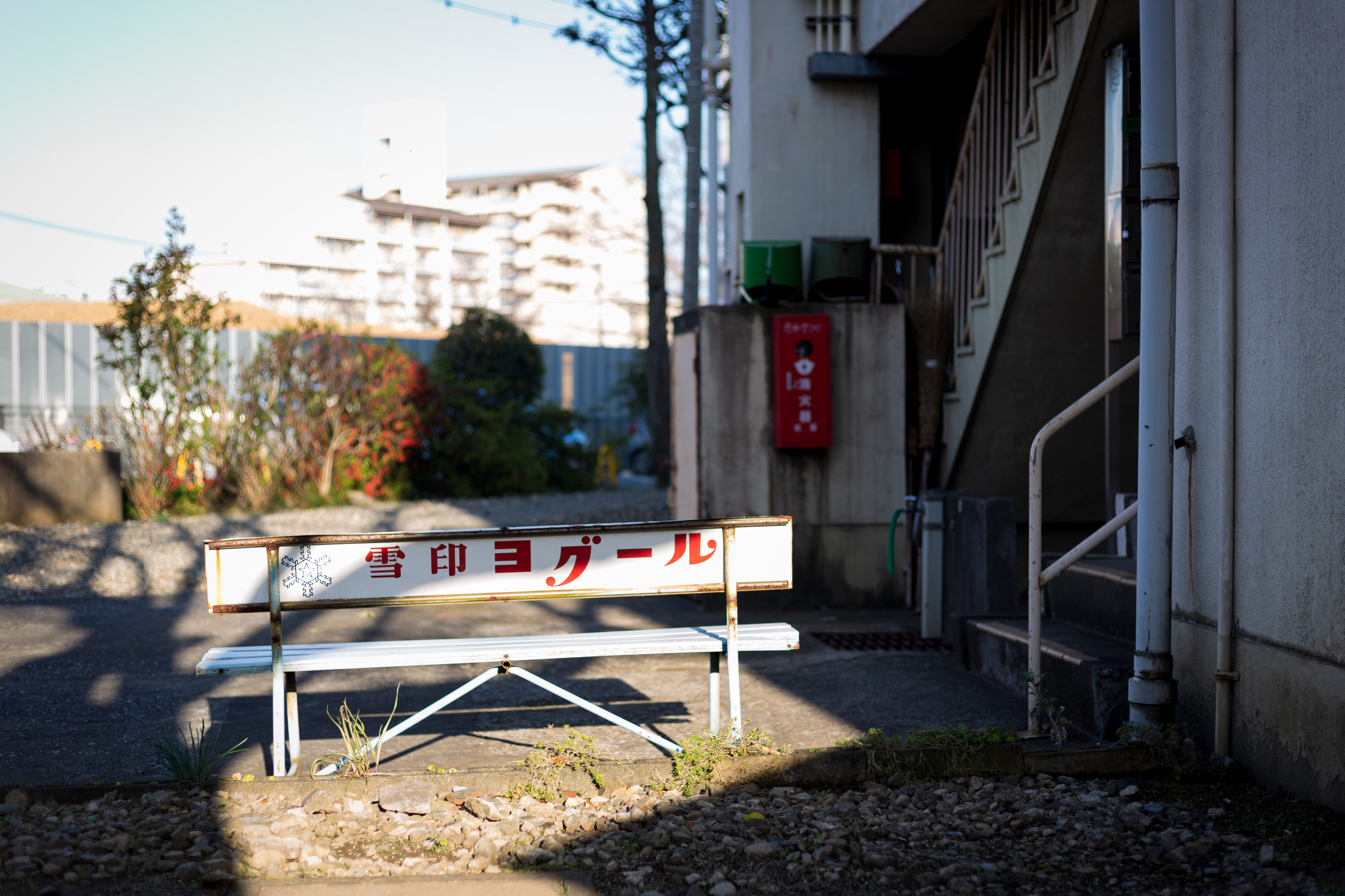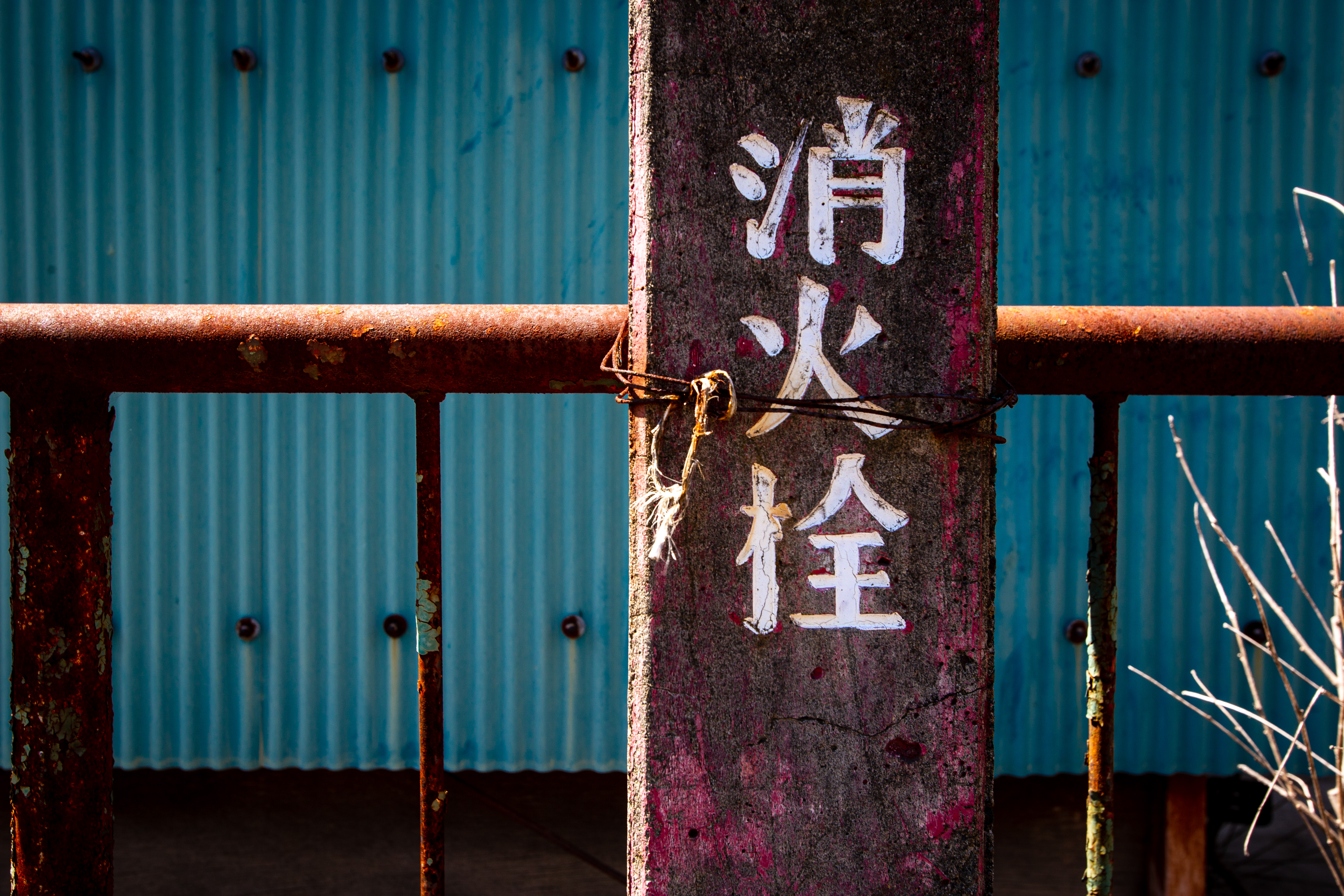消火栓の測量杭がある風景