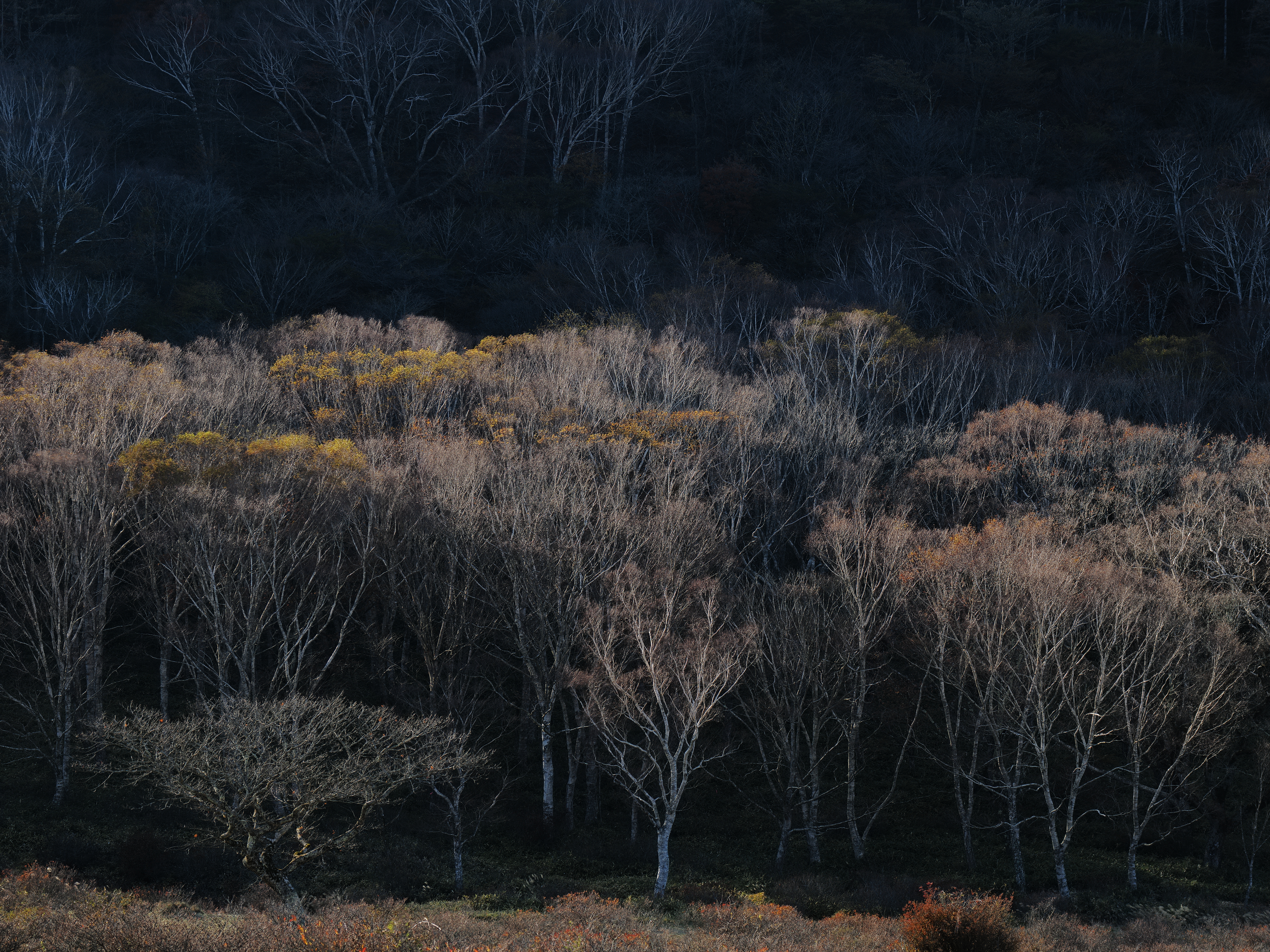 朝日が足もとにも差し込みだして、色をまとってお目覚め