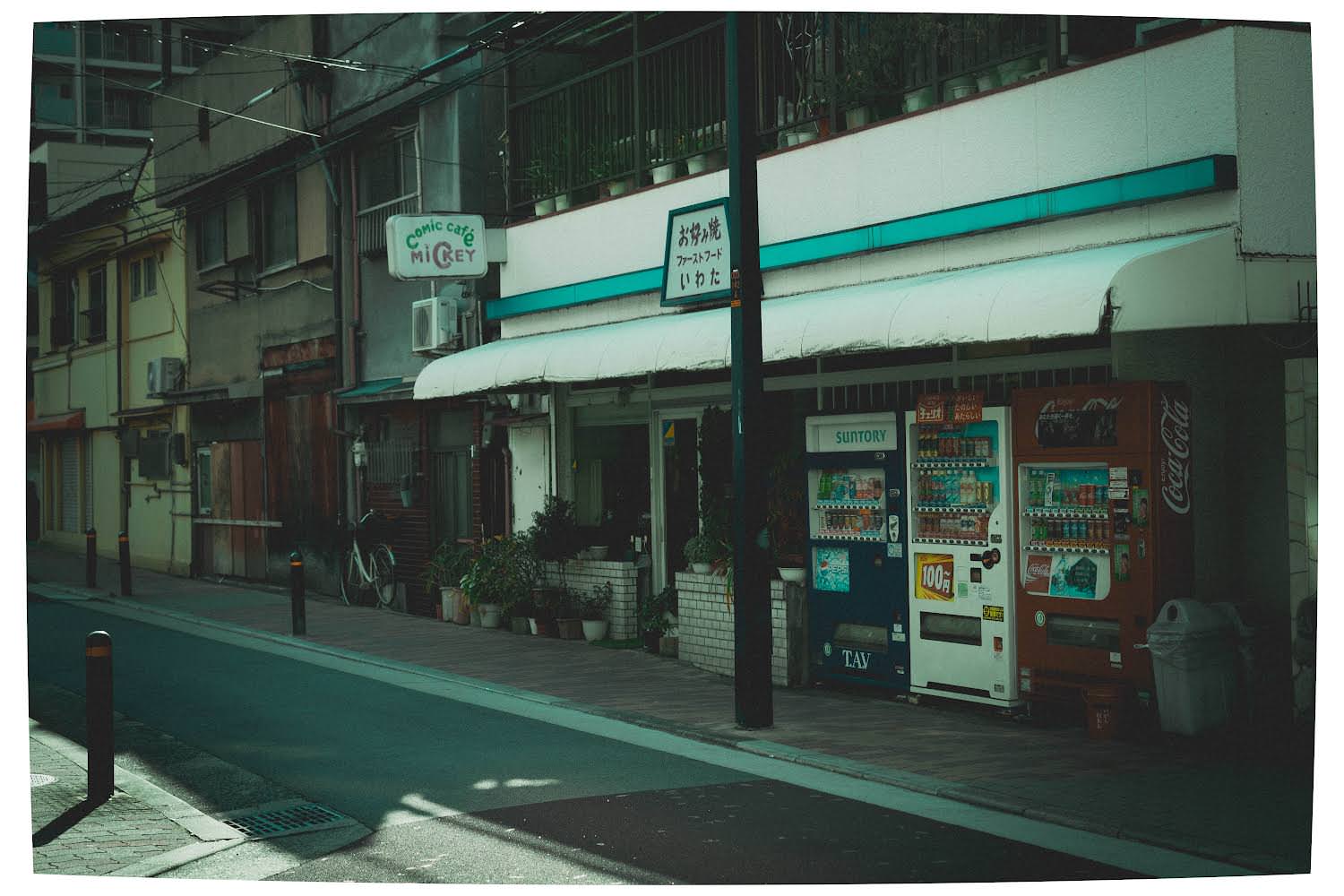 街角で