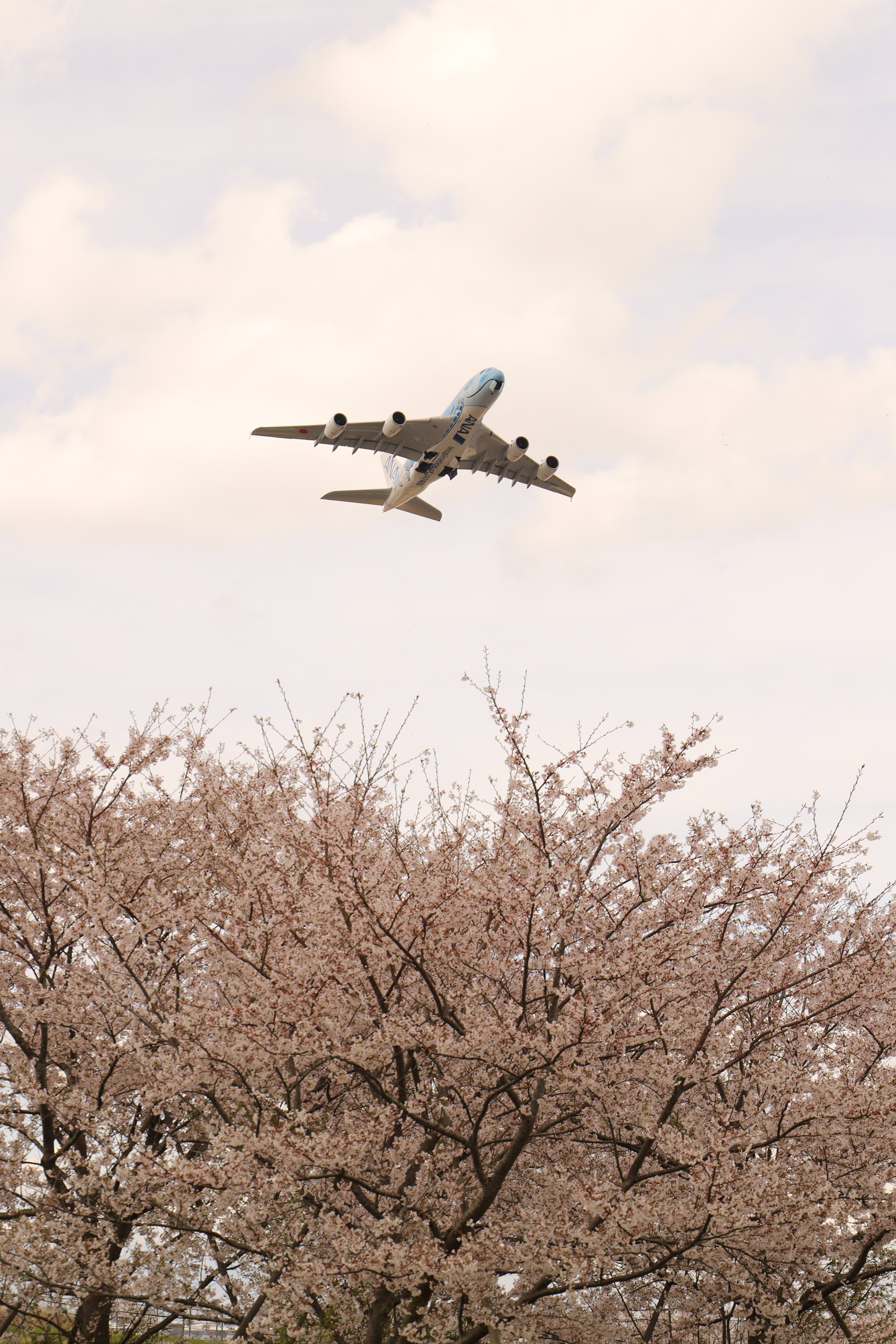 東京国際クルーズターミナルに停泊している客船ぱしふぃっくびいなすと羽田空港を離陸したANAの飛行機が交差したところを撮影しました。