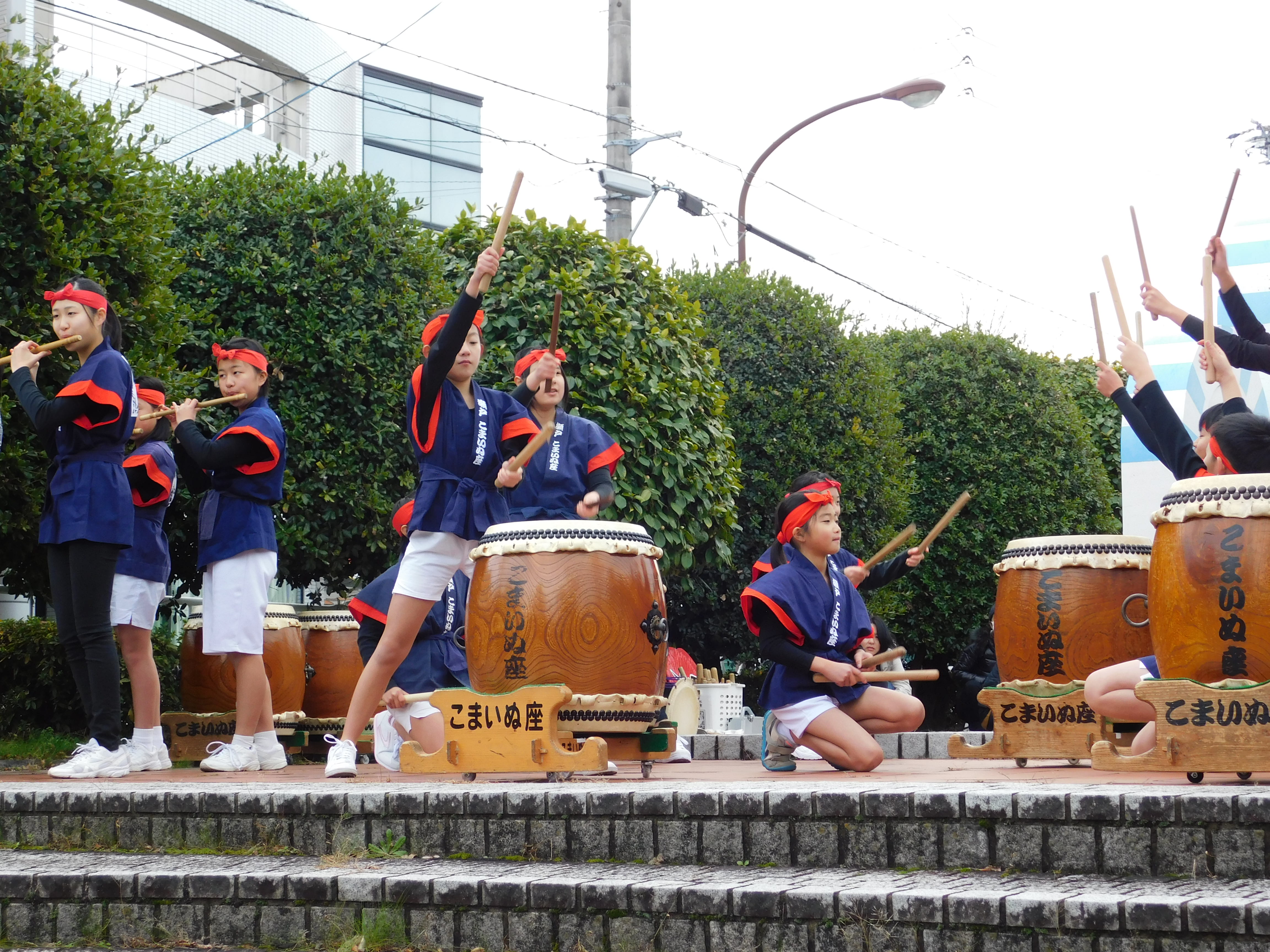 正月行事・こまいぬ座の和太鼓パフォーマンス
