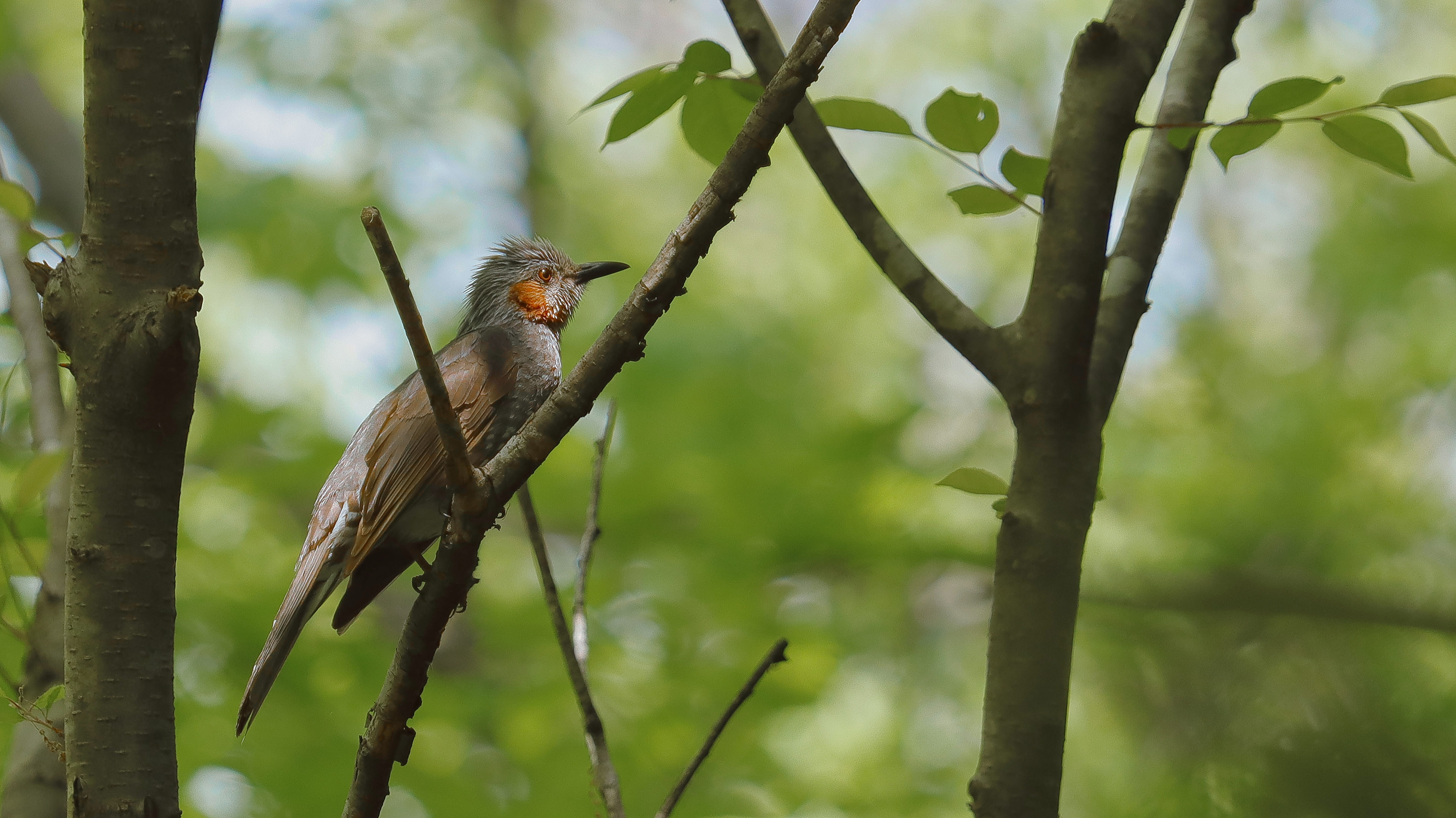 すがすがしい朝、楽しい朝食中こちらに目線をくれました。