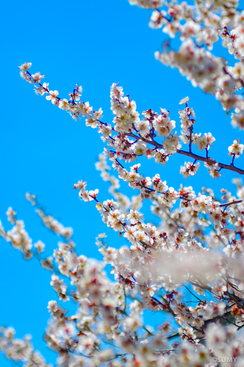 春めいた陽気の中で咲き始めた白い梅を、相棒のソフトフォーカスレンズでパシャり。