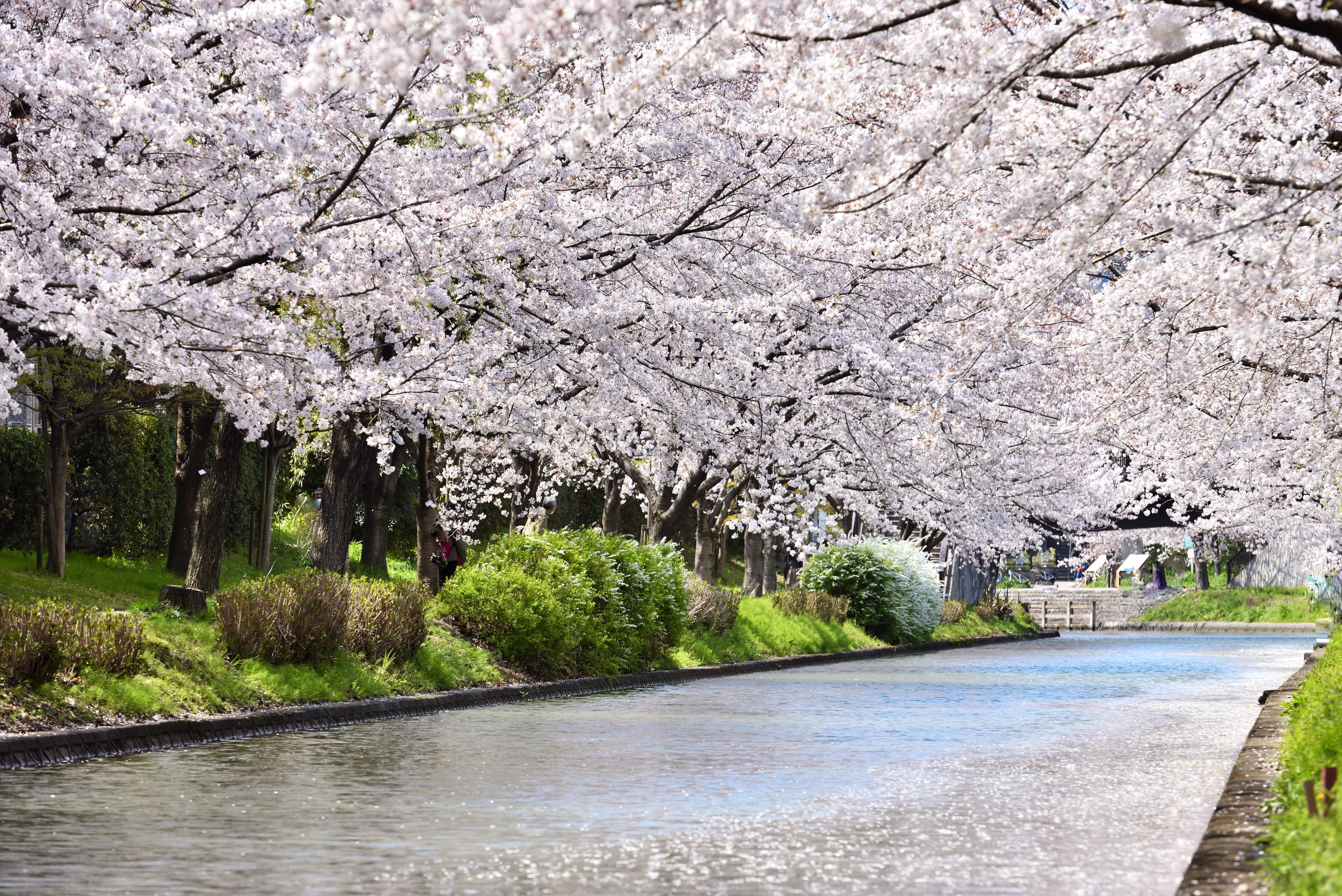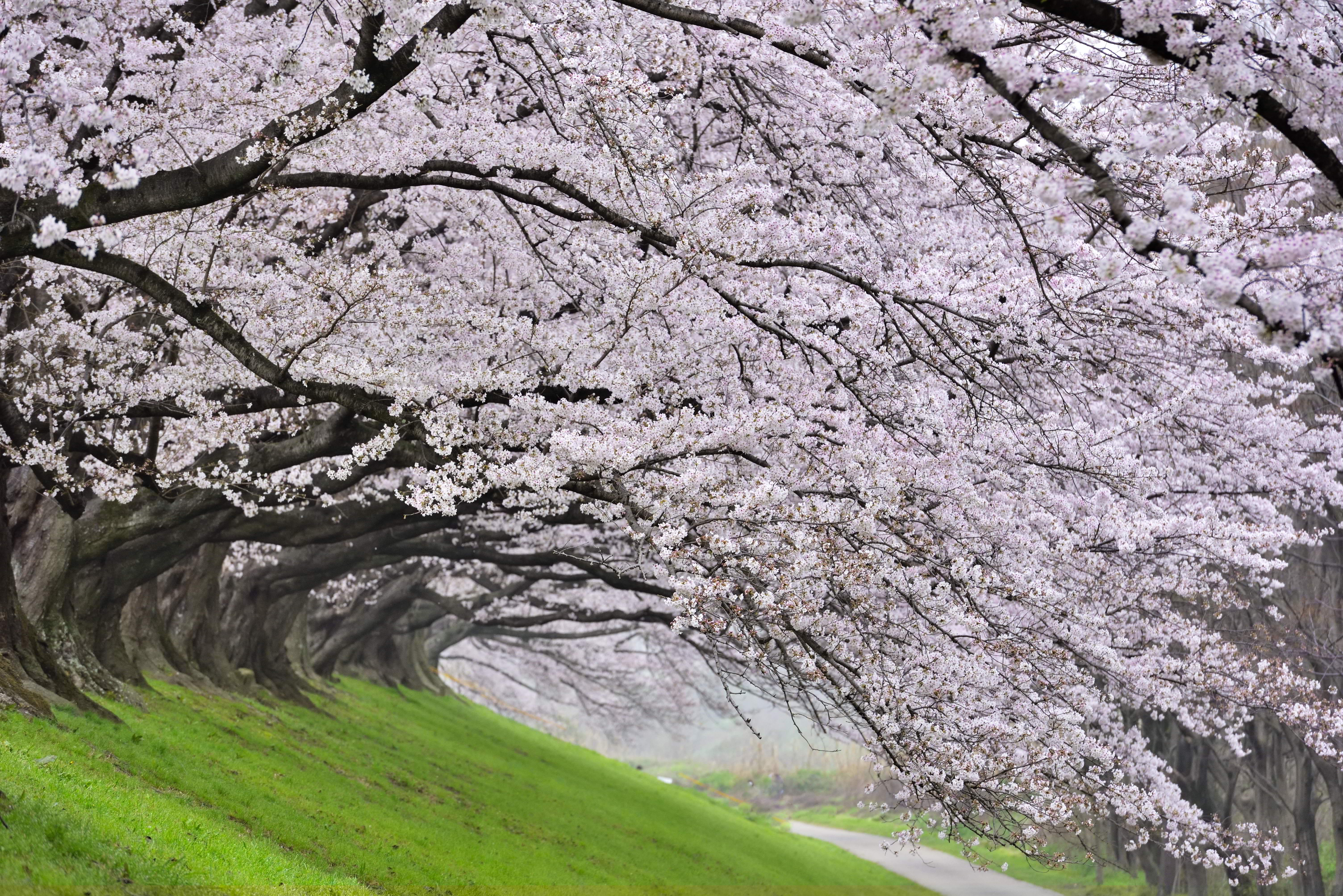 1.2㎞にわたり、桜並木が続く背割堤。