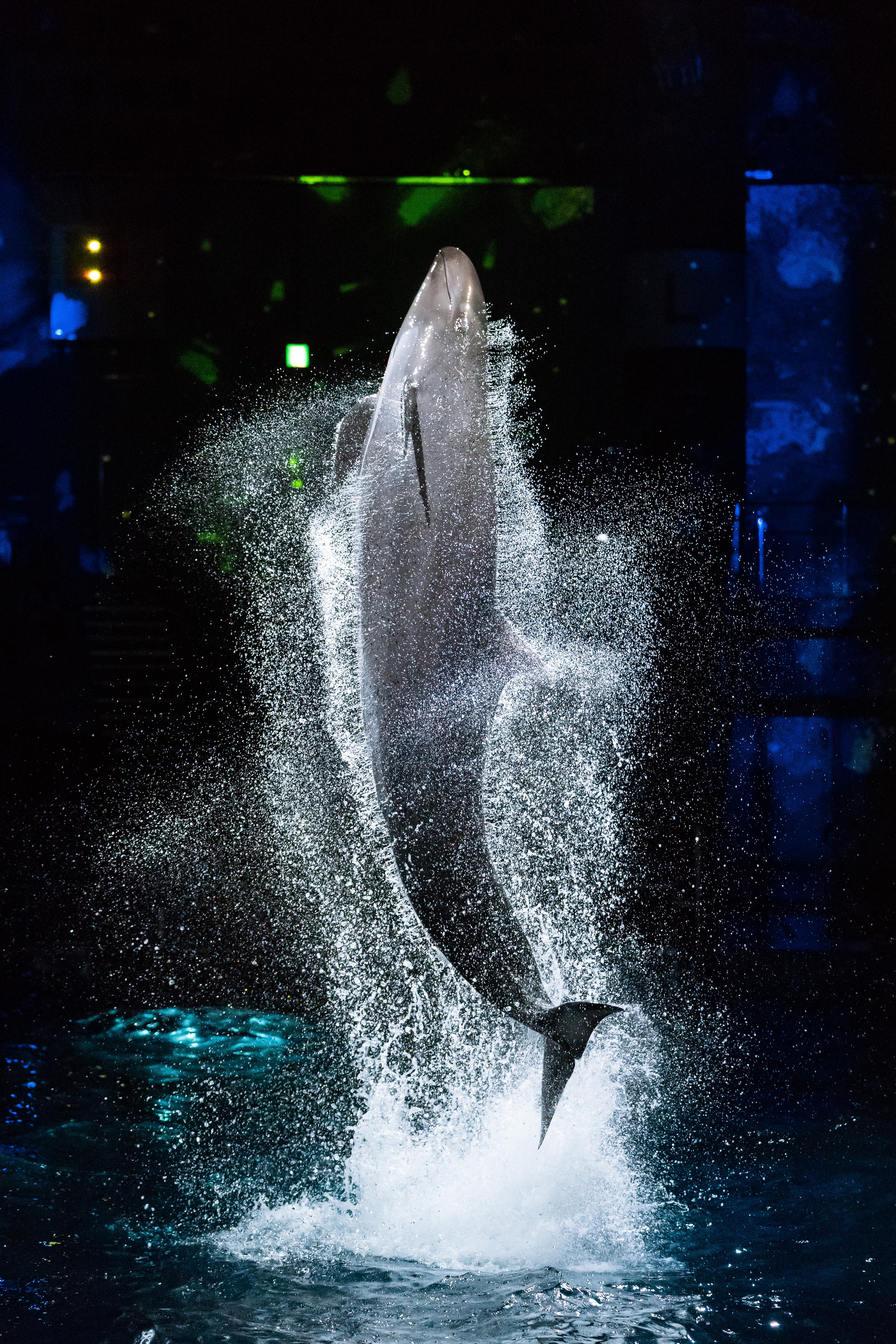大きく翔んだイルカさんは、まるで宝石の様な水飛沫を纏っています。美しく輝く姿は、他のものには代え難いと言えます。