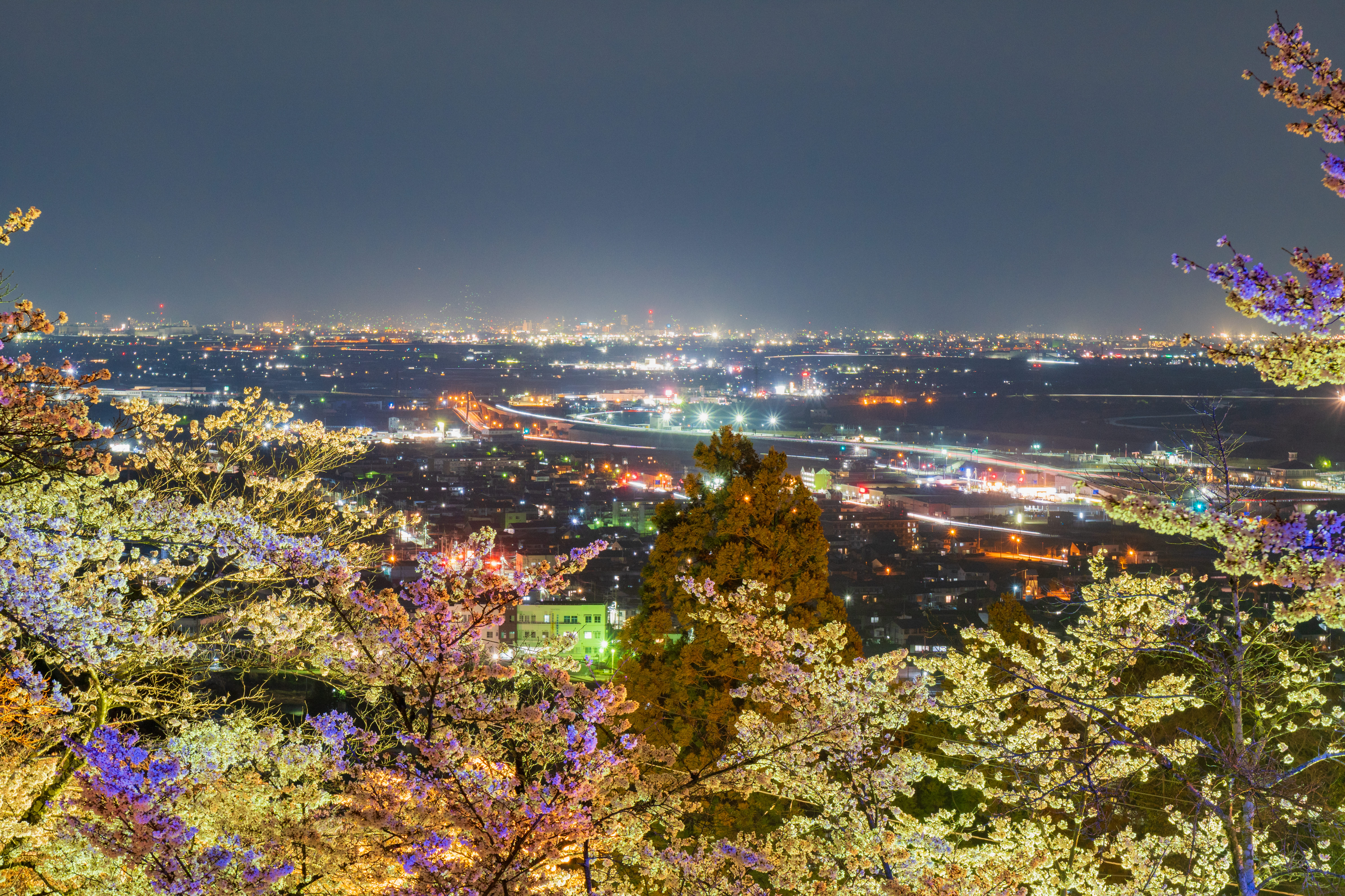 桜まつりのライトアップと夜景です。