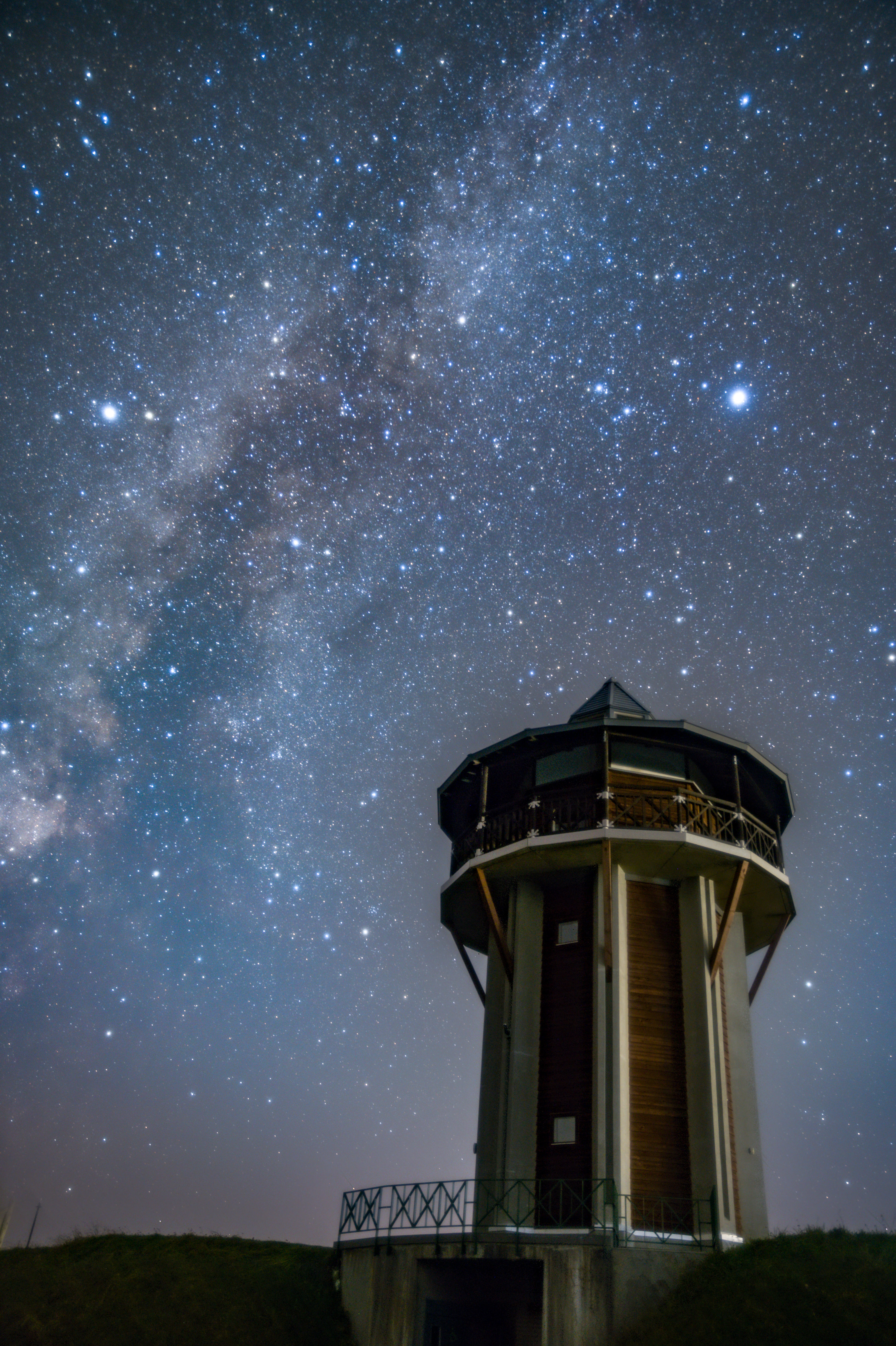 八雲育成牧場の展望塔と天の川