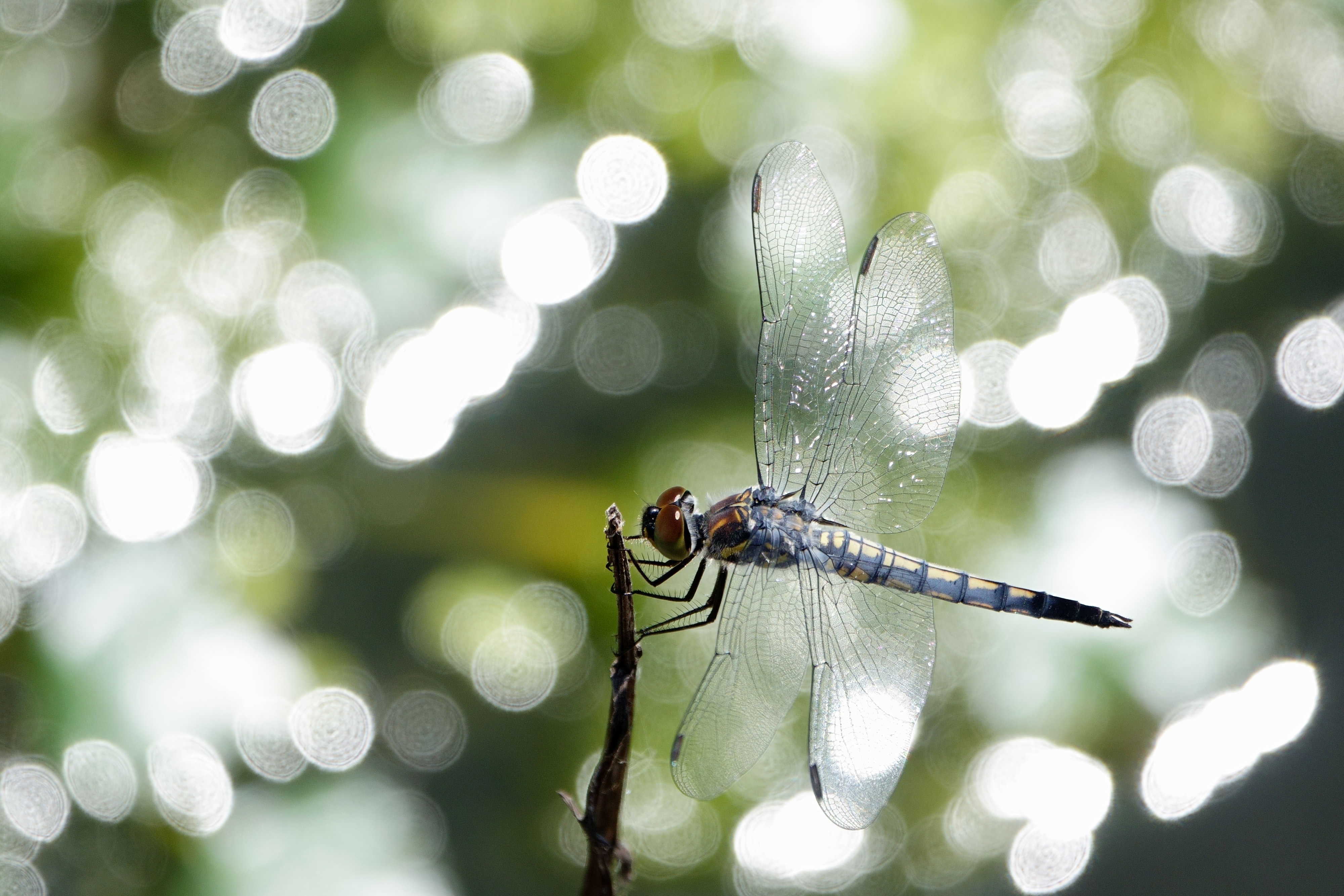 耕作地の水路で、ギンヤンマが卵を産んでいました。