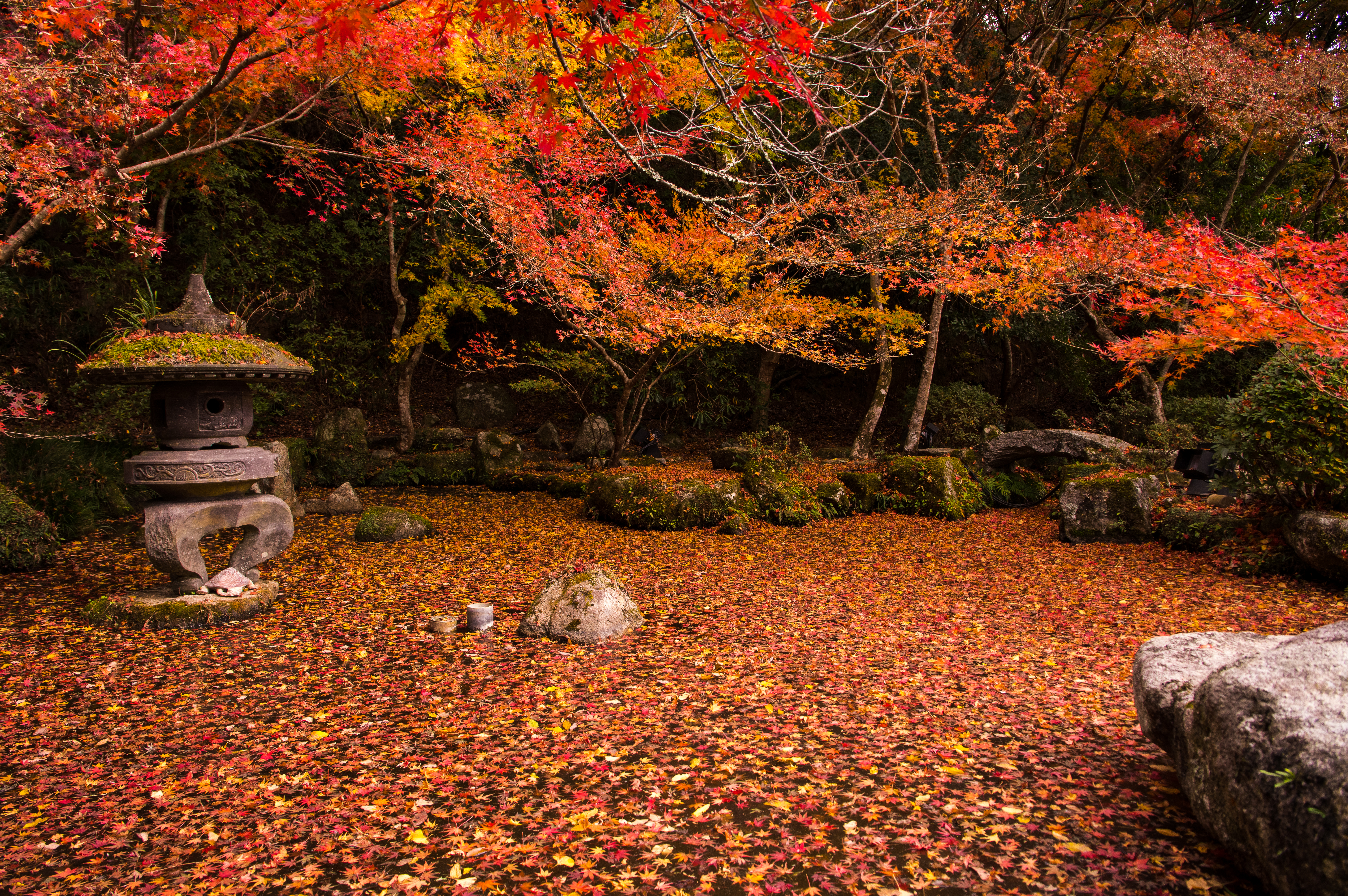 散りはじめていましたが、落ち葉が池一面を覆って綺麗でした。