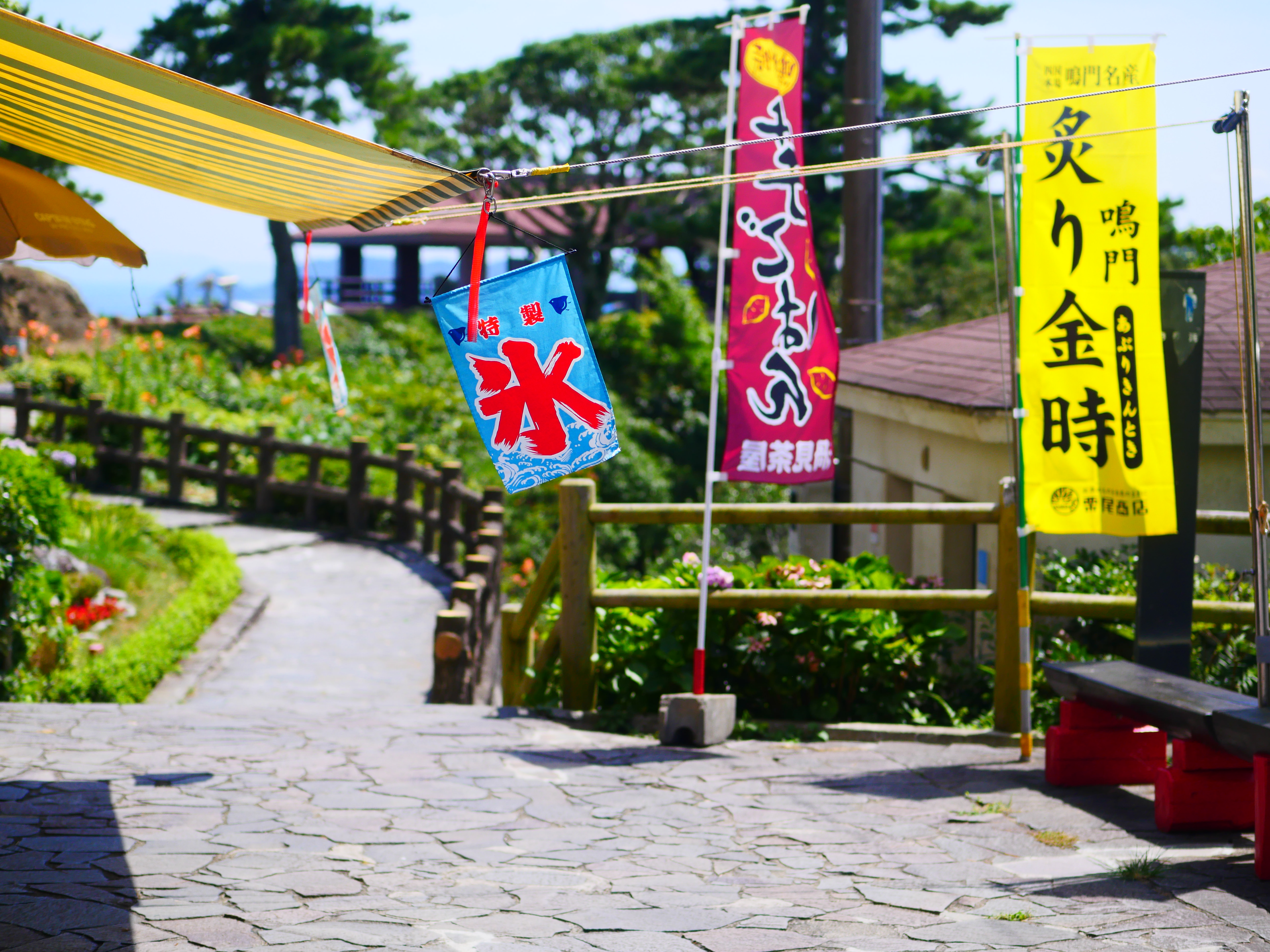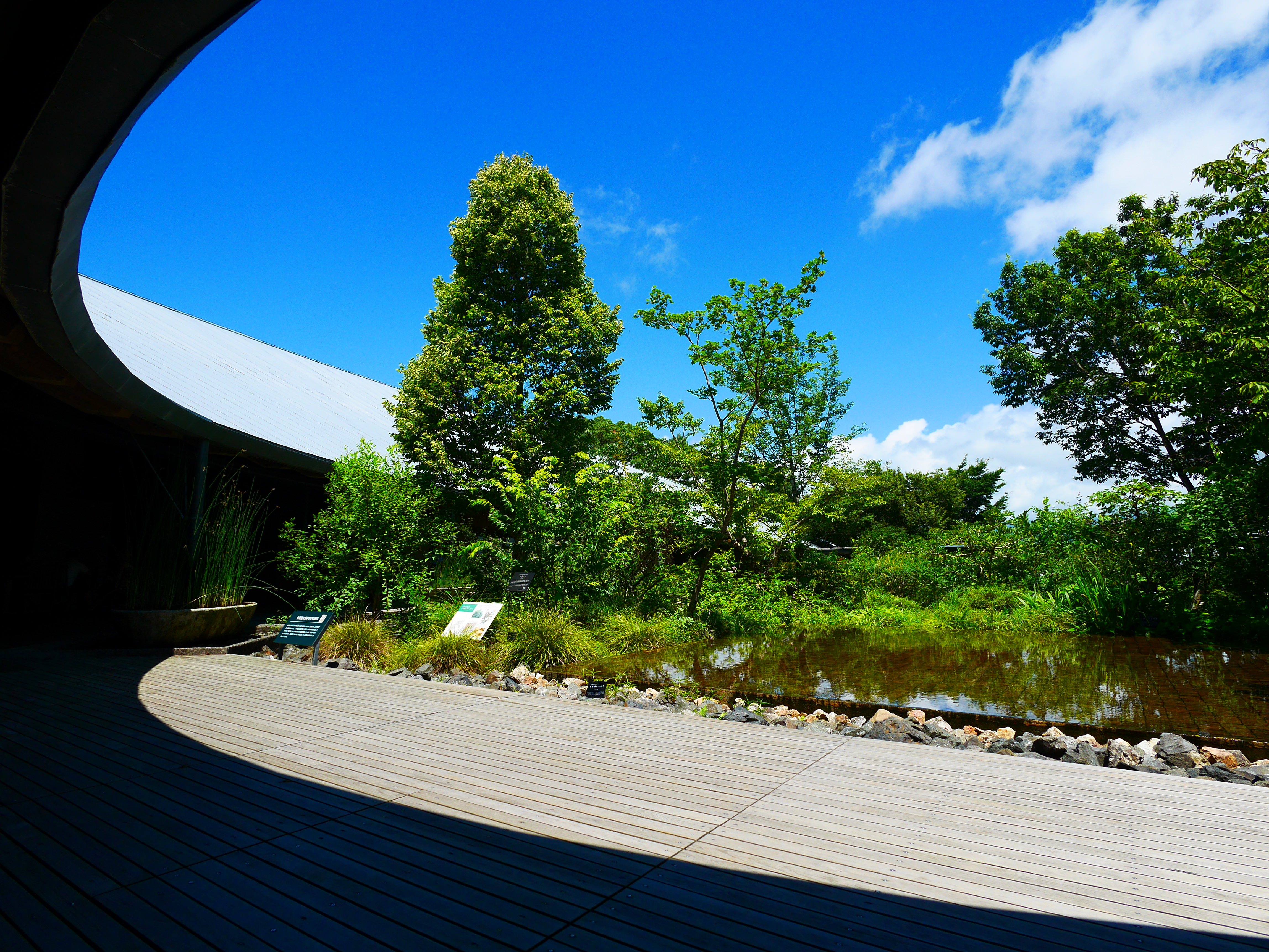 千畳敷の展望台の一段下がったところは、日差しを遮るのに好都合。また橋を眺める仰角も変わるので広角レンズ撮影には変化も楽しめます。