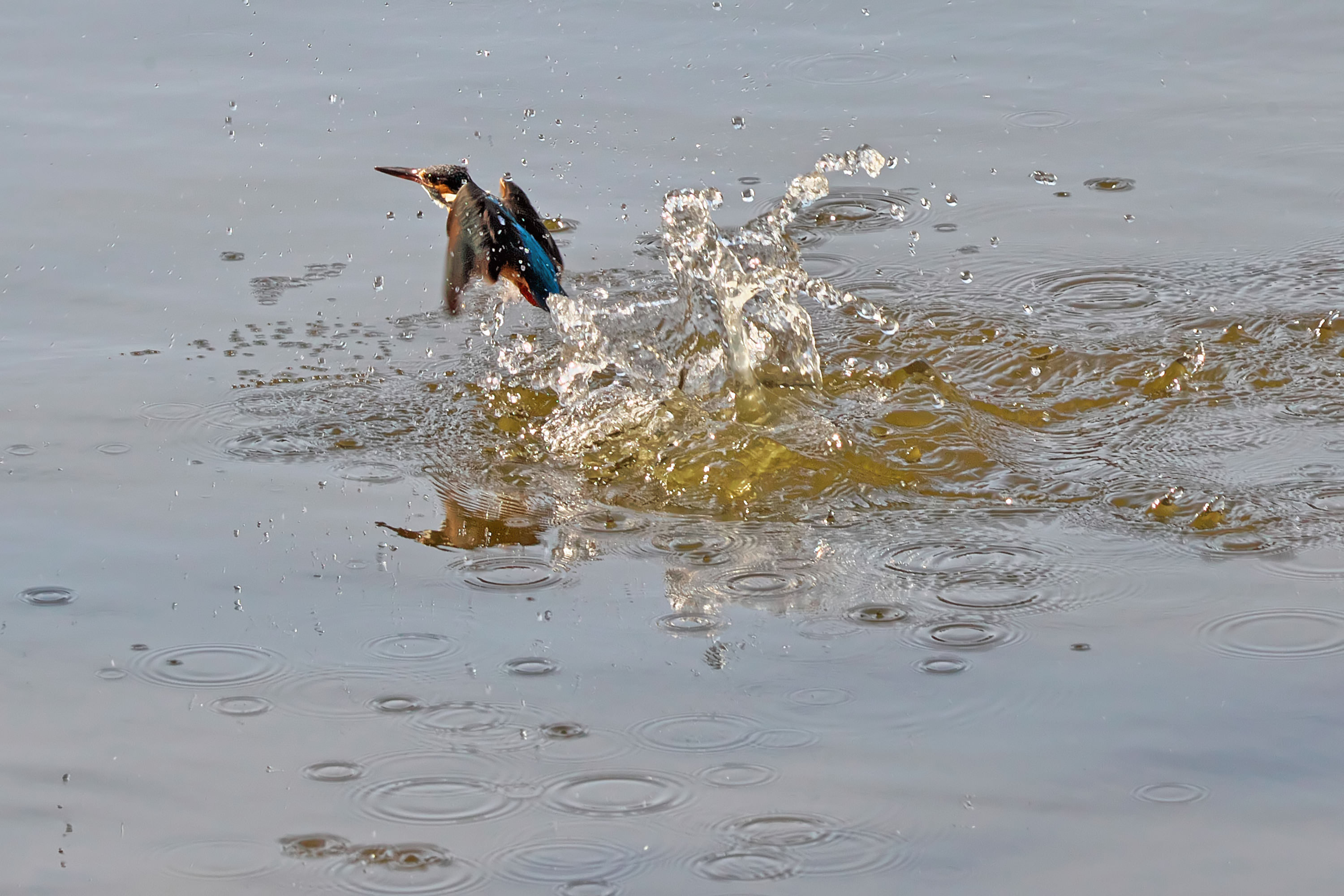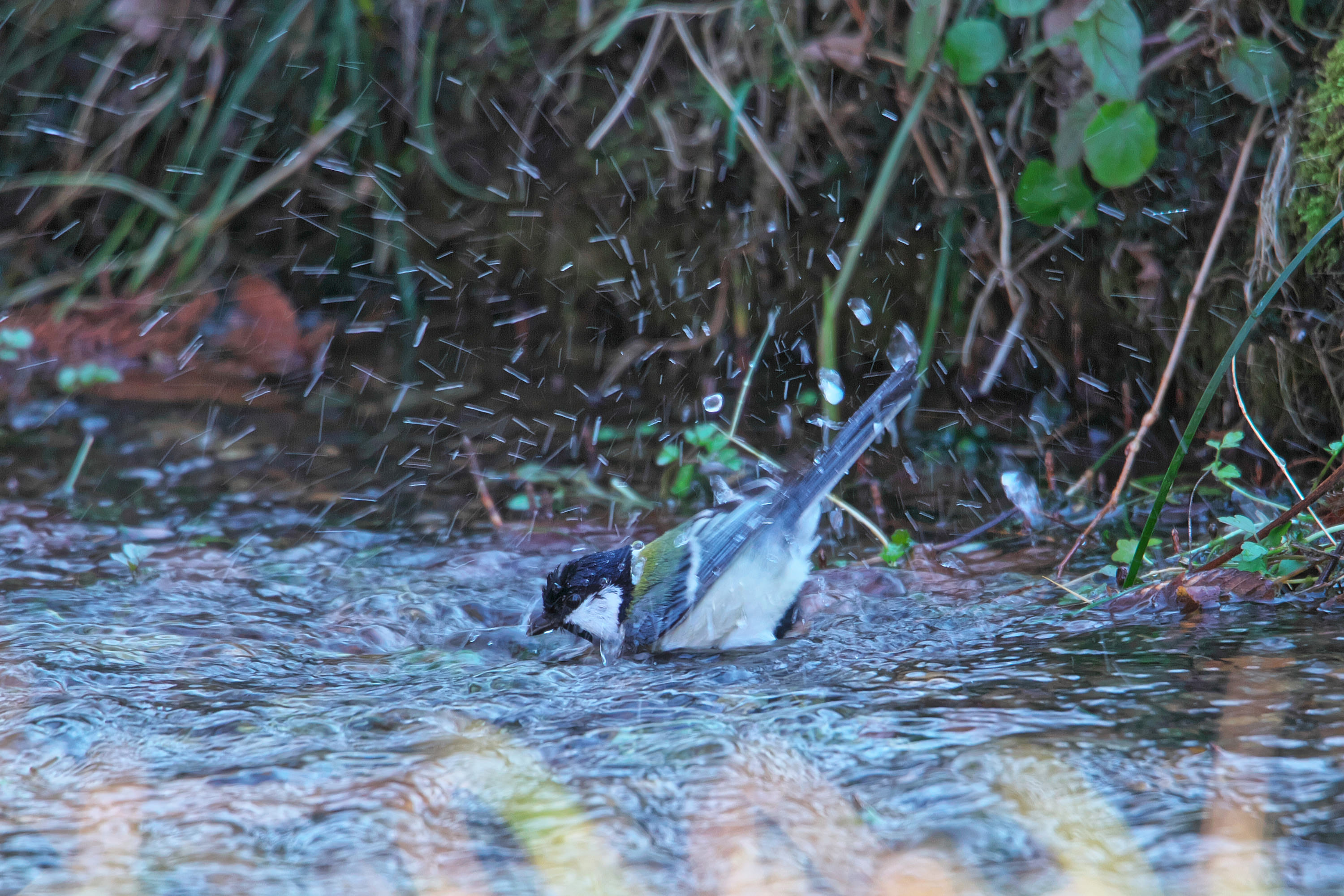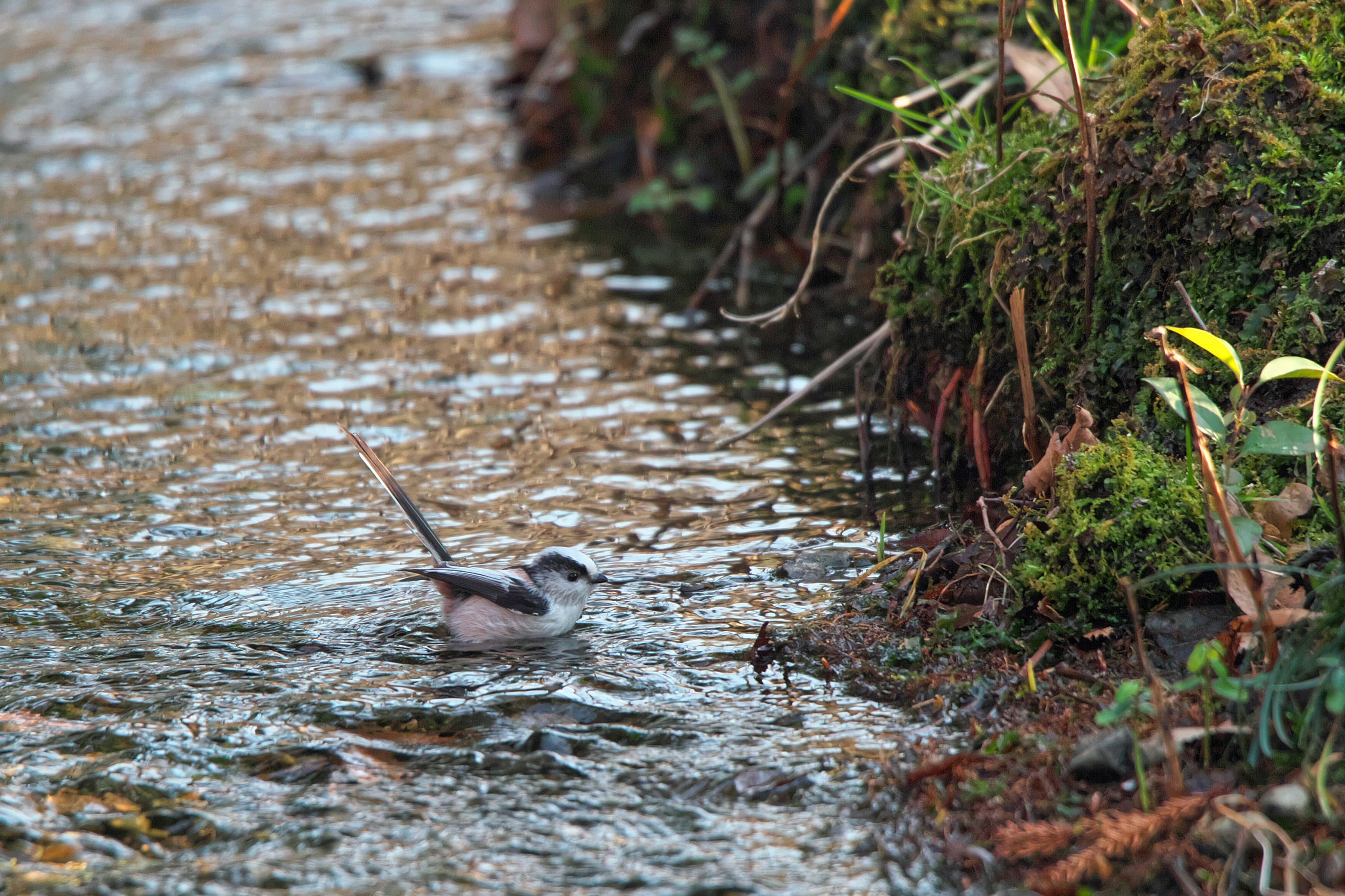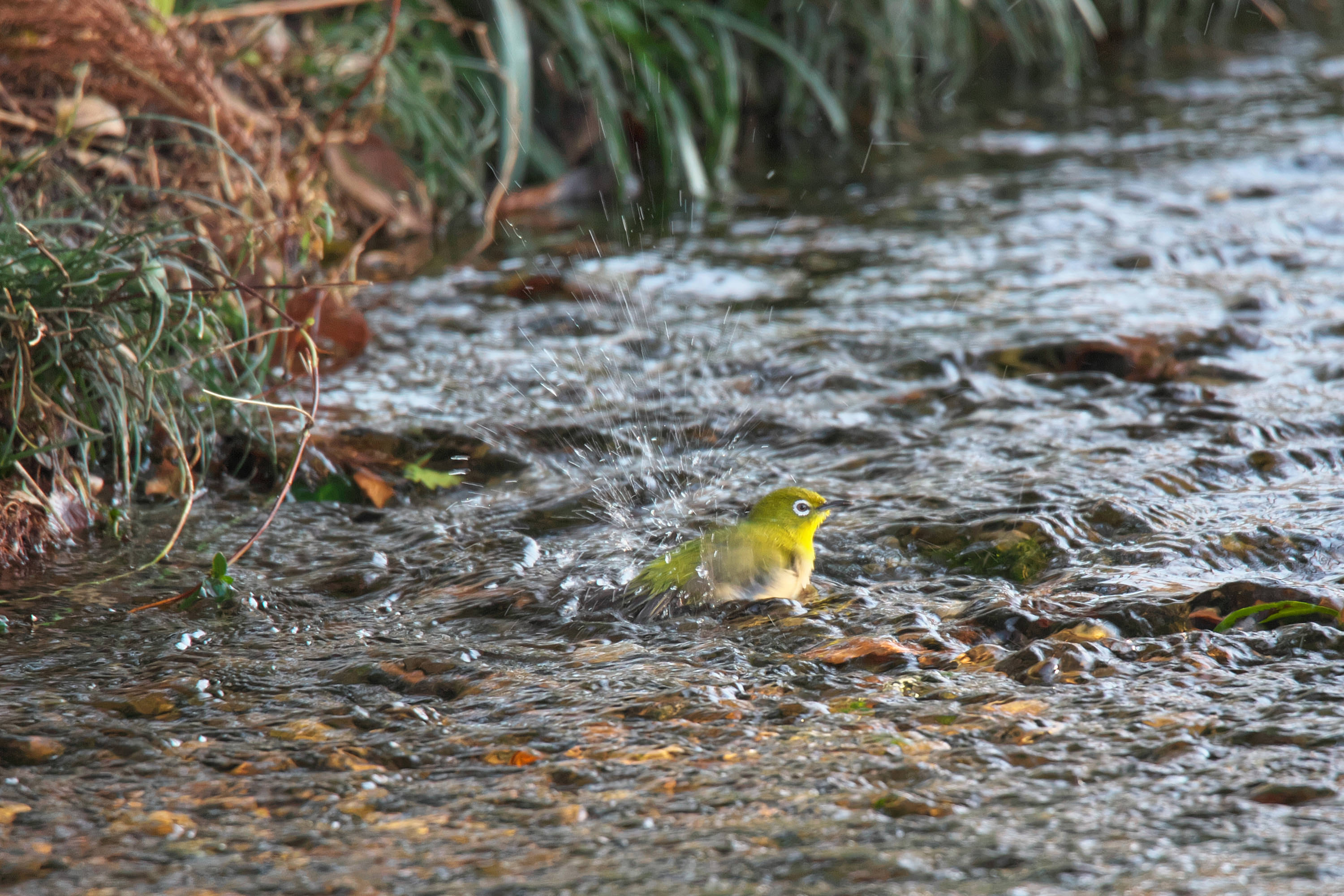 渓流の流れに押されて堰の落ち際まで来ると、ジャンプして飛び立ちます。