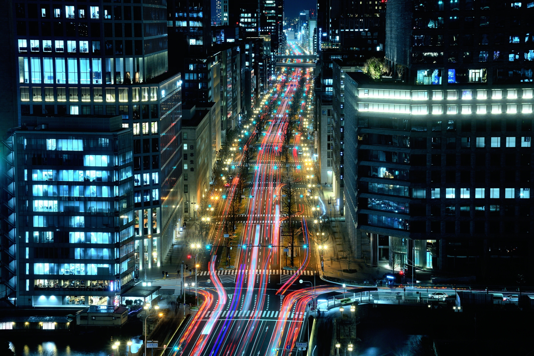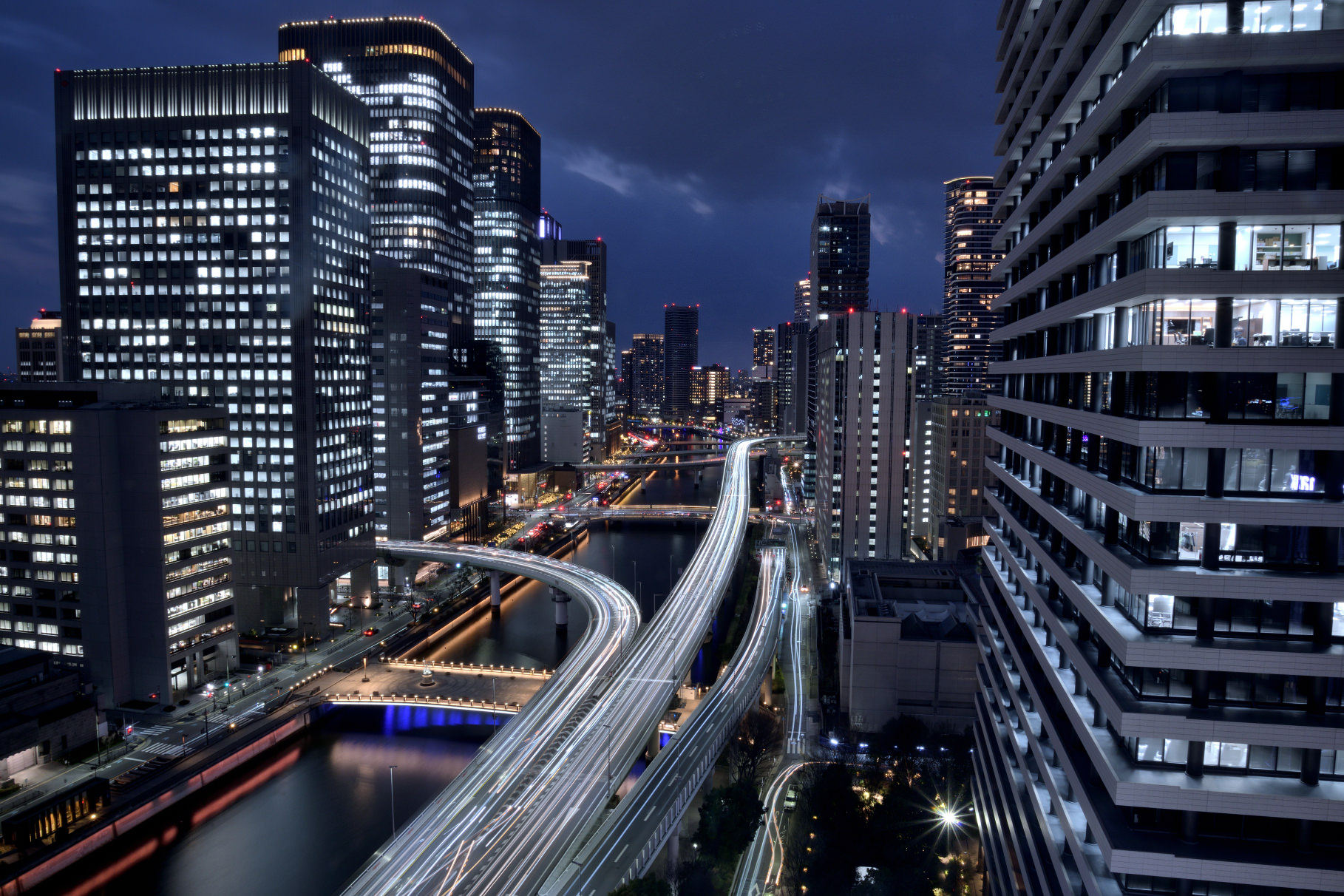 堂島川に架かる橋は手前から、水晶橋、鉾流橋、難波橋、阪神高速、天神橋、天満橋