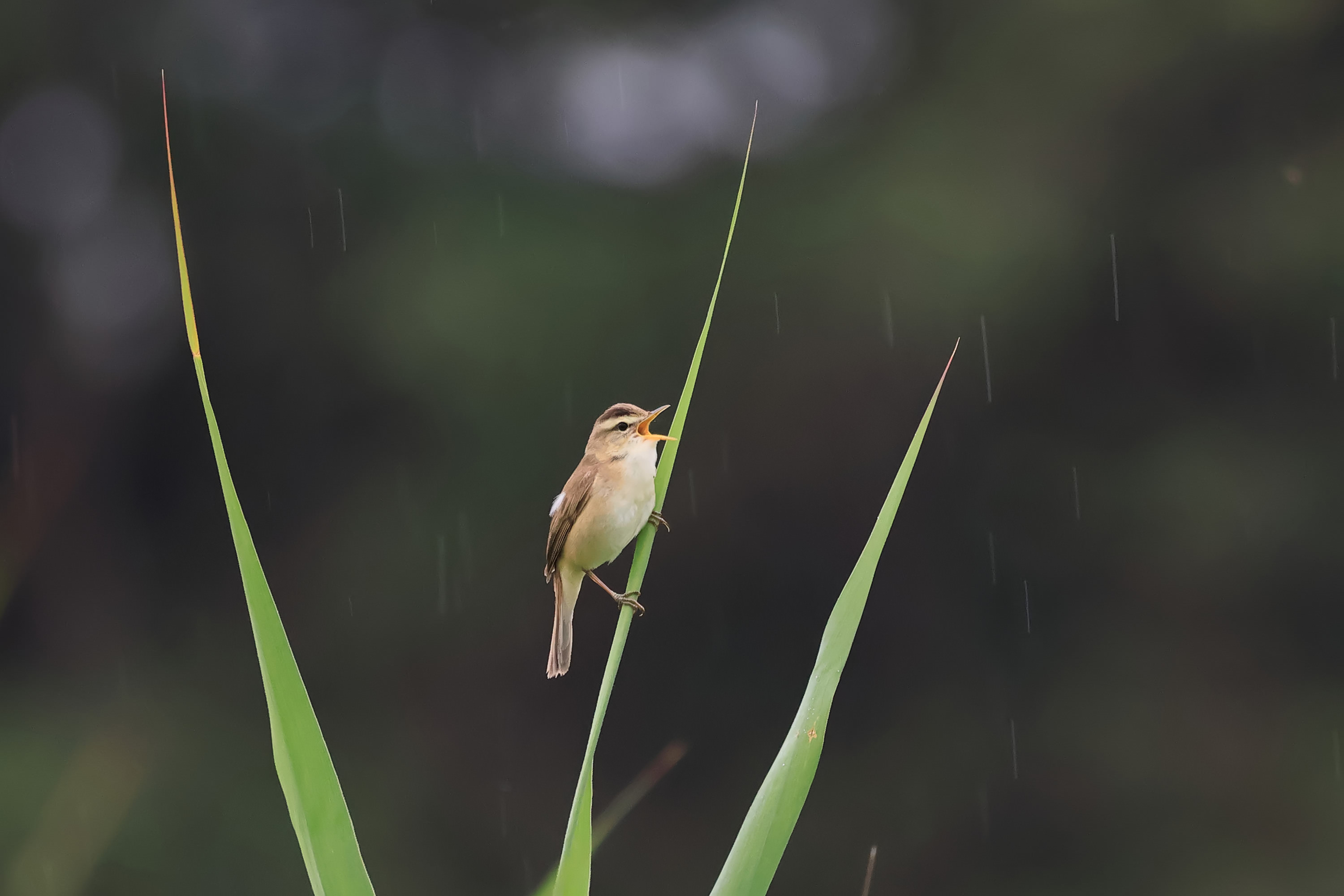 今日は午後から強く降りましたが、ツバメたちは電線の上で雨を耐えていました。