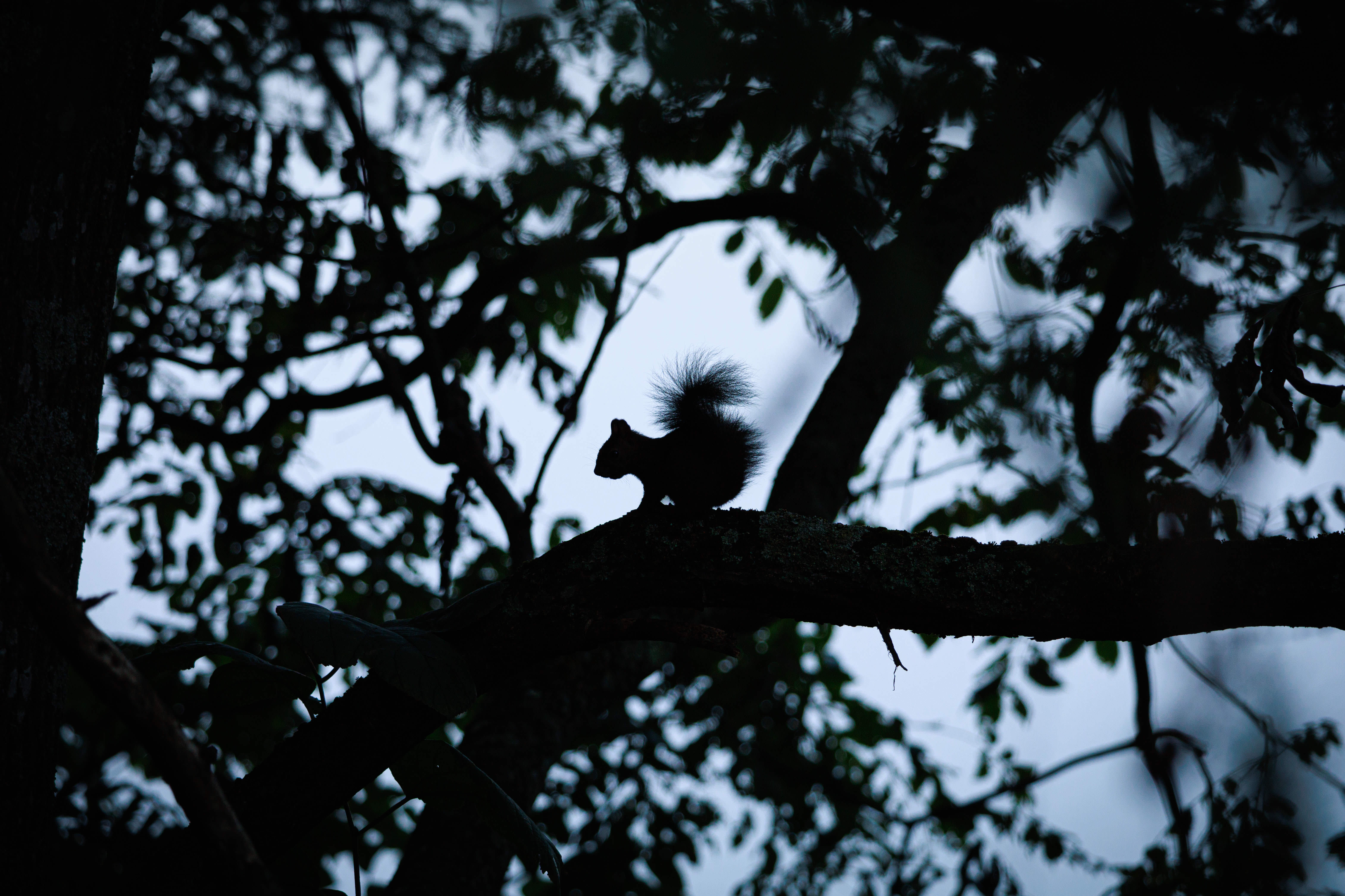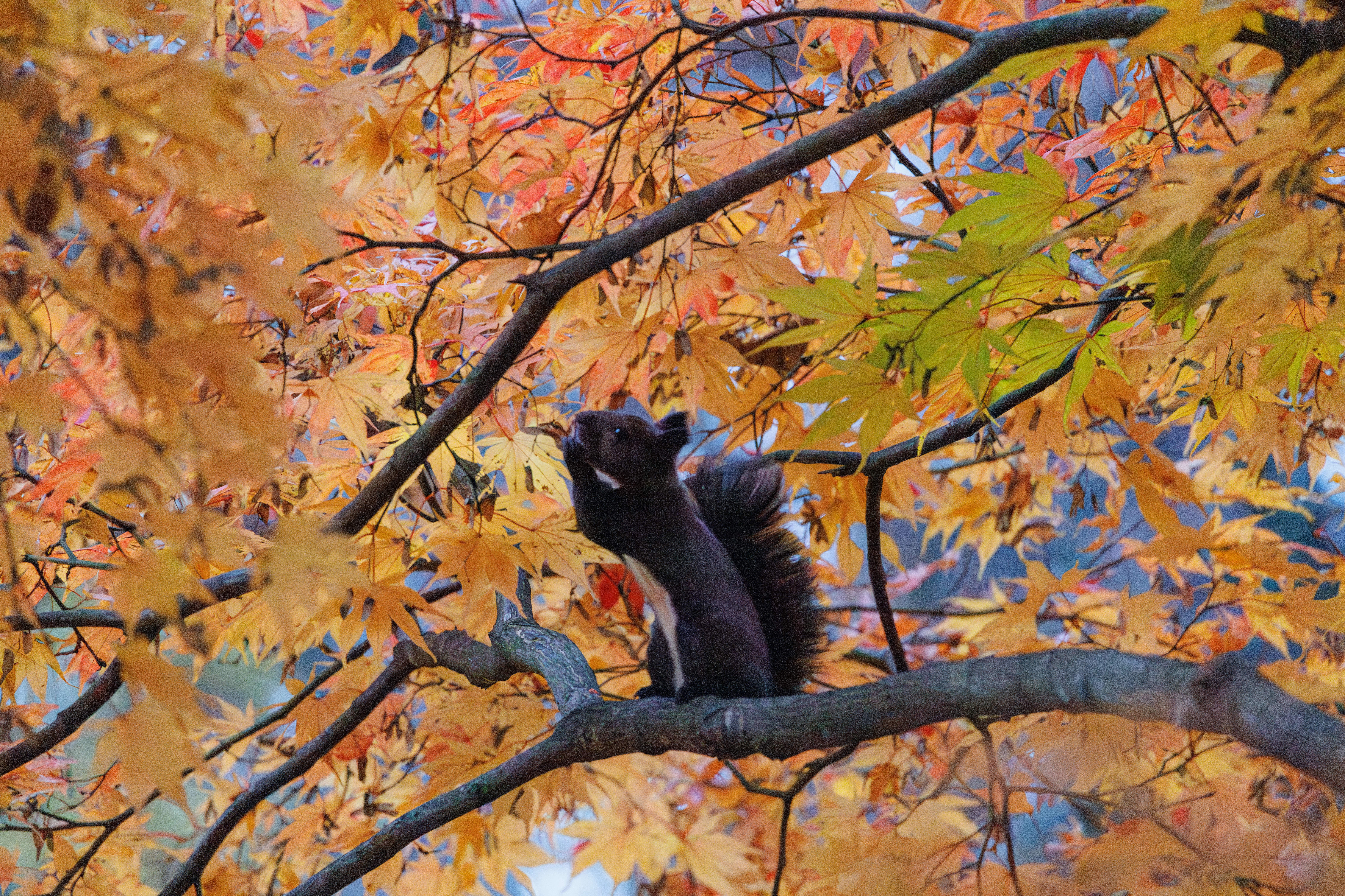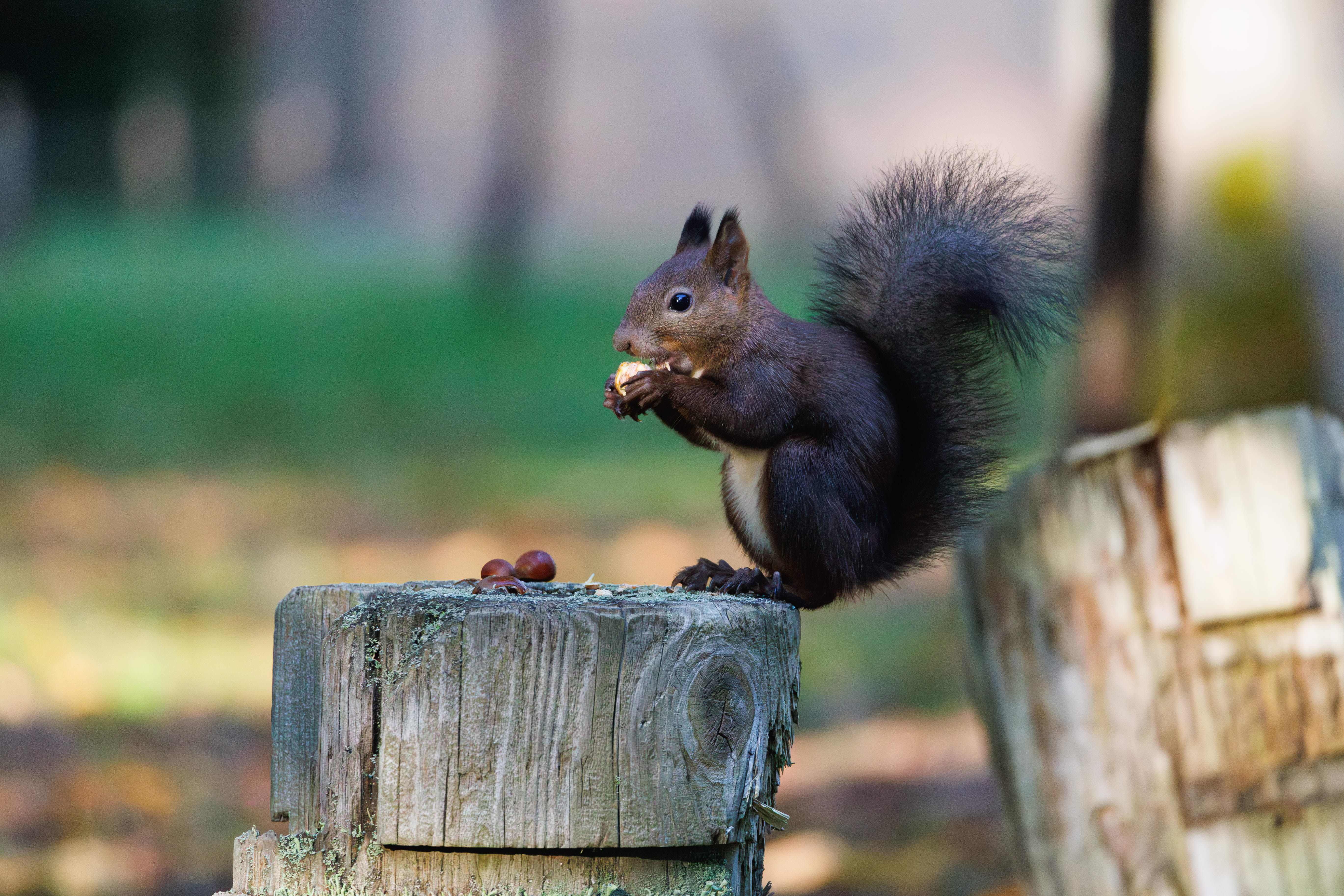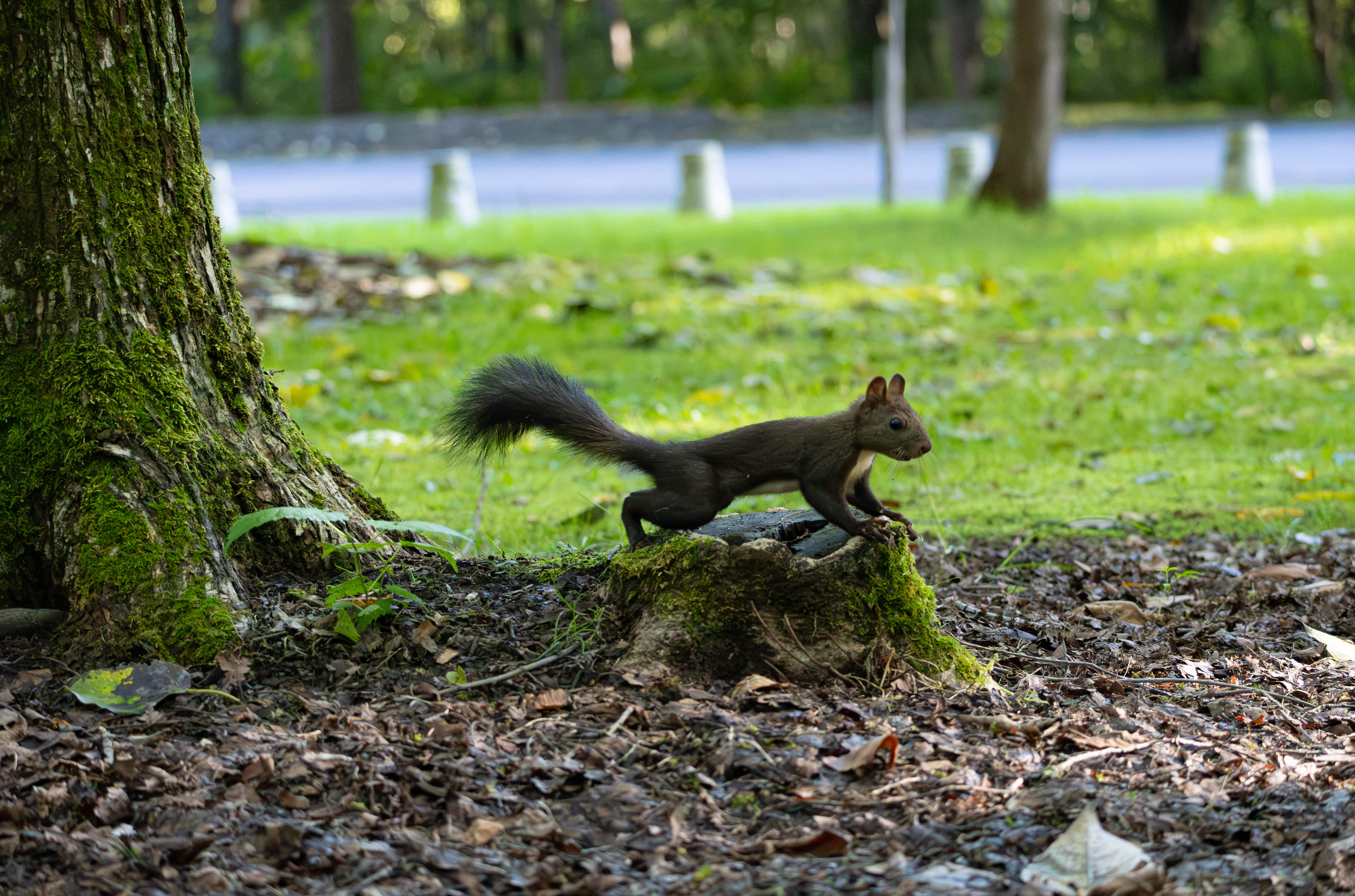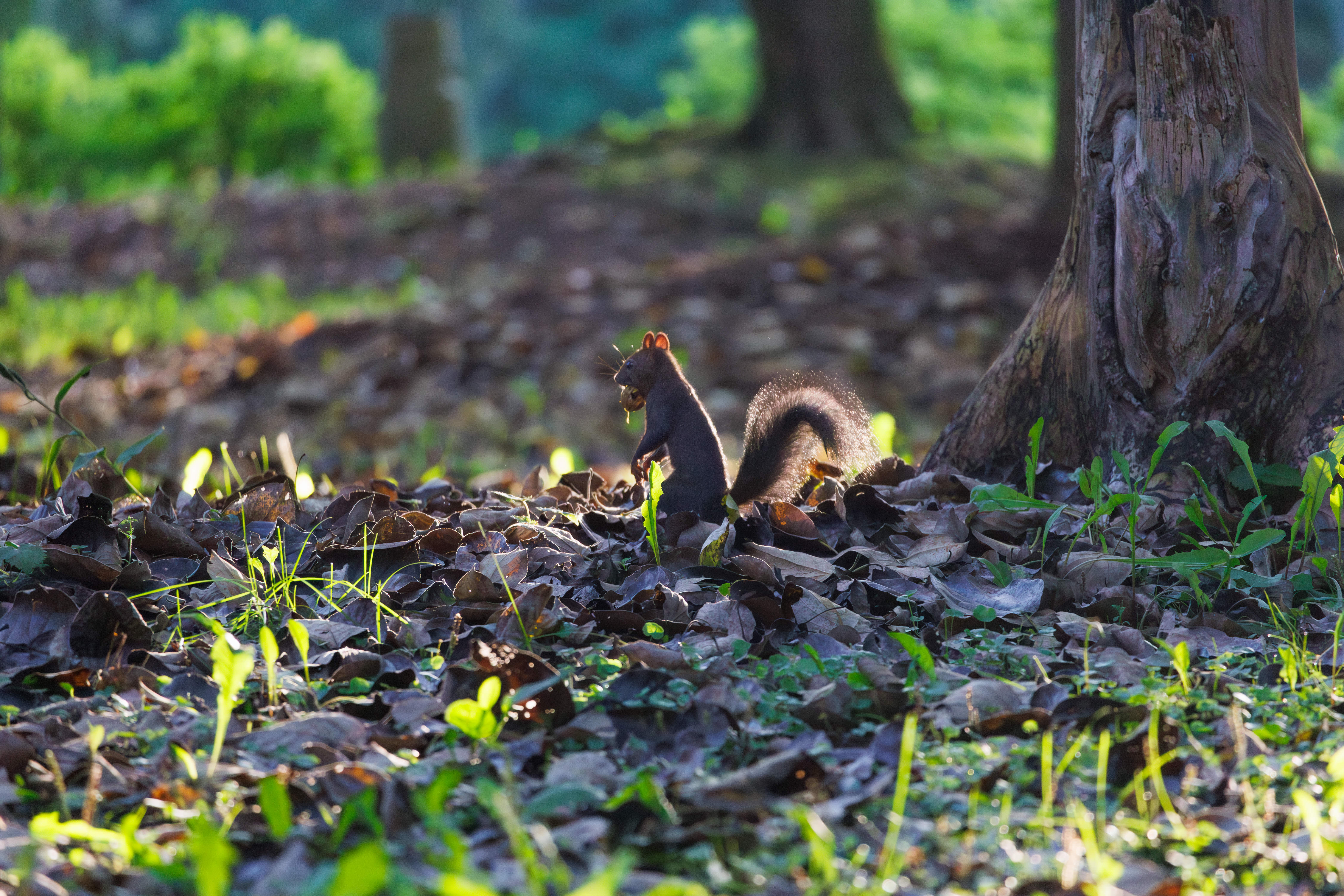 早朝の公園にいたエゾリス
