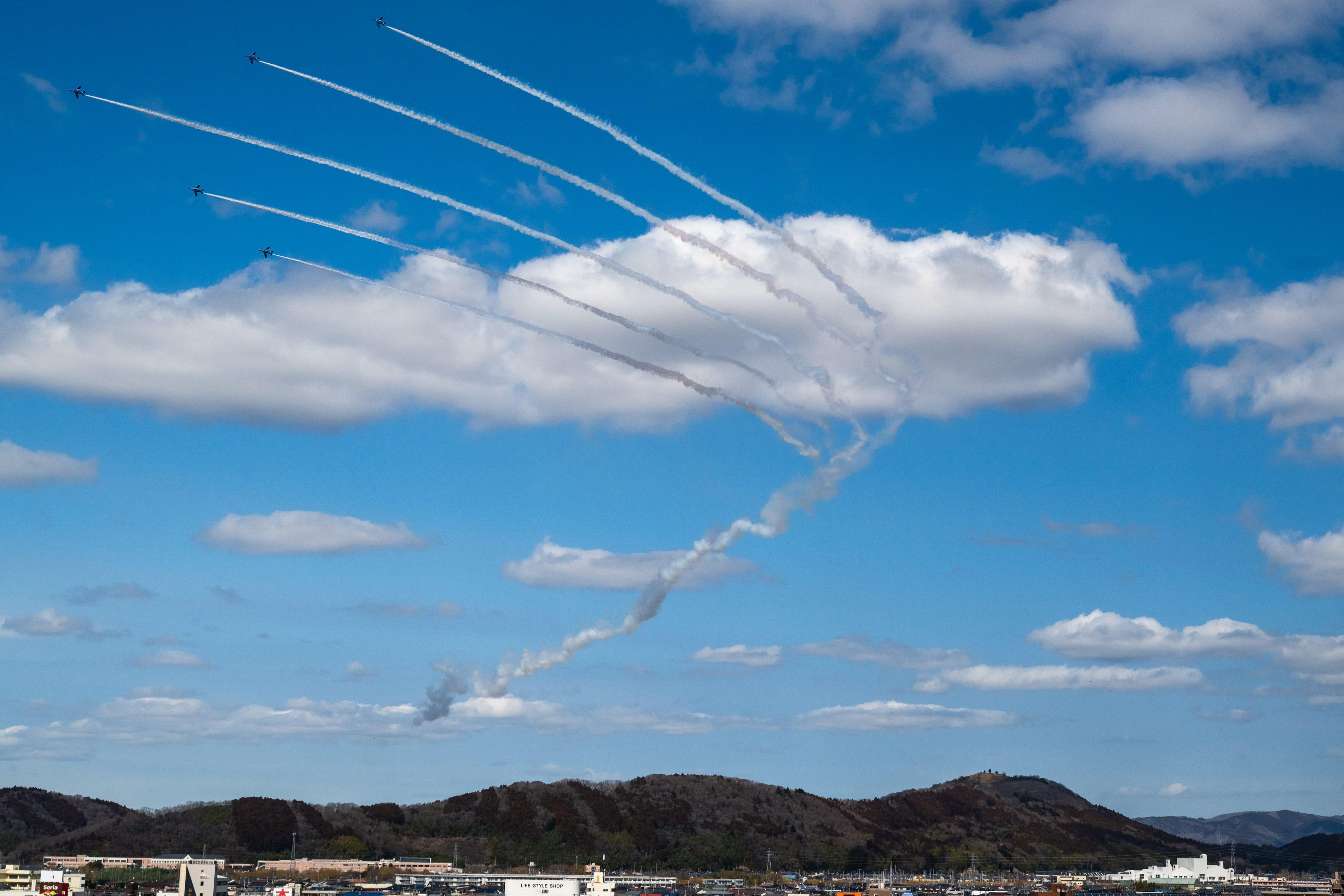 ブルーインパルスが石巻市街で展示飛行を行いました。
