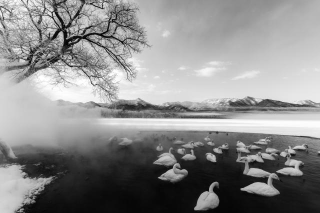 屈斜路湖の白鳥たち。