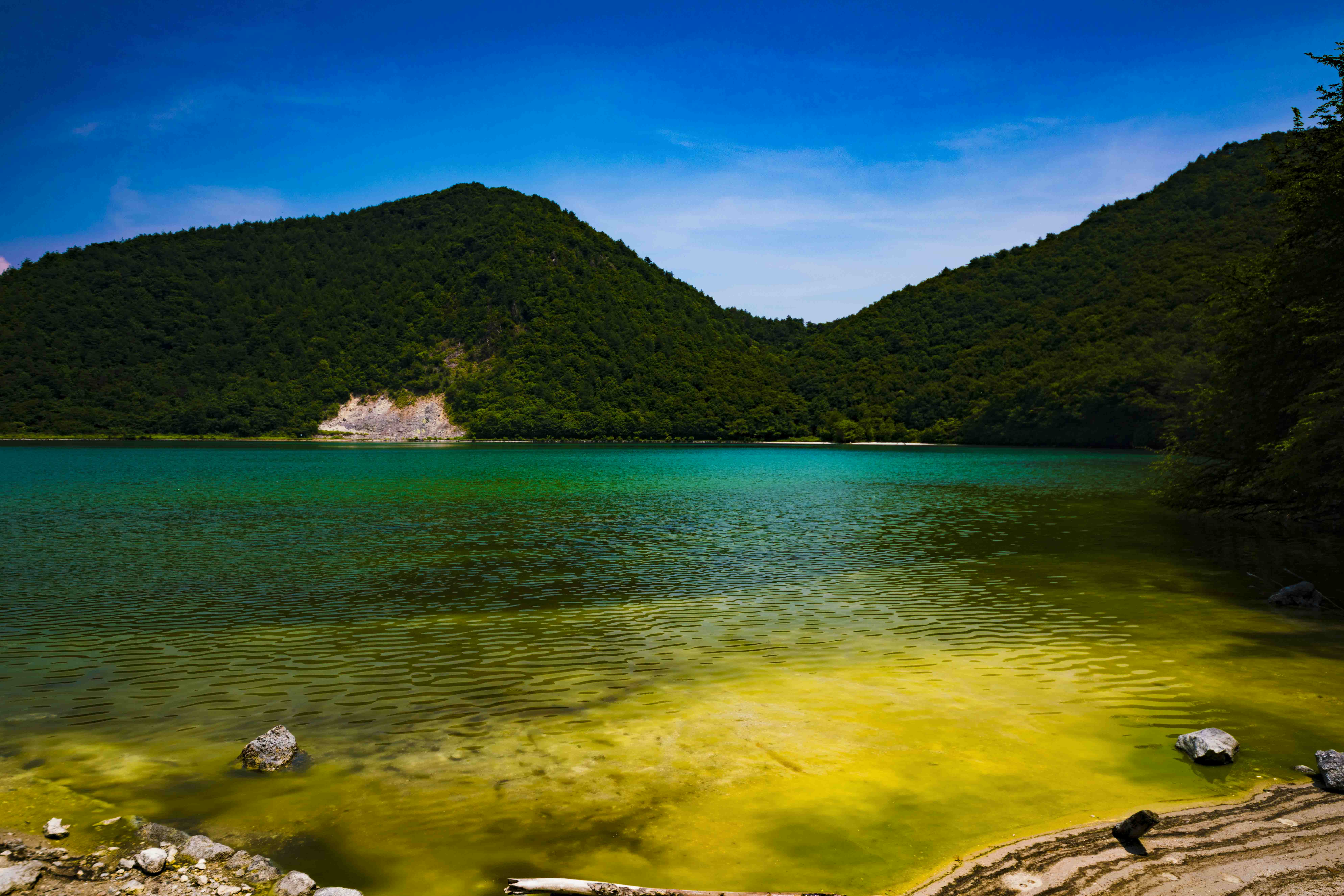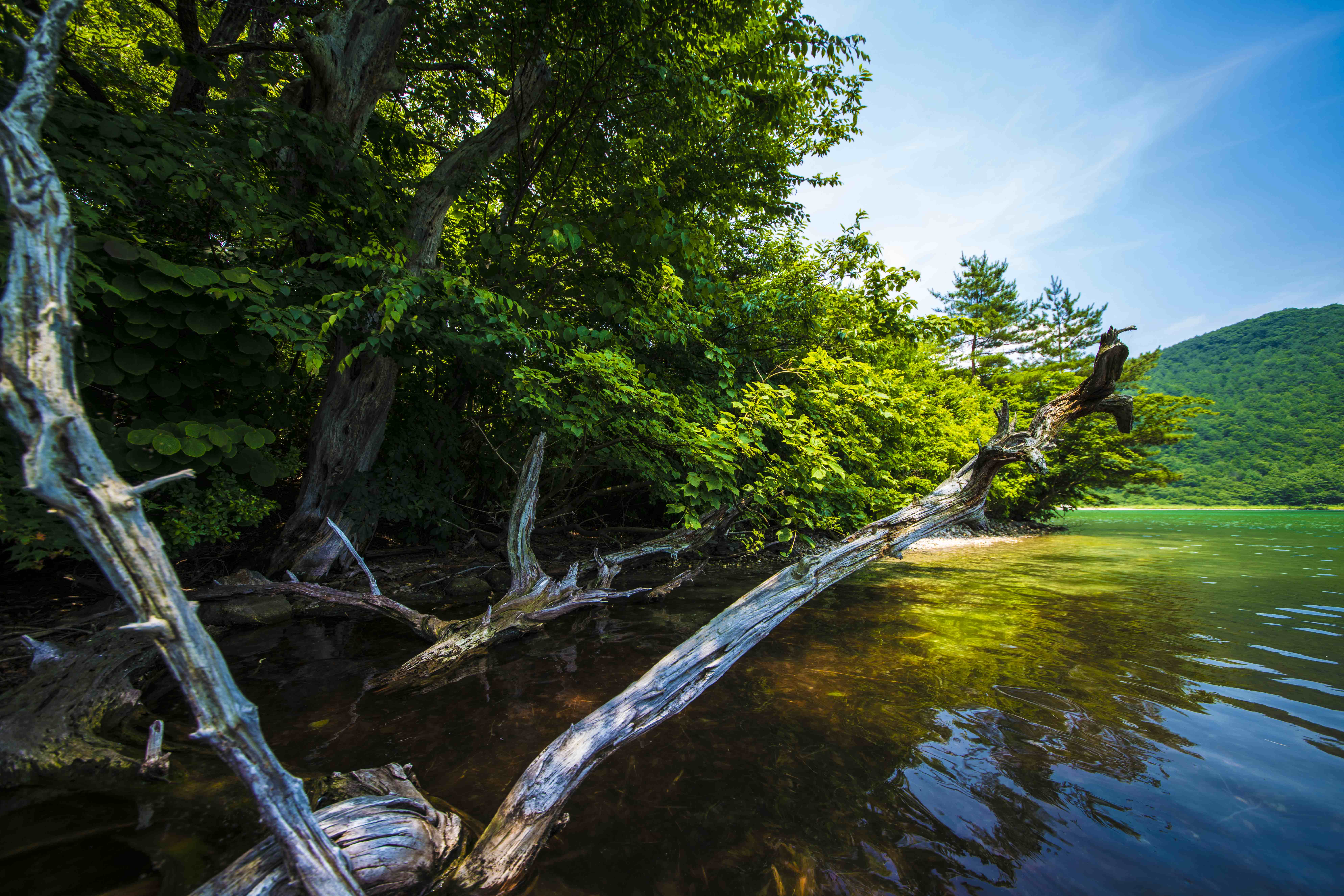 カルデラ湖の脇に佇む木の根っこが美しくて。