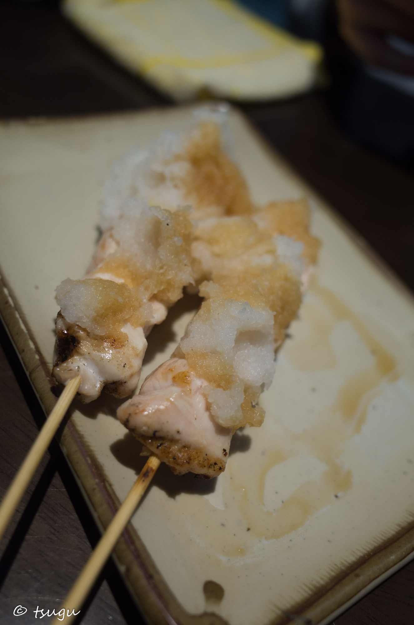 ヘルシーなアスリート食のささみ。焼き鳥では固くなってしまいがちですが、おろポンと一緒にb